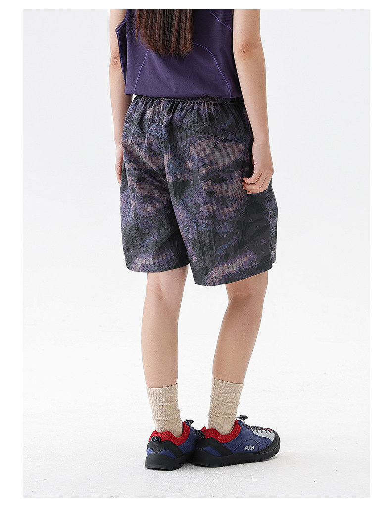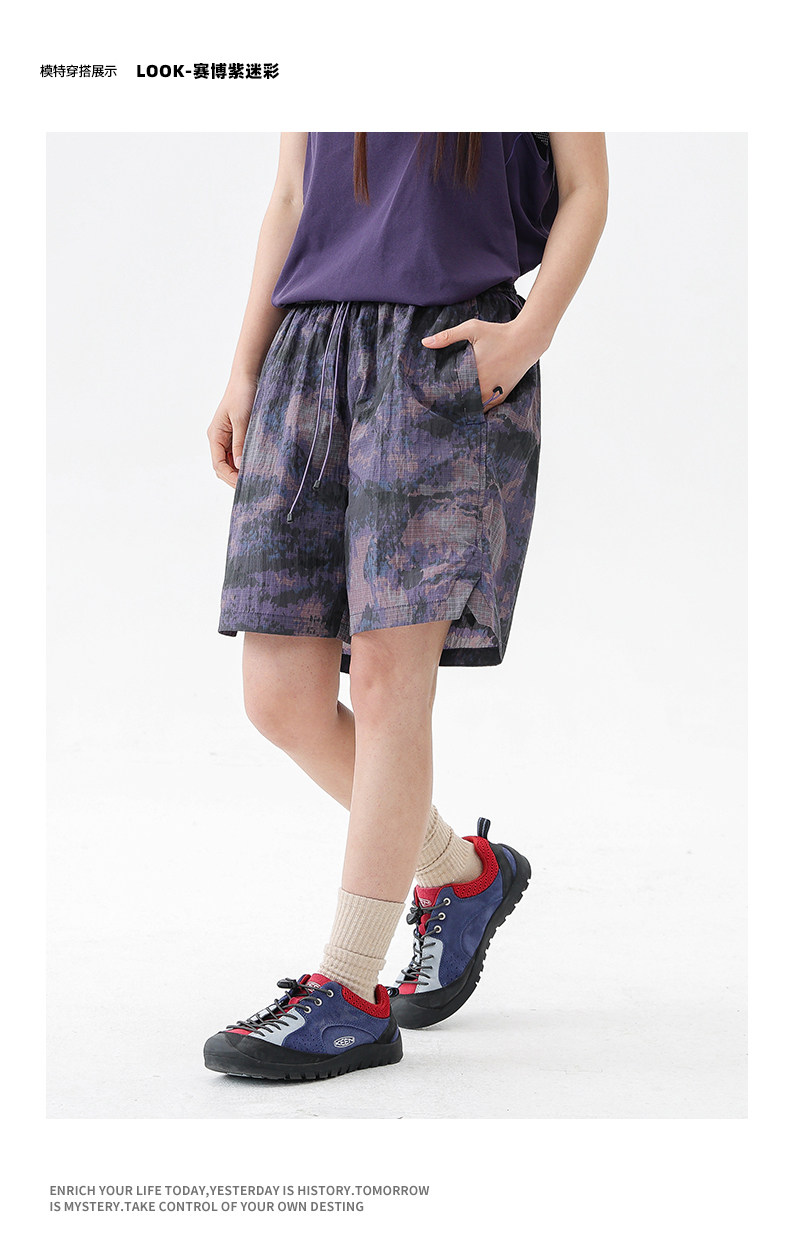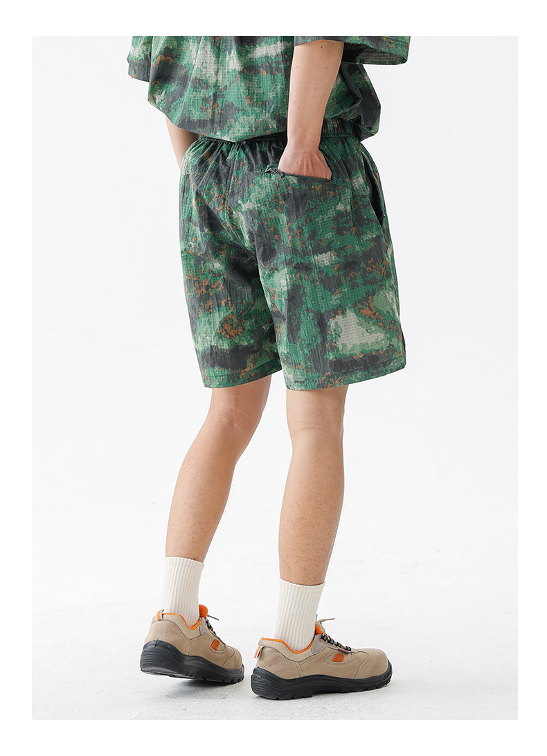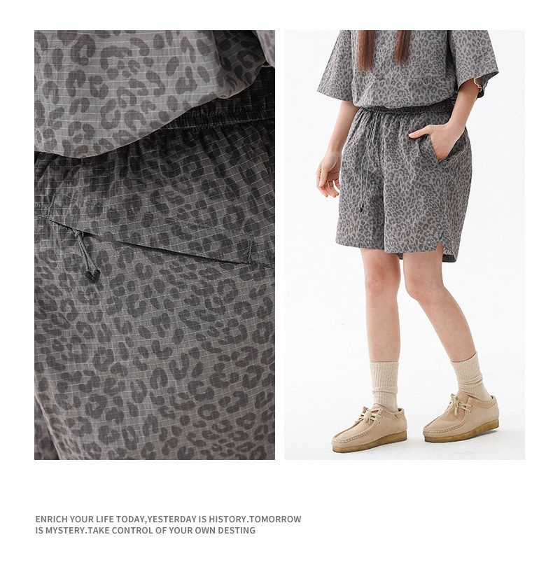 Wassup Shark American-Style Camouflage Leopard Print Shorts for Men, Summer Ice Silk Quick-Drying Casual Loose Beach Shorts