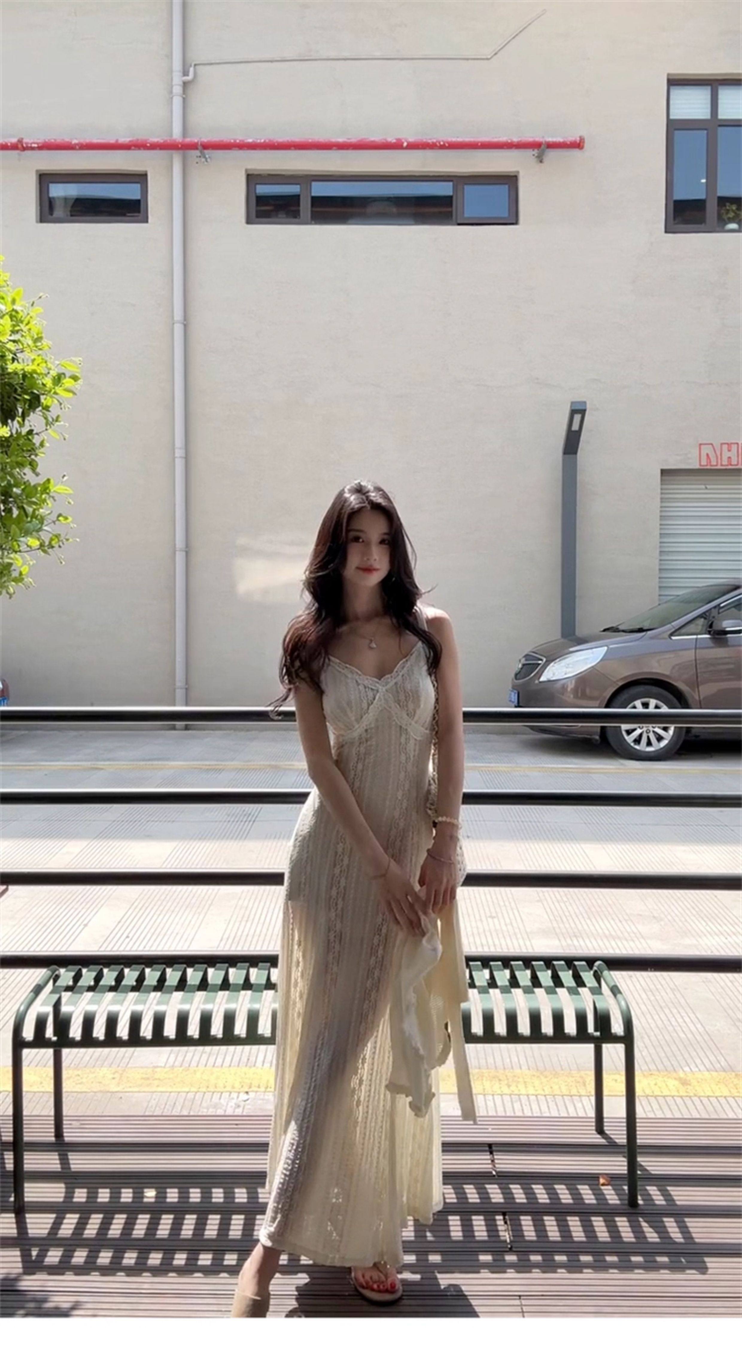 French Lace Suspender Dress for Women Summer 2025 New Style High-End Elegant and Beautiful Seaside Vacation Long Dress