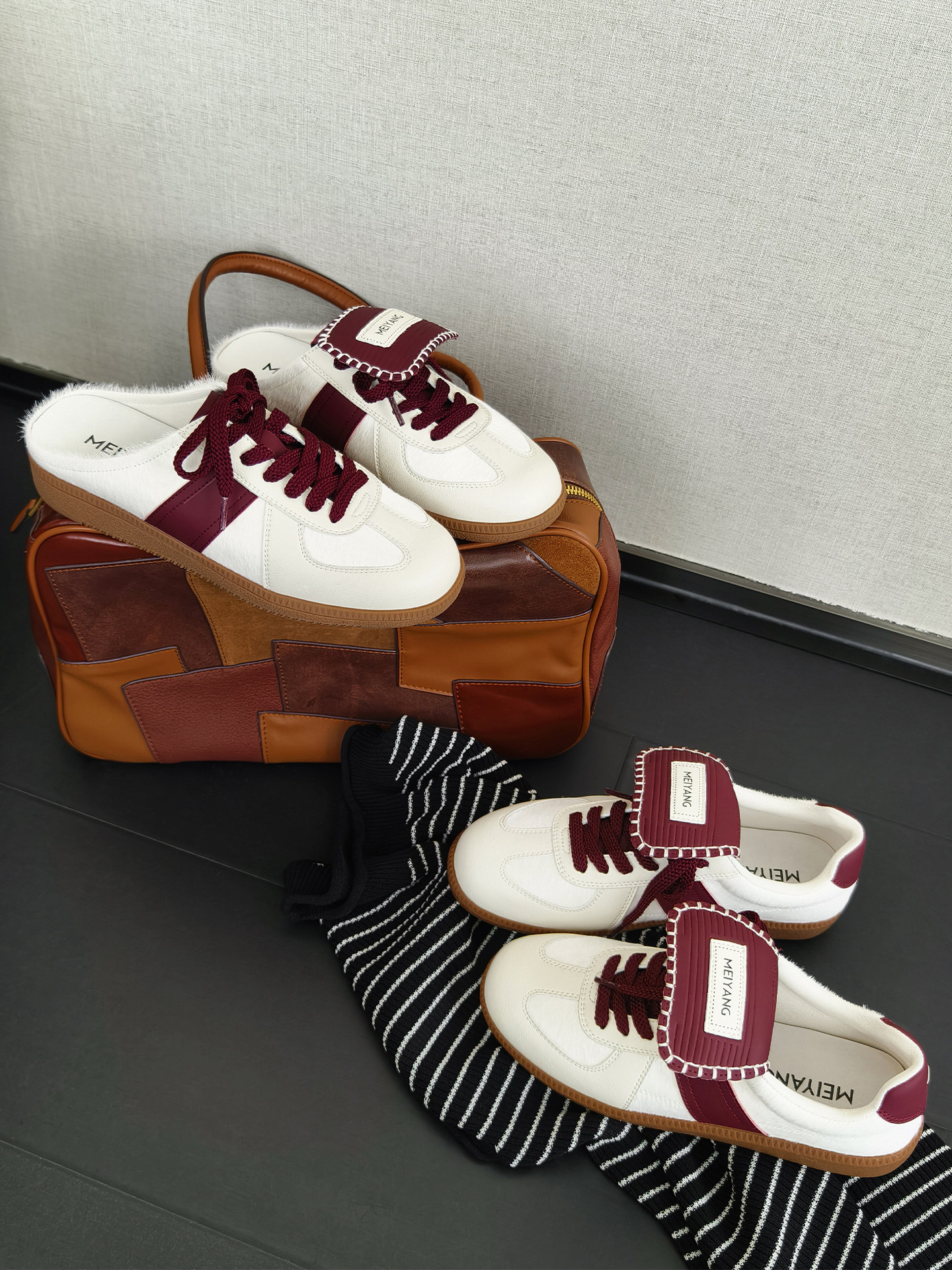 Meiyang【In Stock】Starting Line German Training Shoes Detachable Tongue Color-Block Single Shoes/Semi-Slippers - Tuesday
