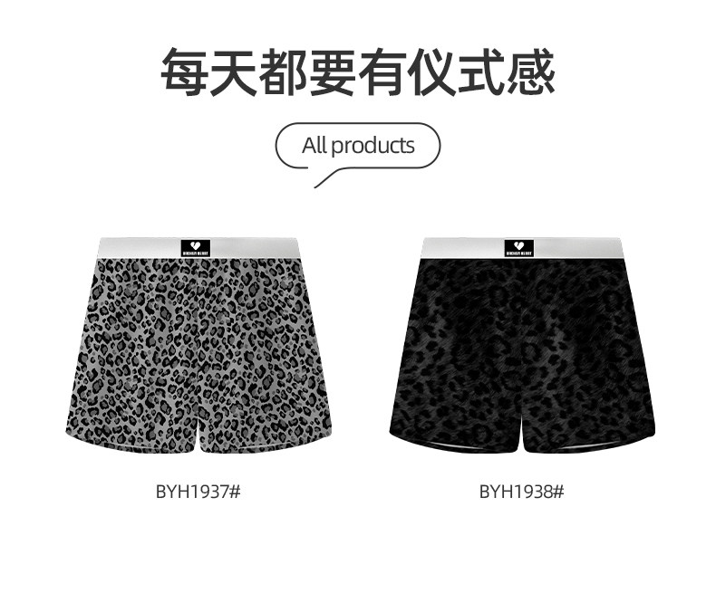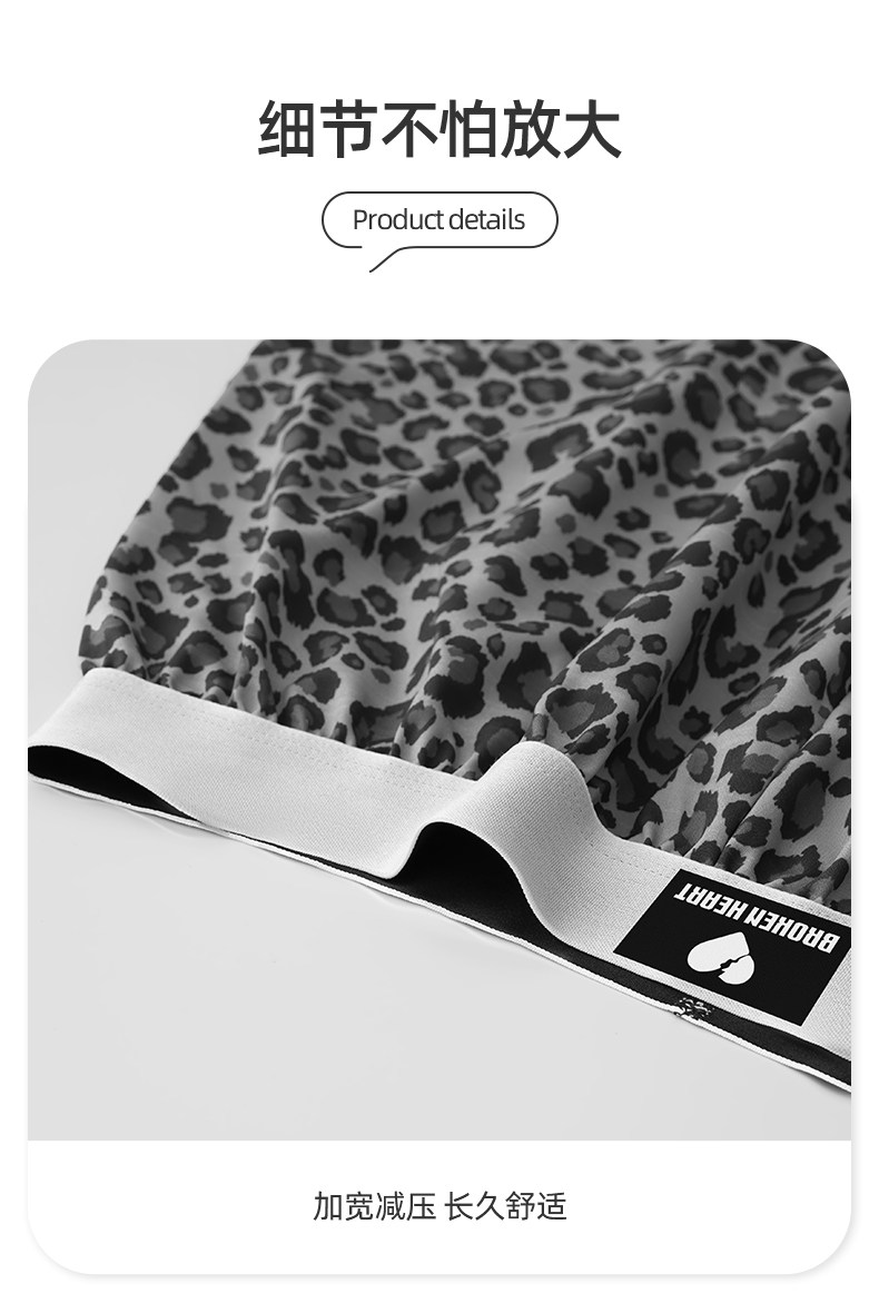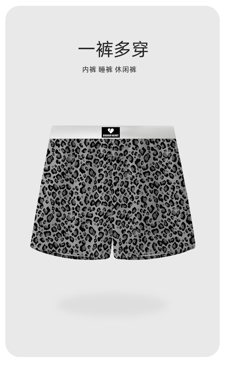 Uvuw Men's Leopard Print Ice Silk Boxer Shorts, Home Wear, Seamless, Quick-Drying, Breathable, Loose, Large Size, Four-Corner Shorts