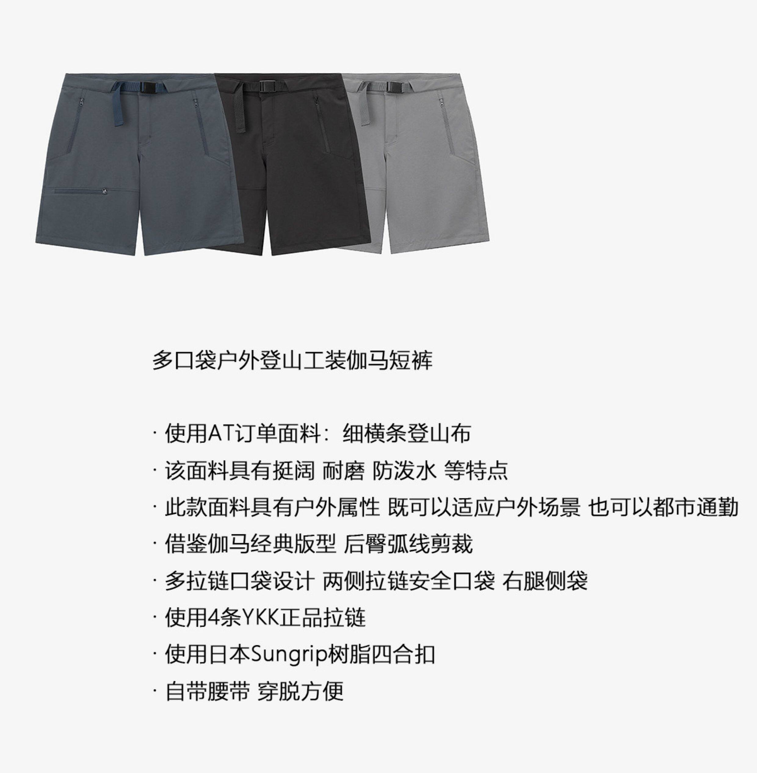 No Logo / Functional Outdoor Softshell Hiking Shorts, Wear-Resistant, Water-Repellent, Multi-Pocket Cargo Pants