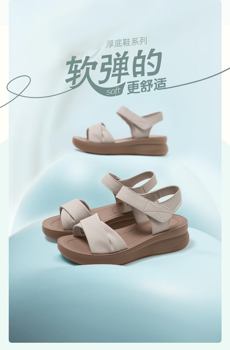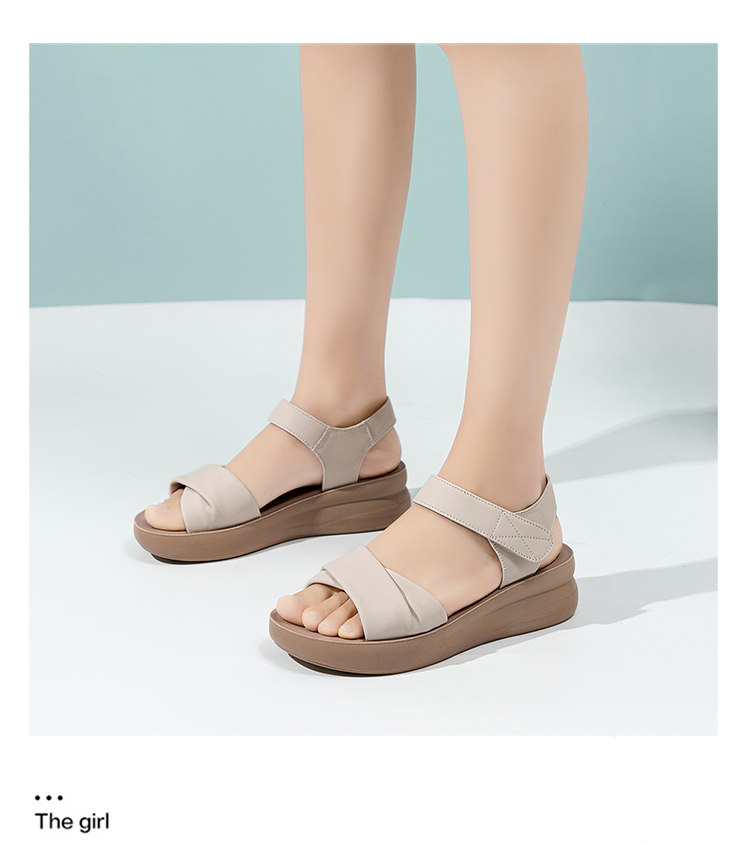 Mother's Day Sandals Women's Shoes Thick-Soled 2025 New Summer Genuine Leather Comfortable Soft-Soled Non-Slip Non-Tiring Mom Shoes