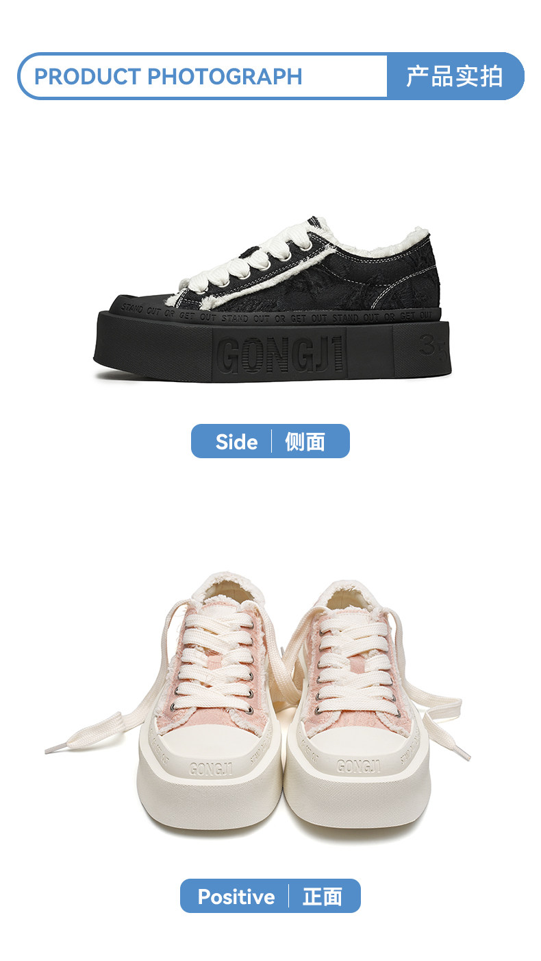 Celebrity-Style Gongji Square-Toe Thick-Soled Canvas Shoes 2025 Autumn New Niche Height-Increasing Sneakers White Shoes for Women