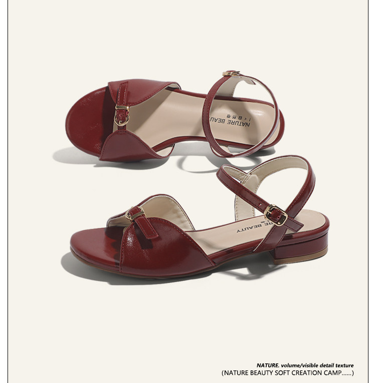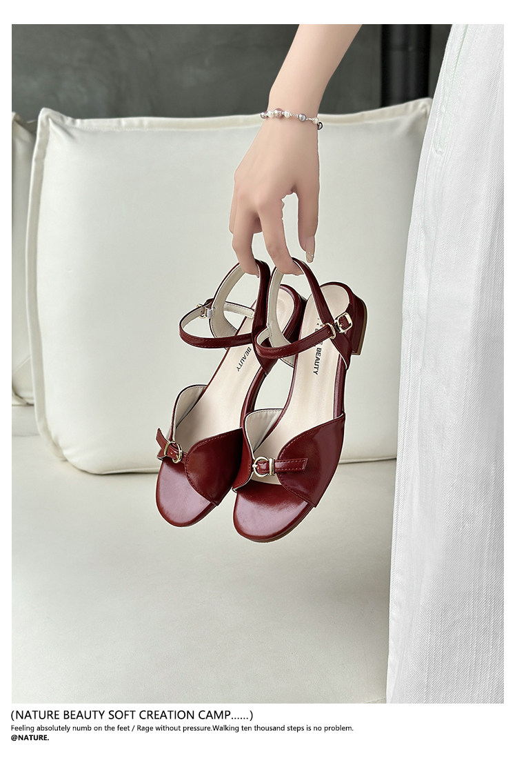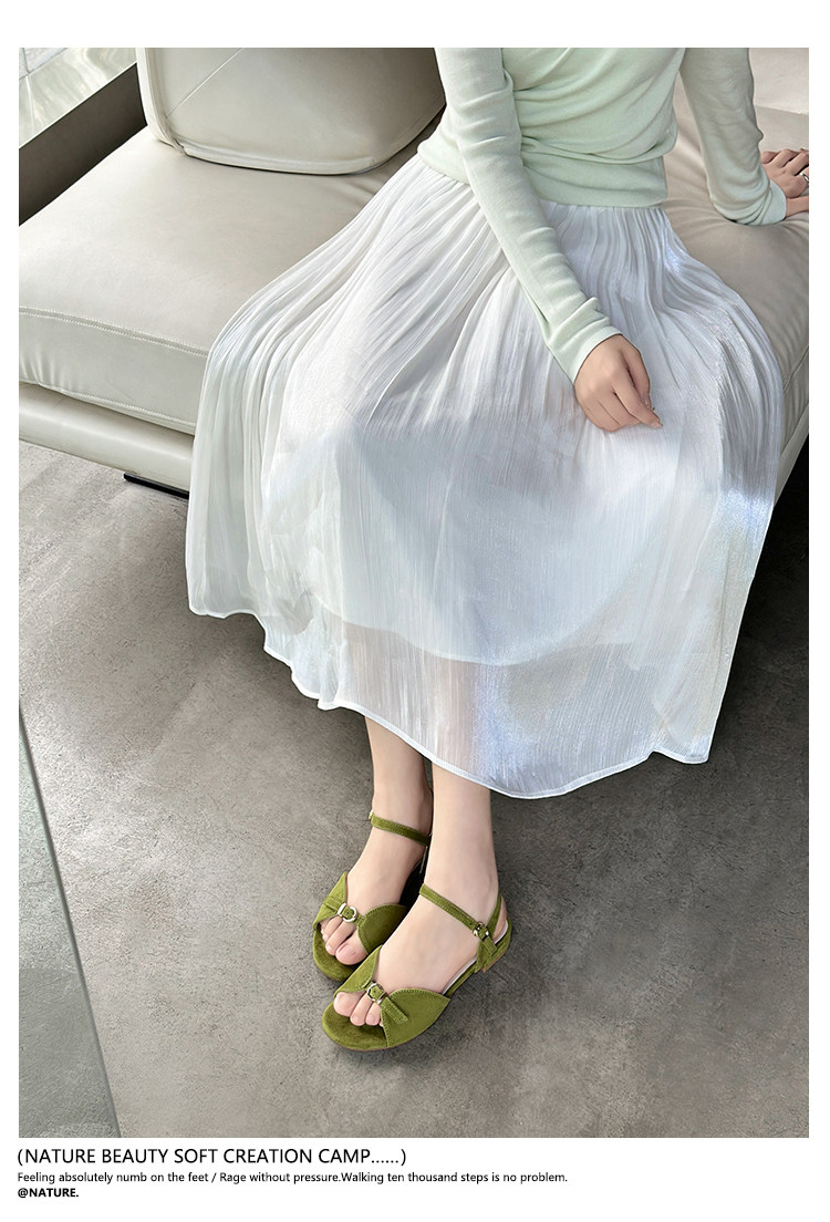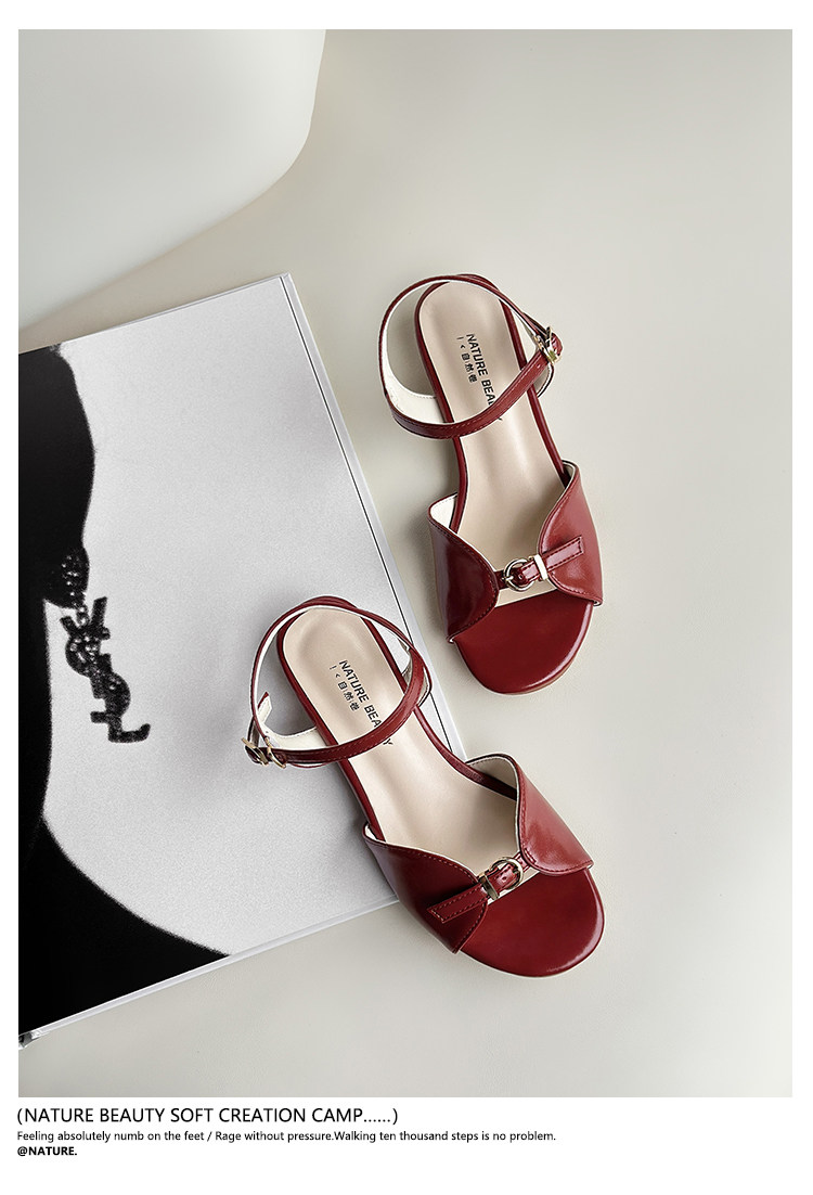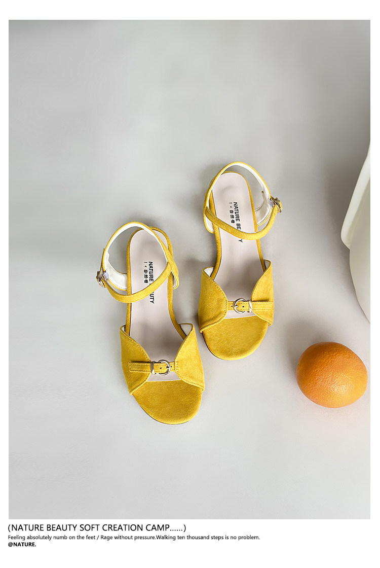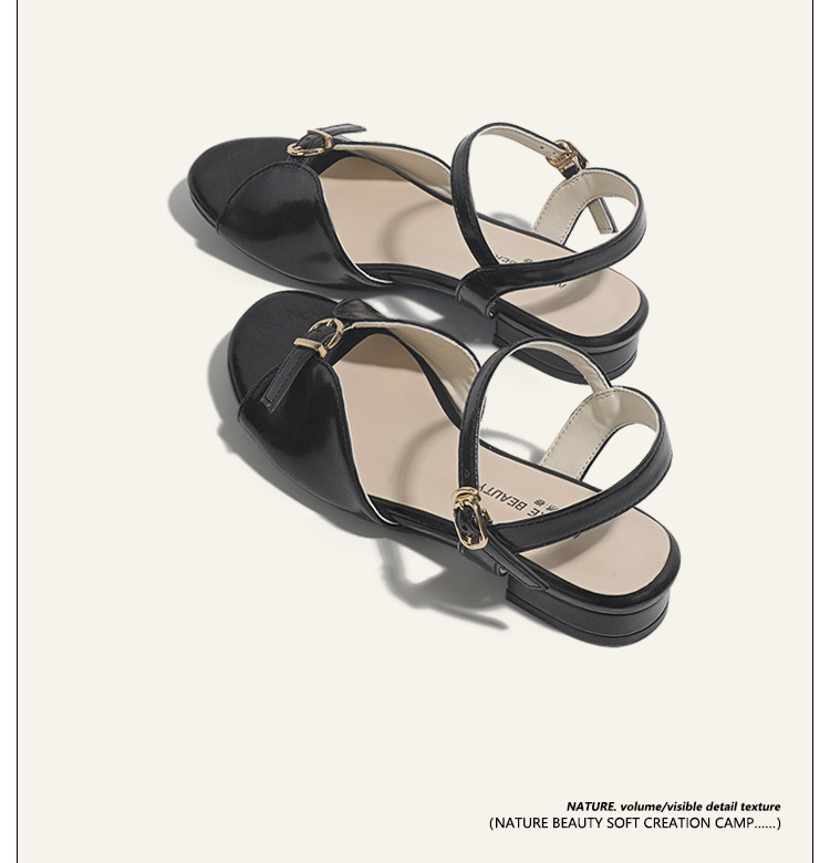 Natural Roll Thick Heel Casual Simple Open-Toe Commuting Sandals French Style One-Strap Open-Toe Roman Beach Shoes for Women