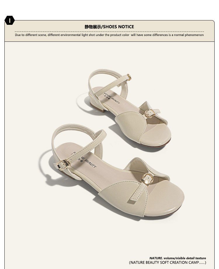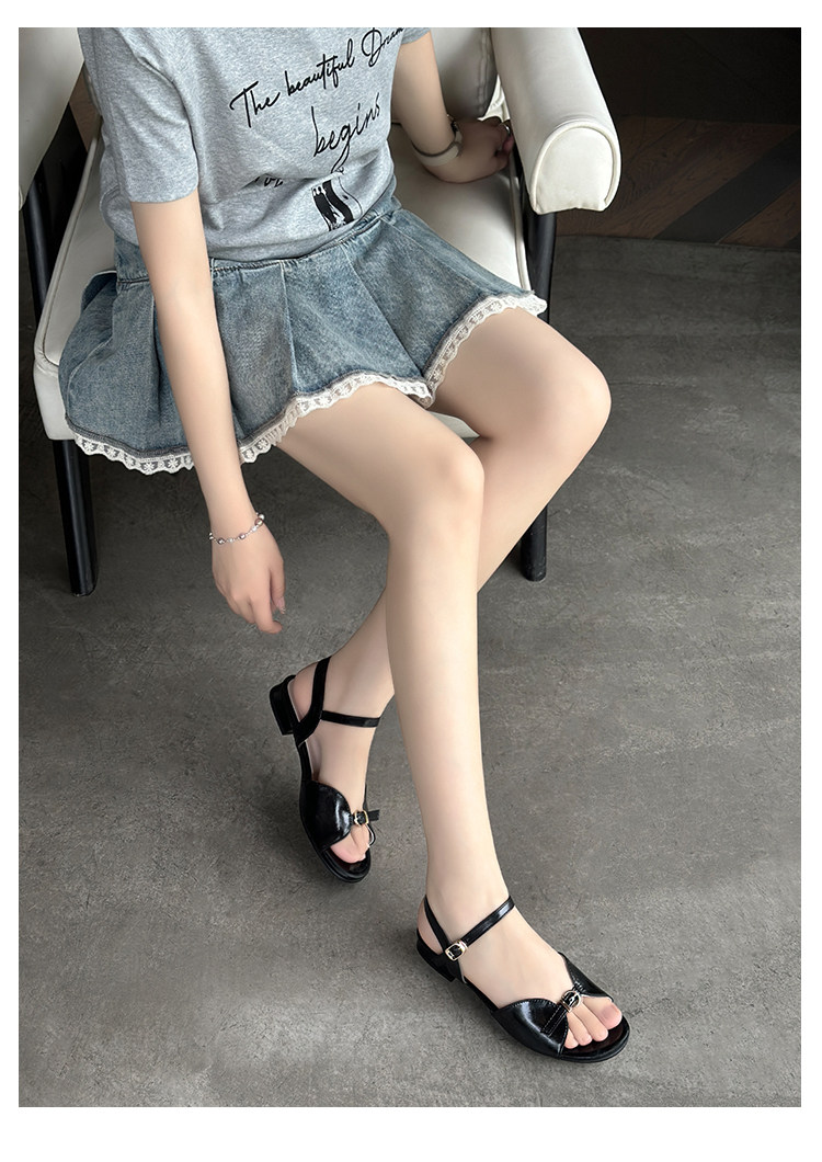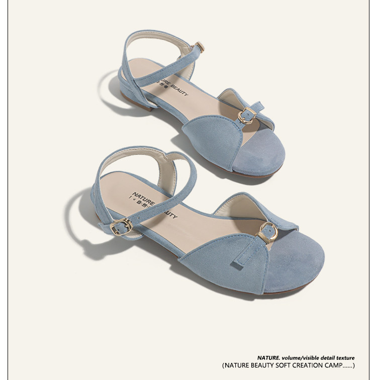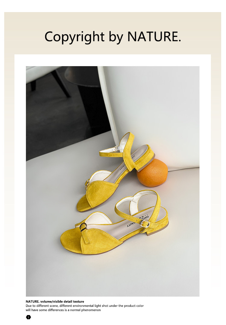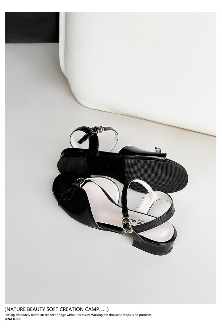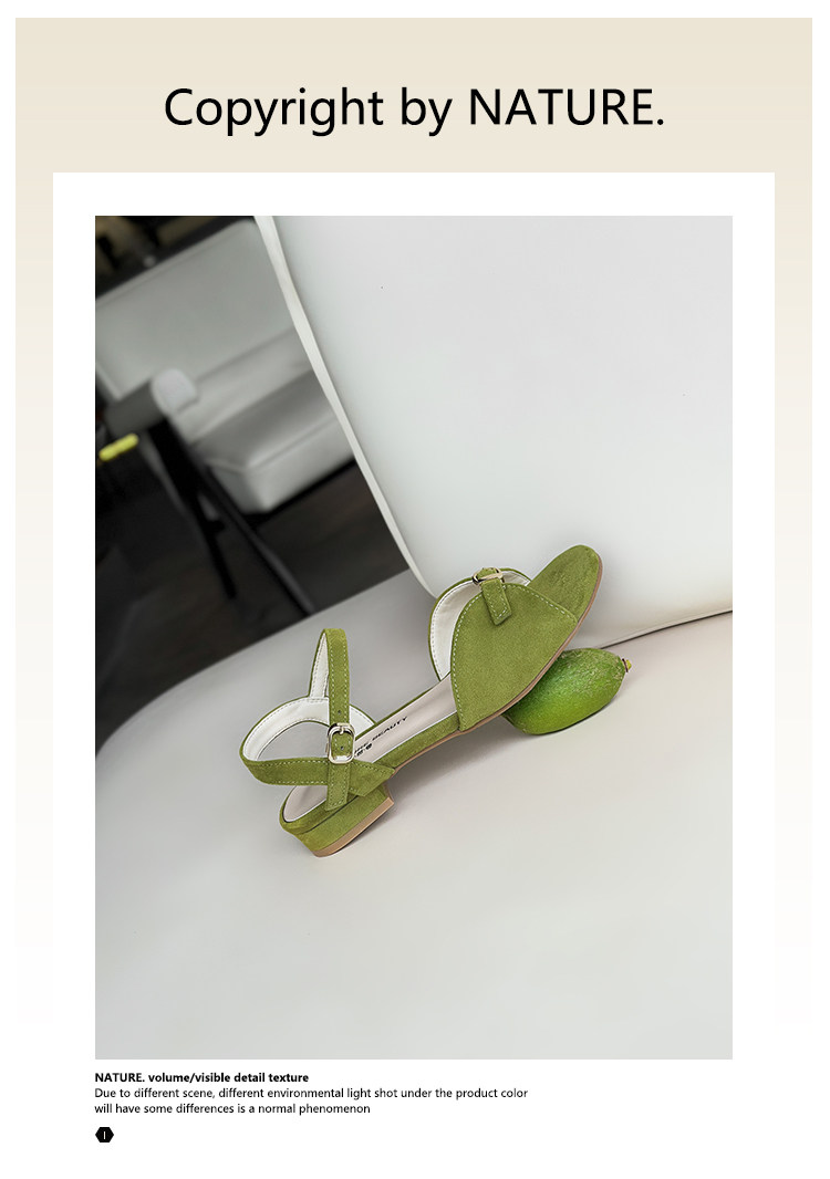 Natural Roll Thick Heel Casual Simple Open-Toe Commuting Sandals French Style One-Strap Open-Toe Roman Beach Shoes for Women