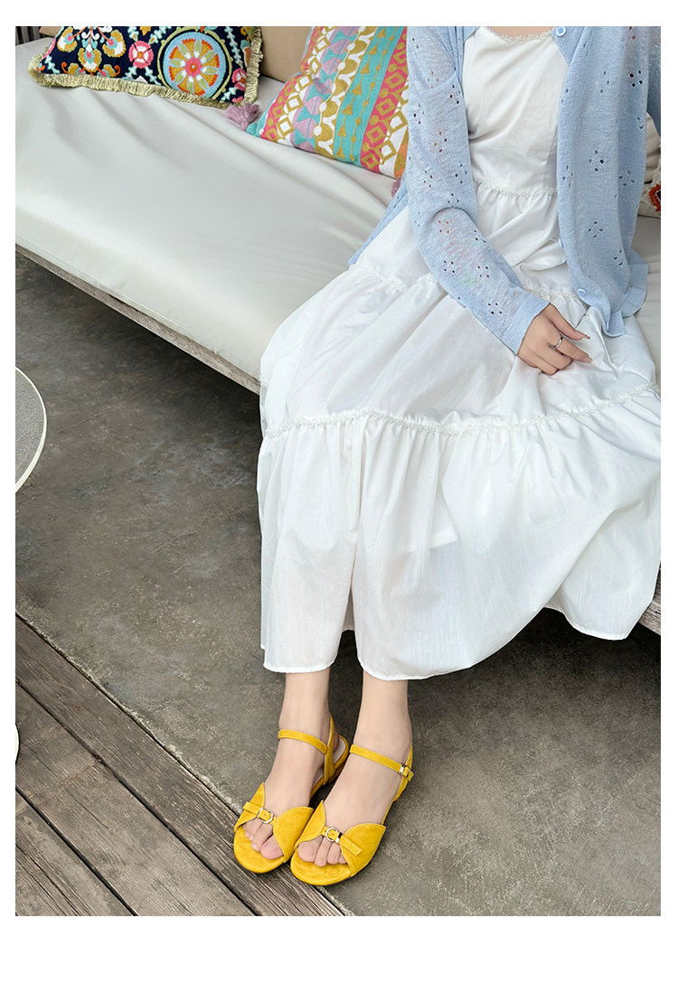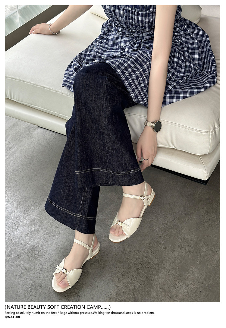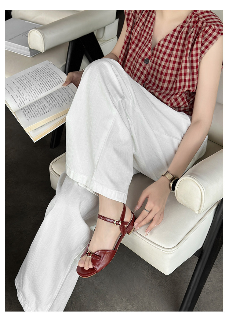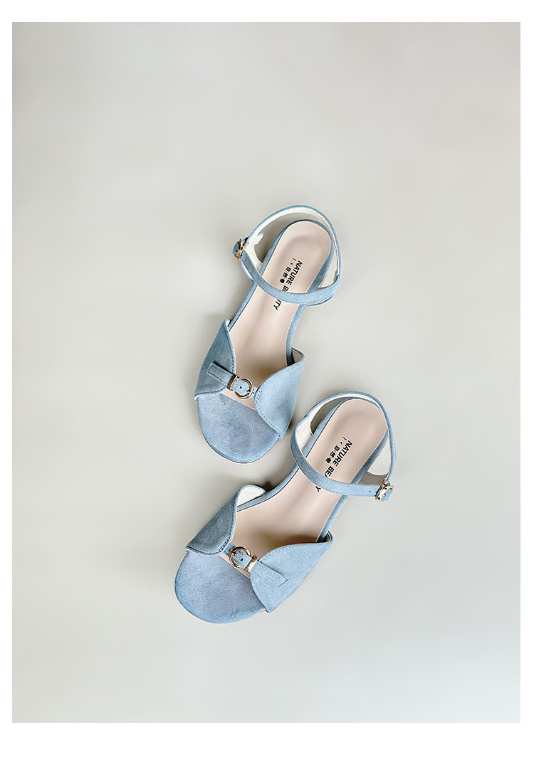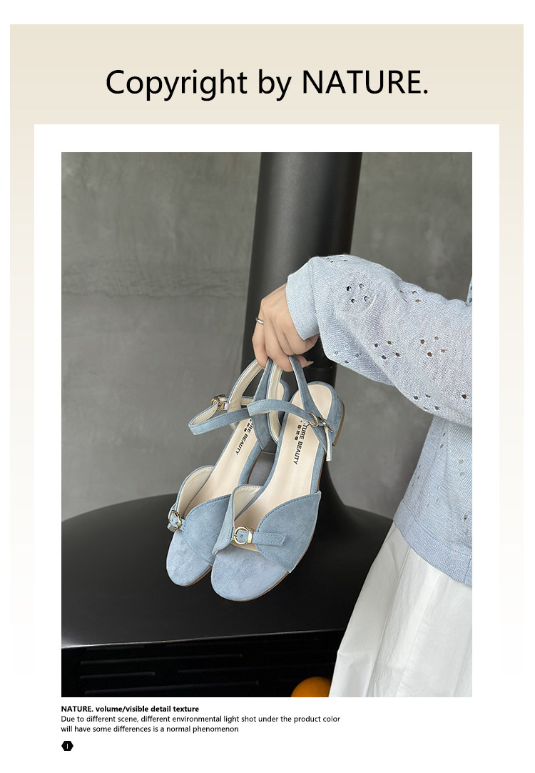 Natural Roll Thick Heel Casual Simple Open-Toe Commuting Sandals French Style One-Strap Open-Toe Roman Beach Shoes for Women