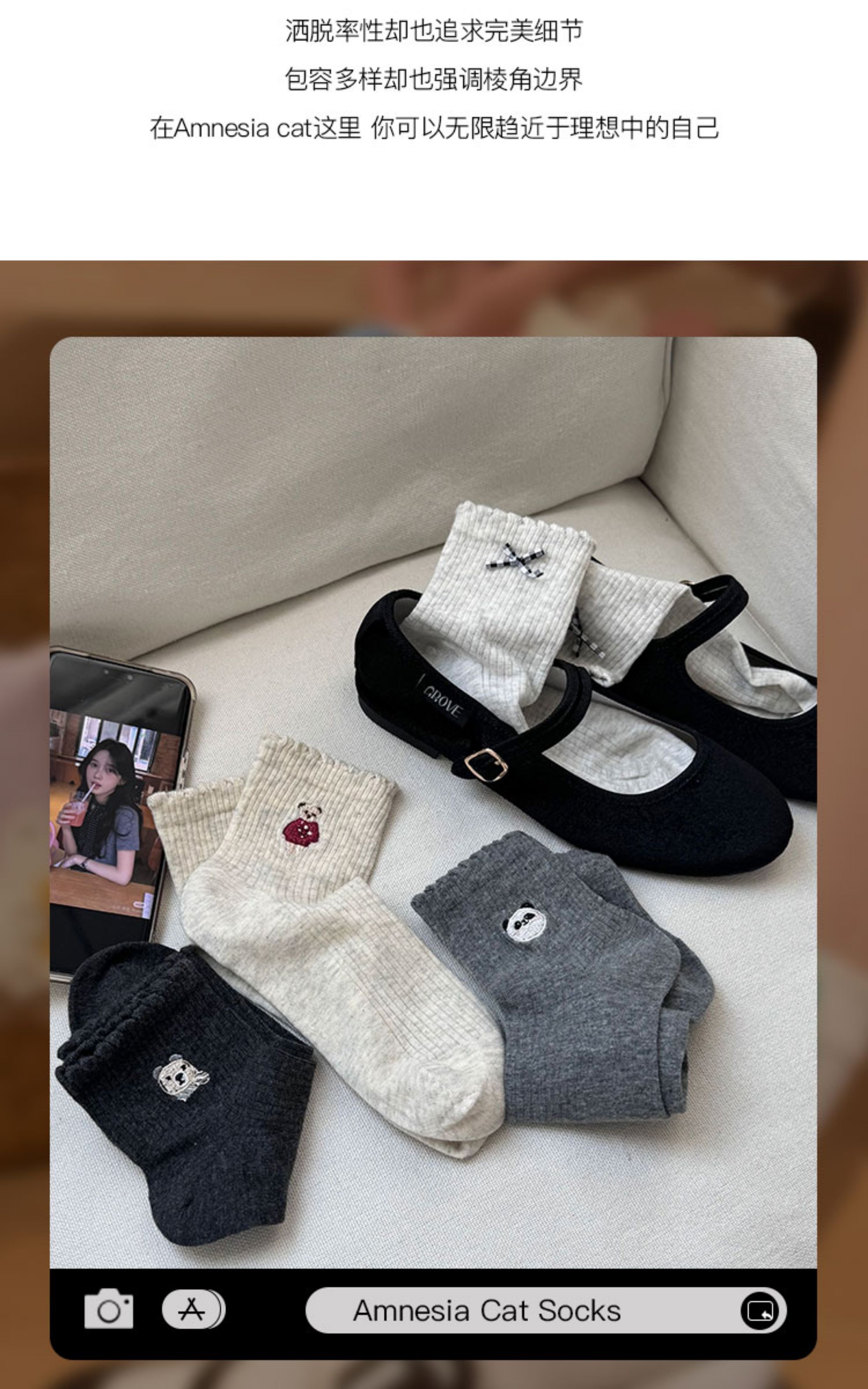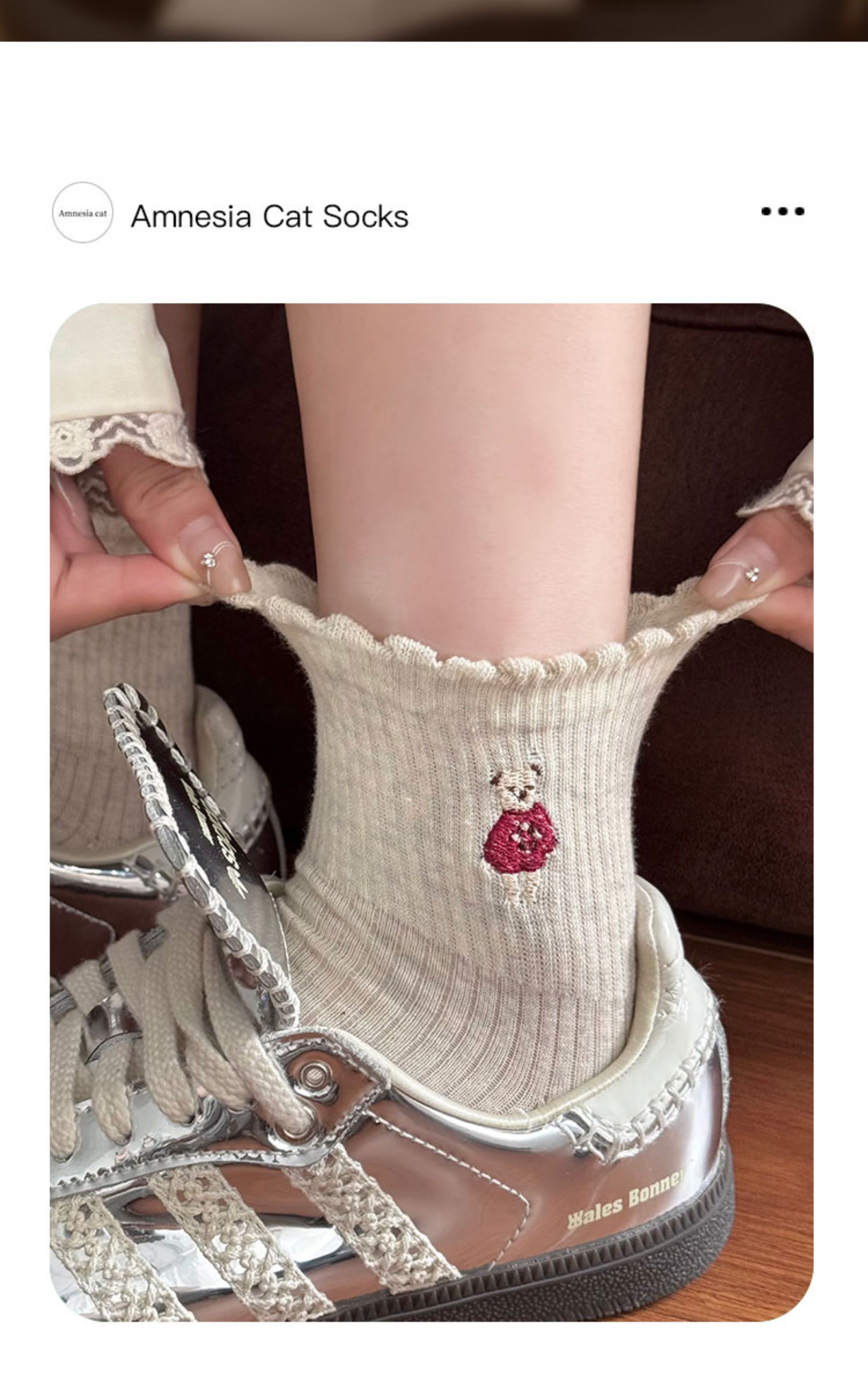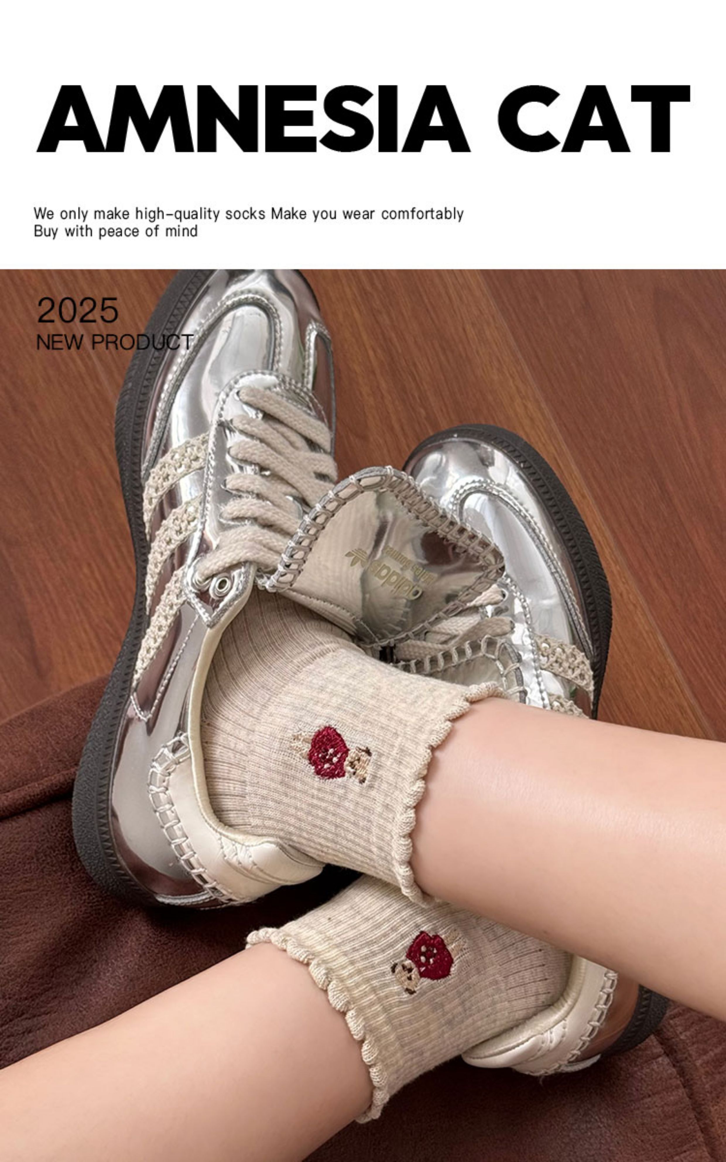 Cute Embroidered Socks for Women with Lace Bow Short Socks for Spring and Autumn, Pure Cotton, Sweat-Absorbent and Breathable, 2025 New Hot Style