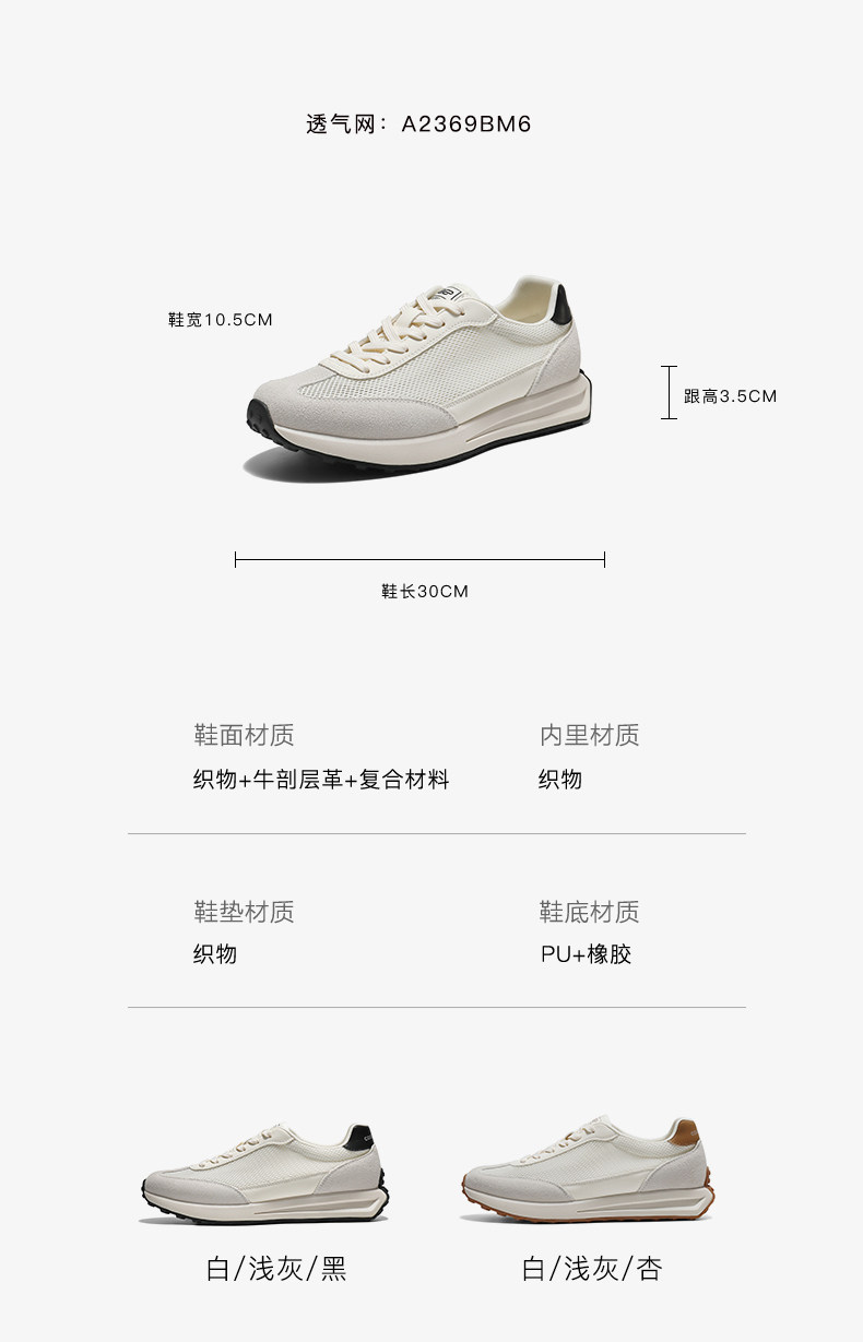 Zhang Linghe Recommends Belle Men's Height-Increasing Casual Sports German Training Shoes, Summer New Model, Mesh Breathable A2060