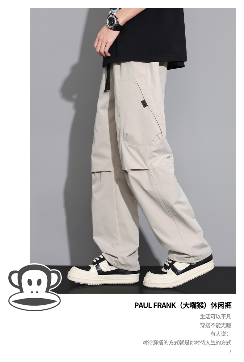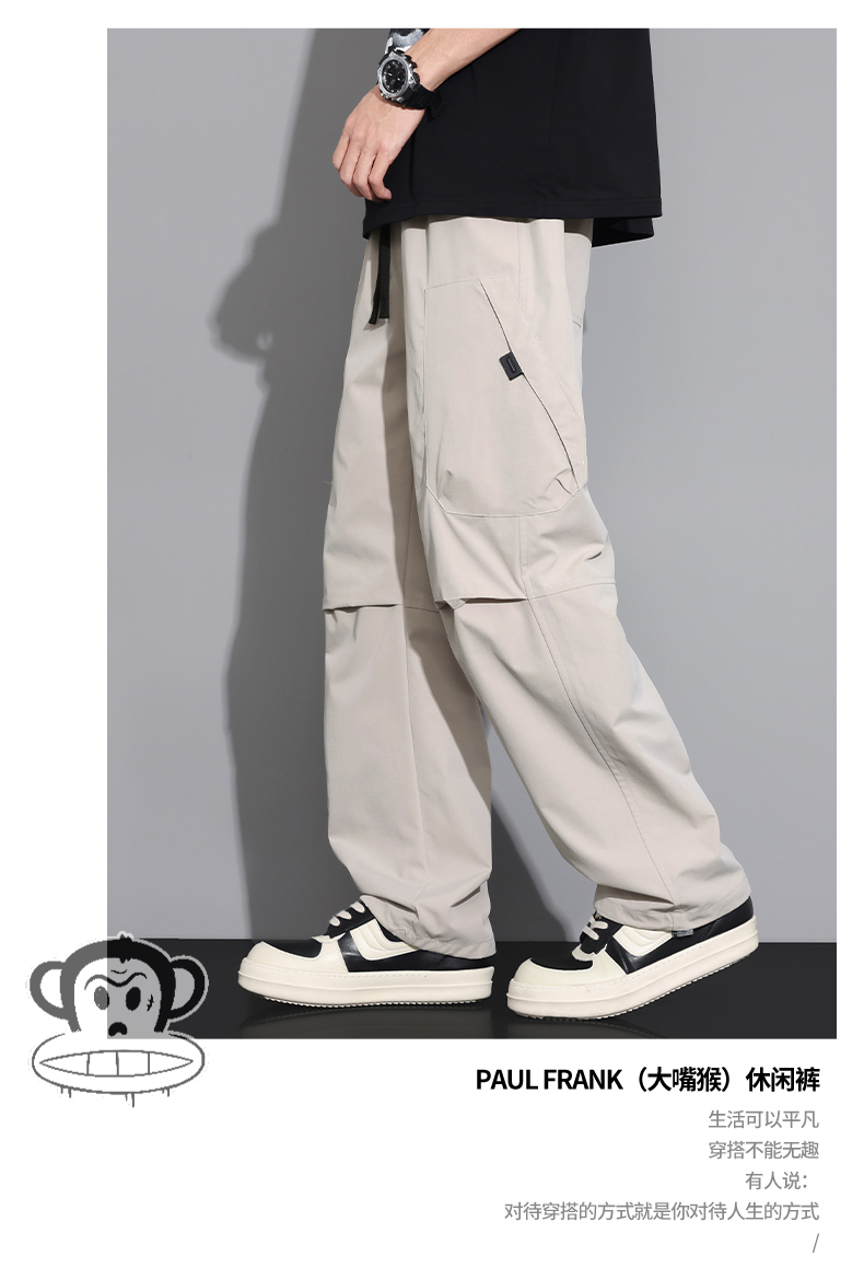 Paulfrank/Big Mouth Monkey Fleece-Lined Thickened Cargo Pants for Men 2025 Autumn and Winter Casual Loose Sports Pants for Teenagers