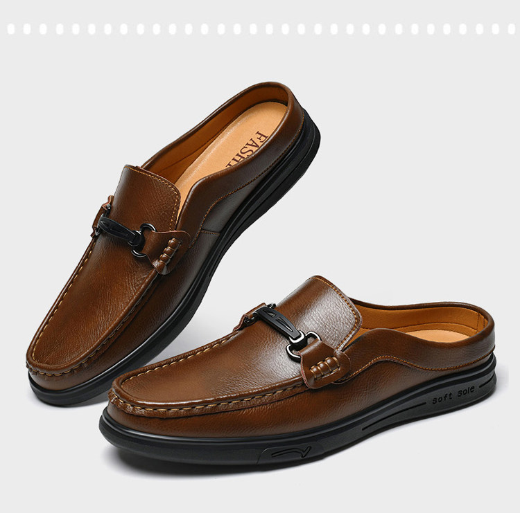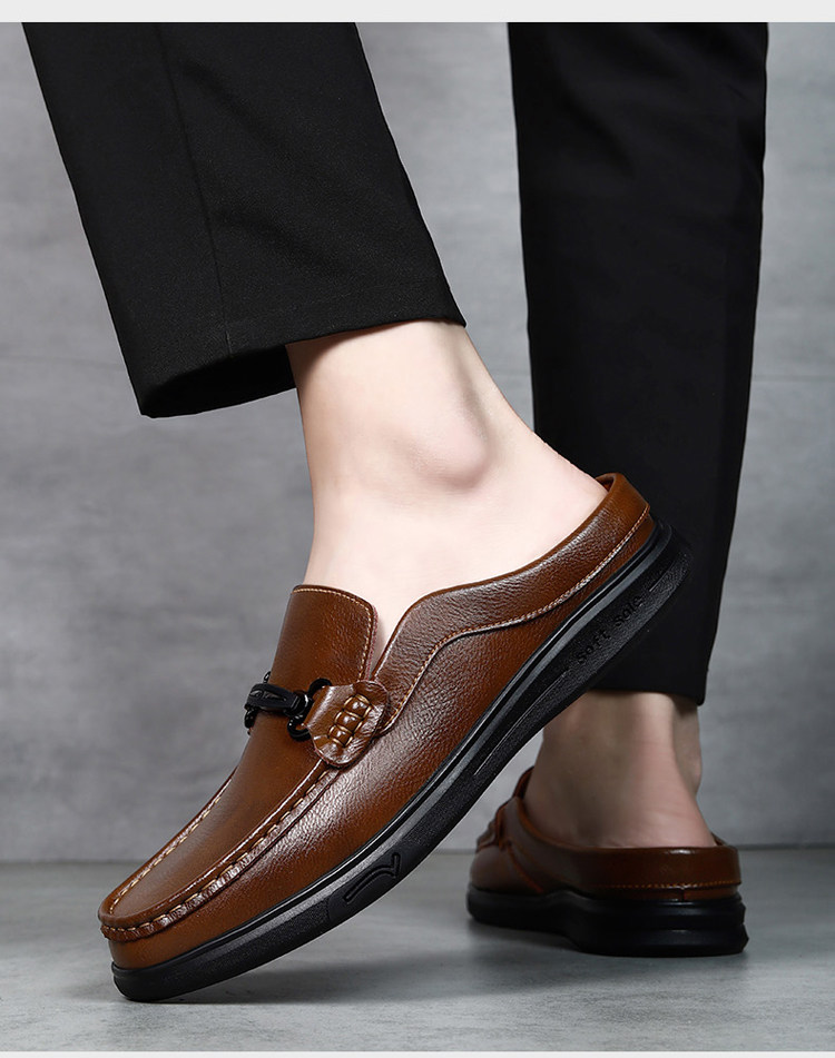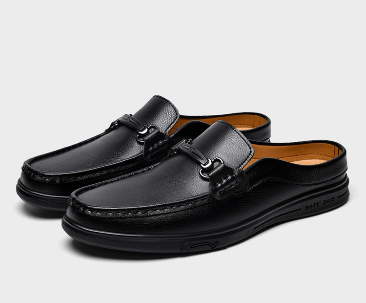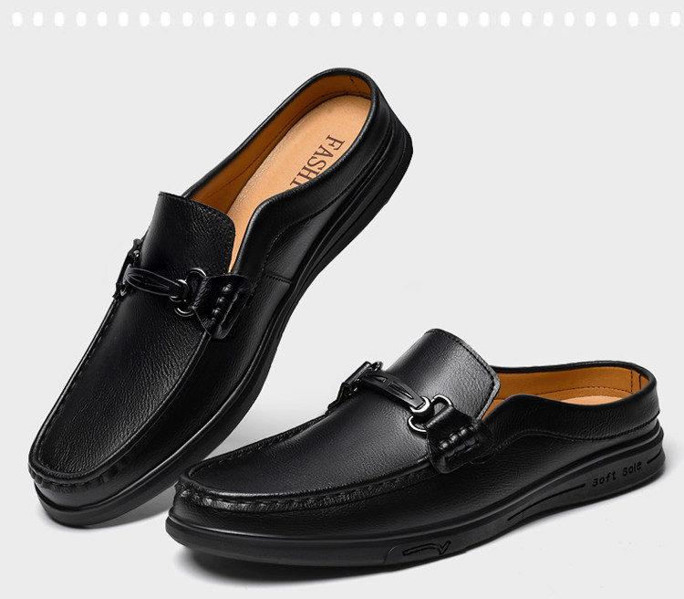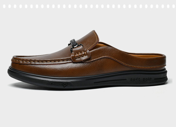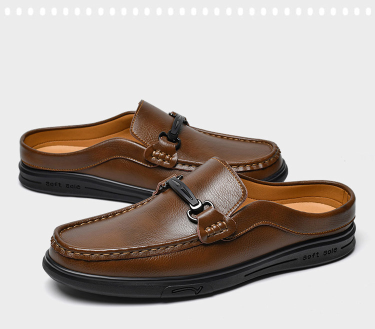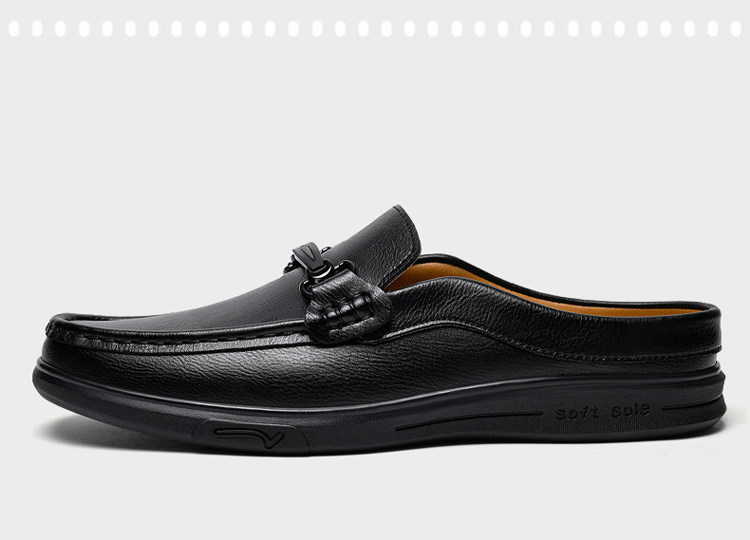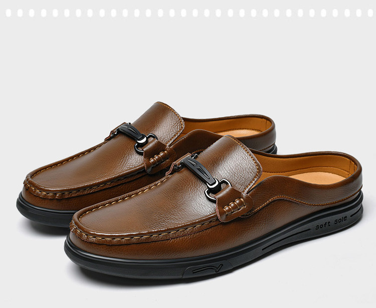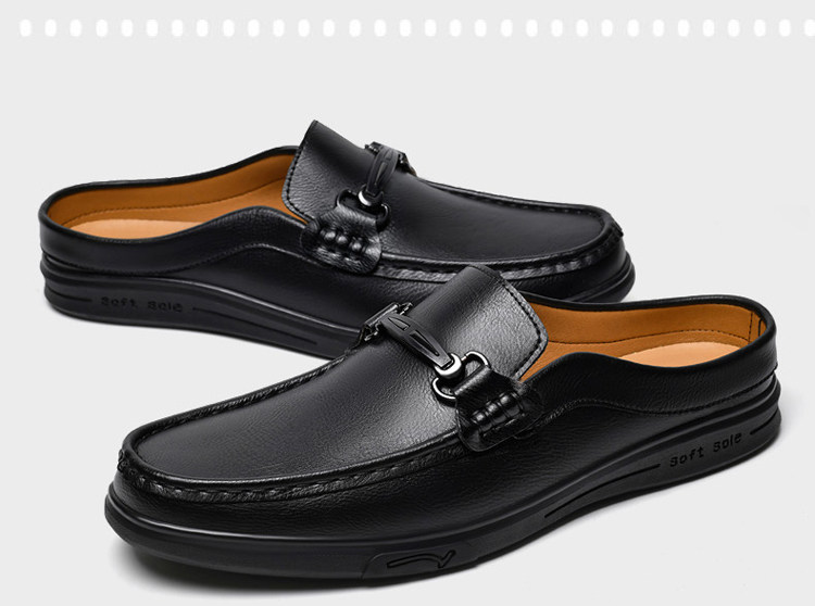 Soft Leather Casual Shoes for Men, Extra Large Size 45, Half Slippers 46, Slip-On Without Heel, Lazy Leather Shoes 47, Genuine Leather Soft Sole