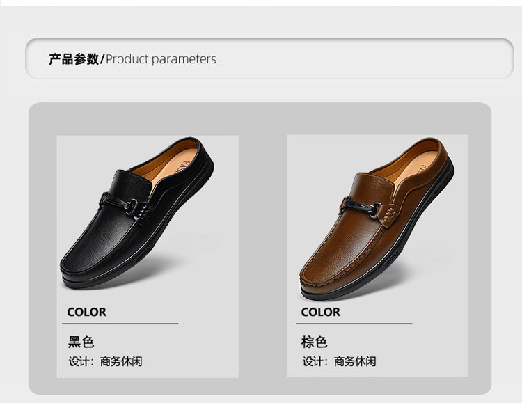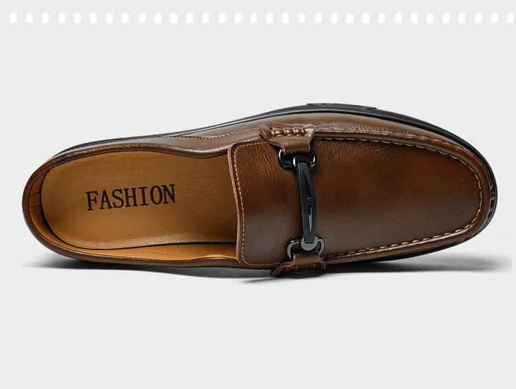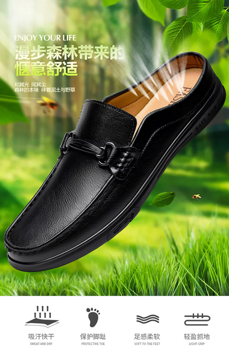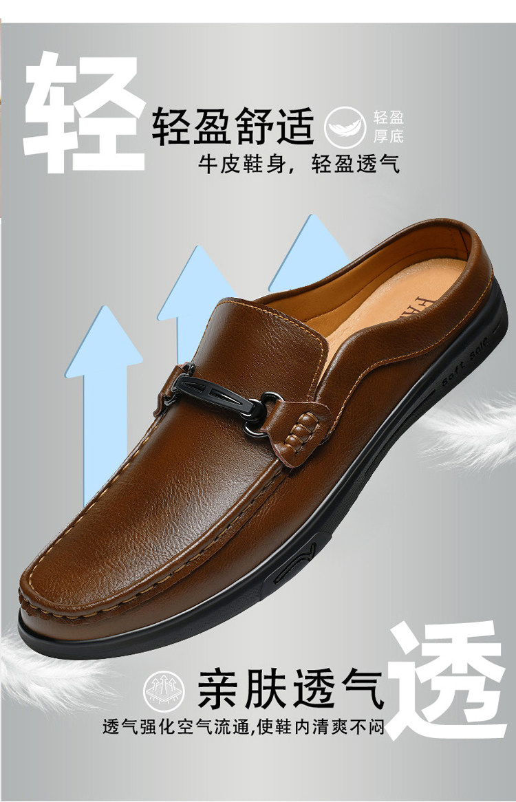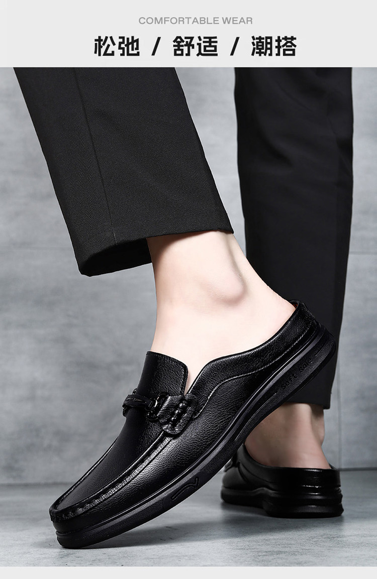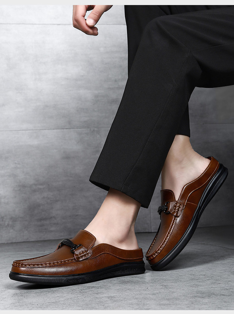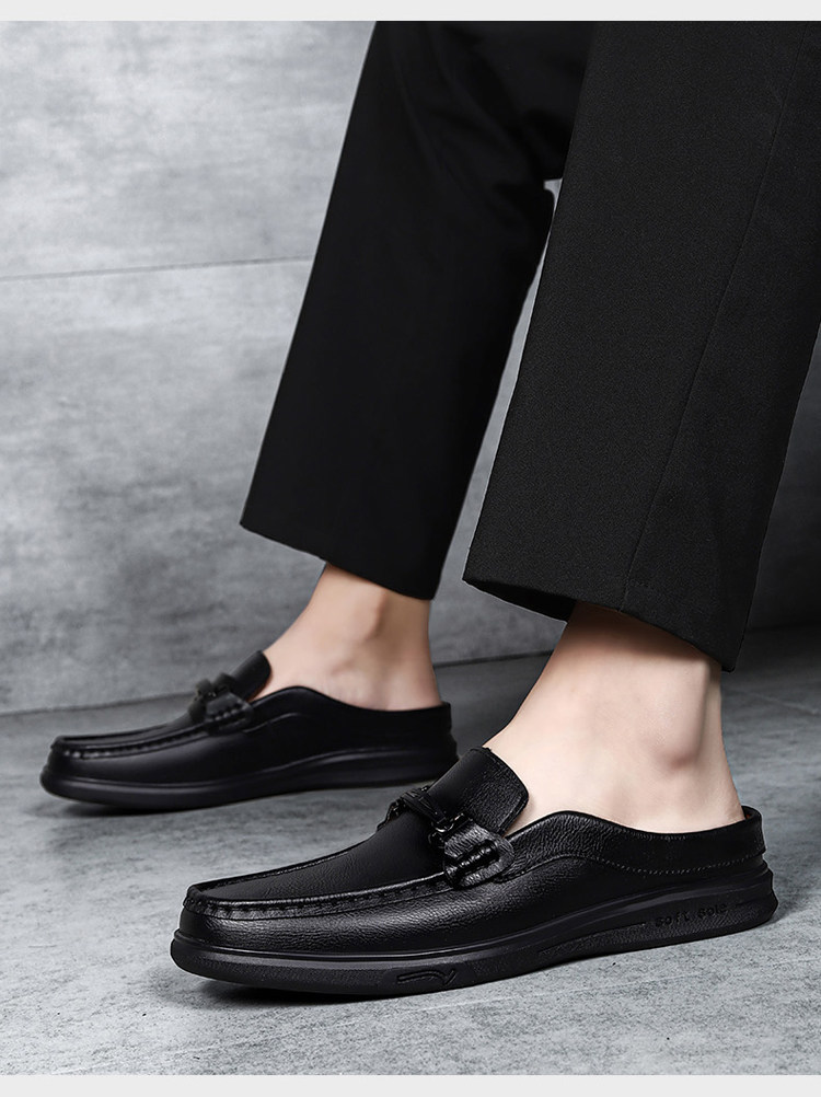Soft Leather Casual Shoes for Men, Extra Large Size 45, Half Slippers 46, Slip-On Without Heel, Lazy Leather Shoes 47, Genuine Leather Soft Sole