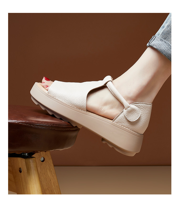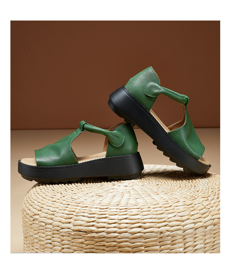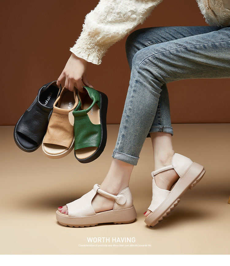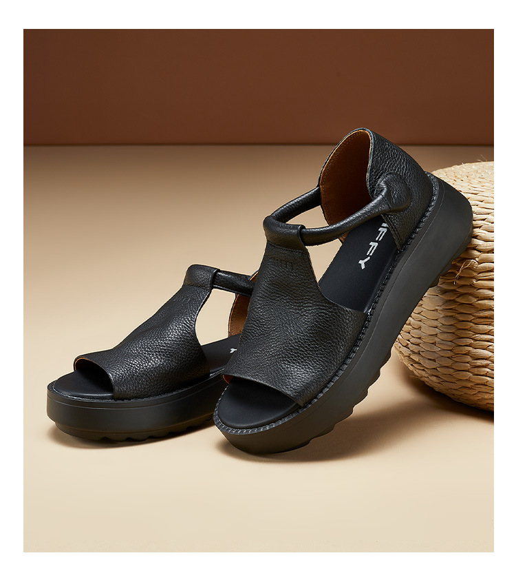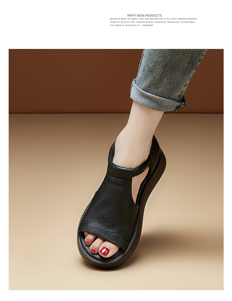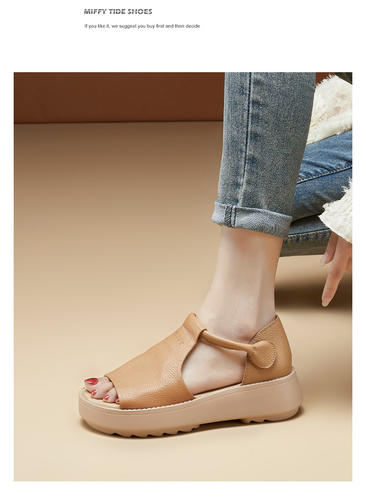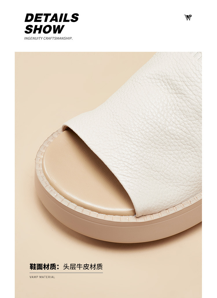 Brand Genuine Soft Leather Flat Sandals for Women, Summer Outdoor Wear, 2025 New Style, Soft Sole, Non-Slip, Slip-On Roman Shoes