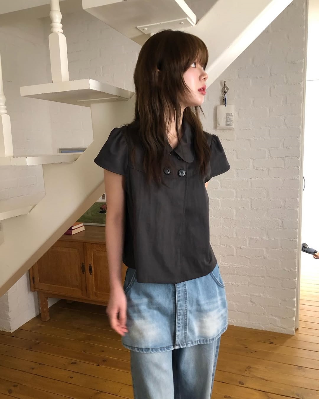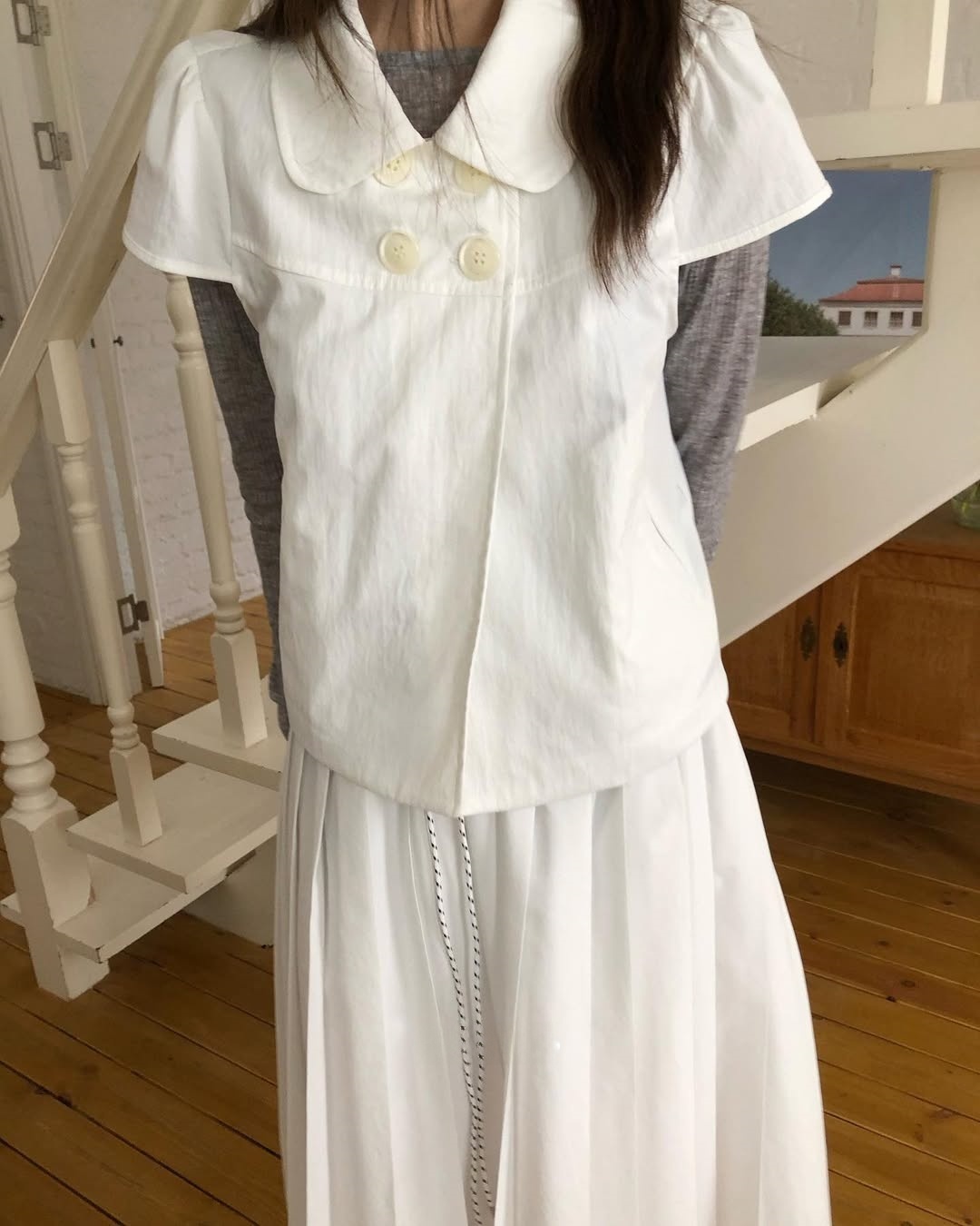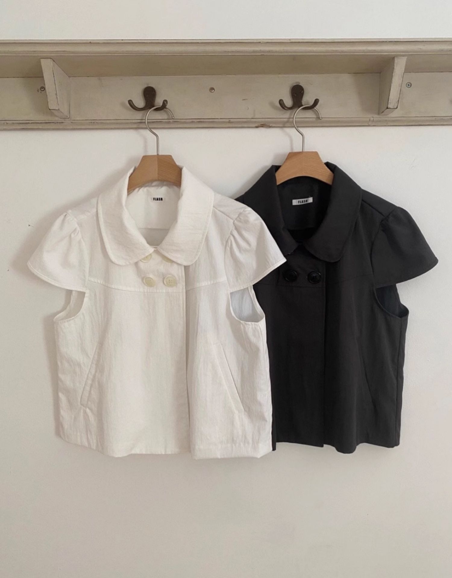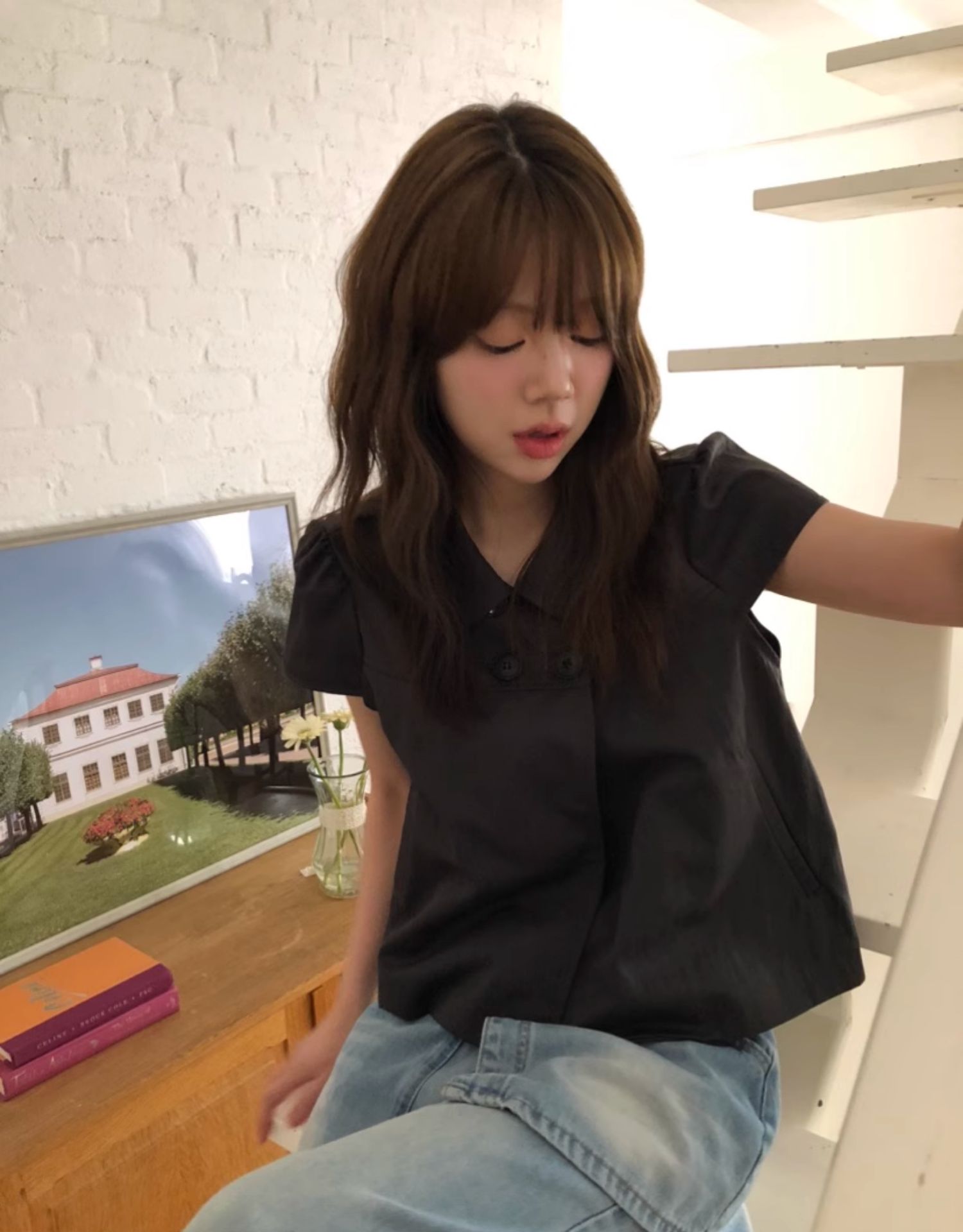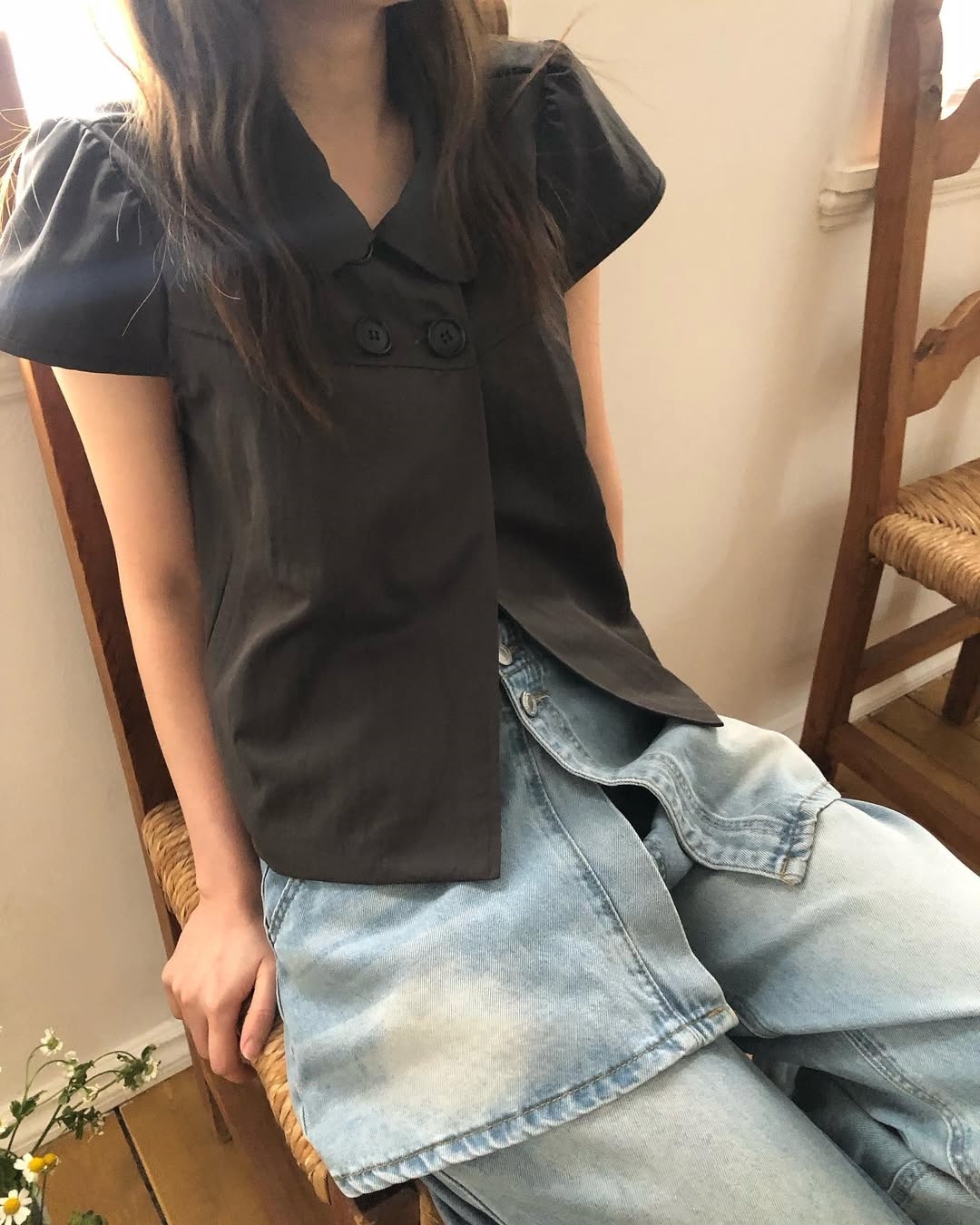 Up and on Korean Style Summer Gentle and Cute Versatile Doll Collar Big Button Puff Short-Sleeve Shirt Top