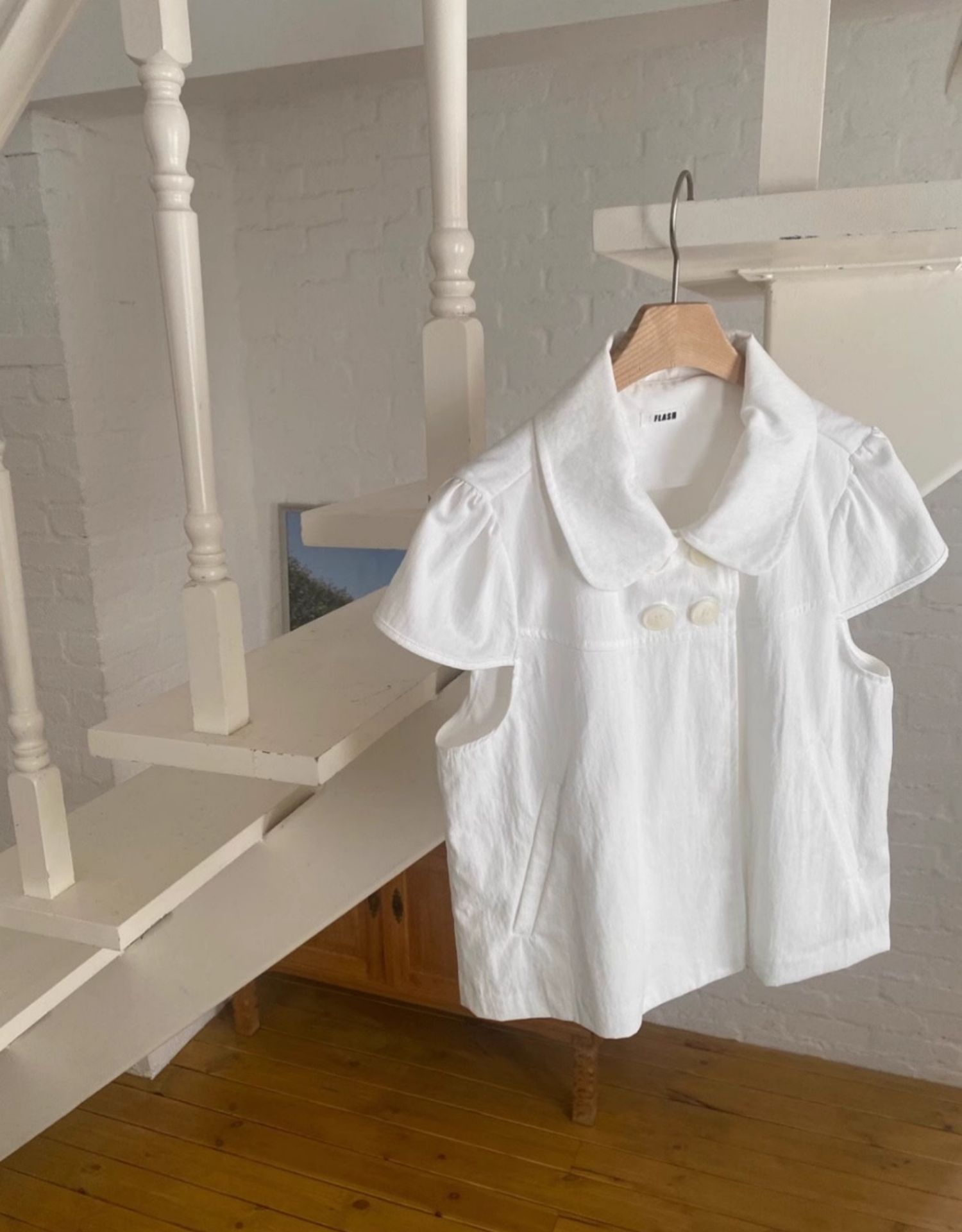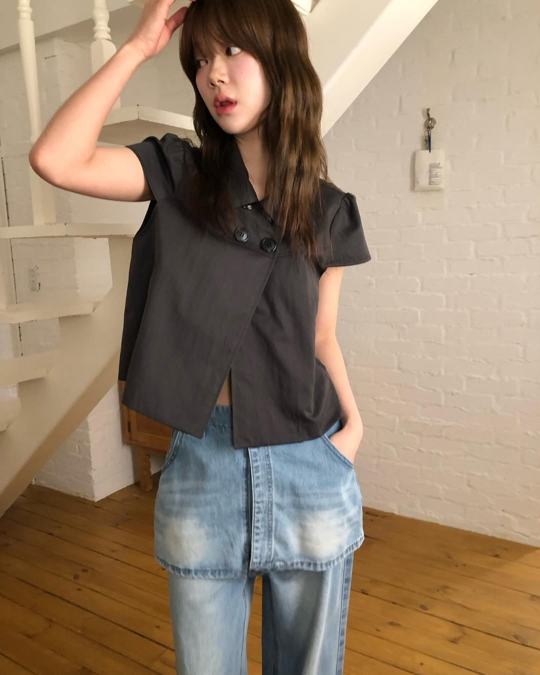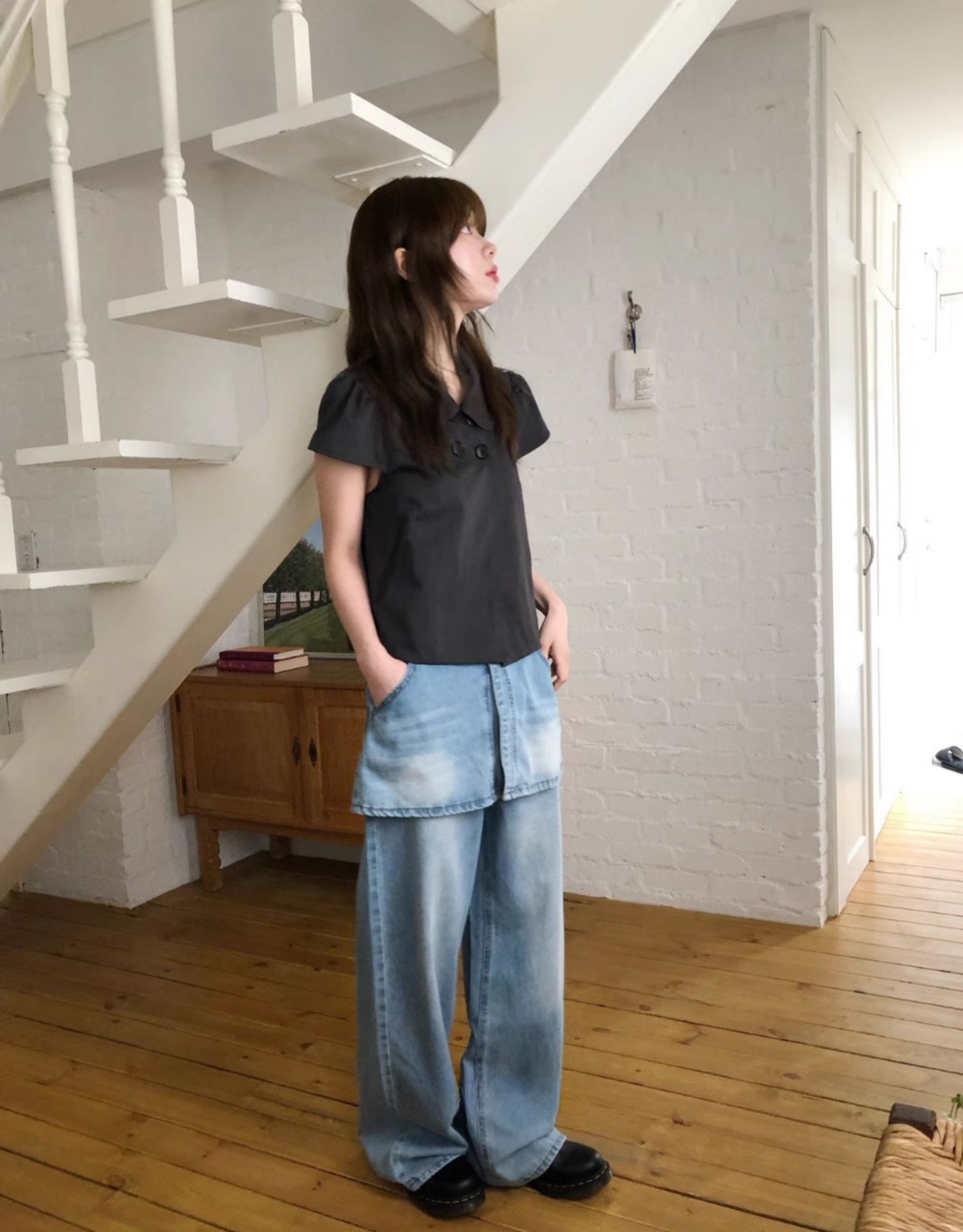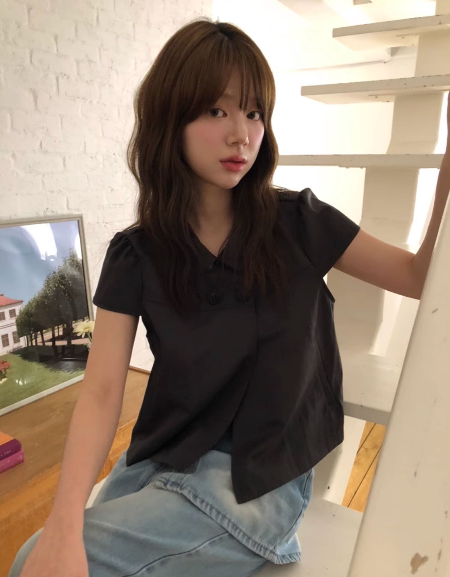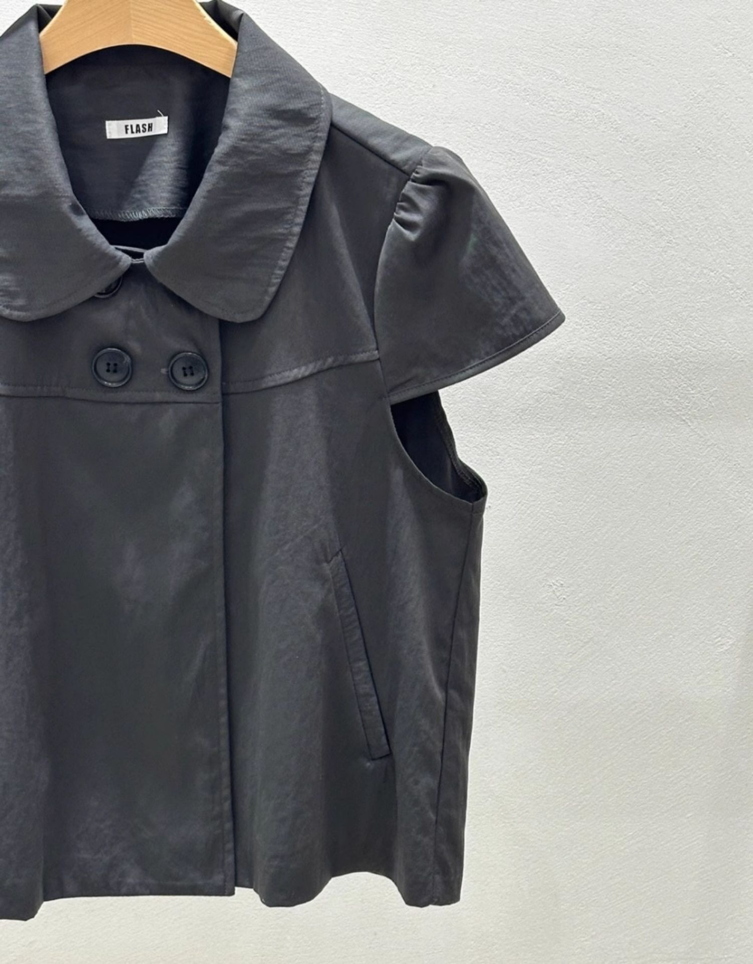 Up and on Korean Style Summer Gentle and Cute Versatile Doll Collar Big Button Puff Short-Sleeve Shirt Top