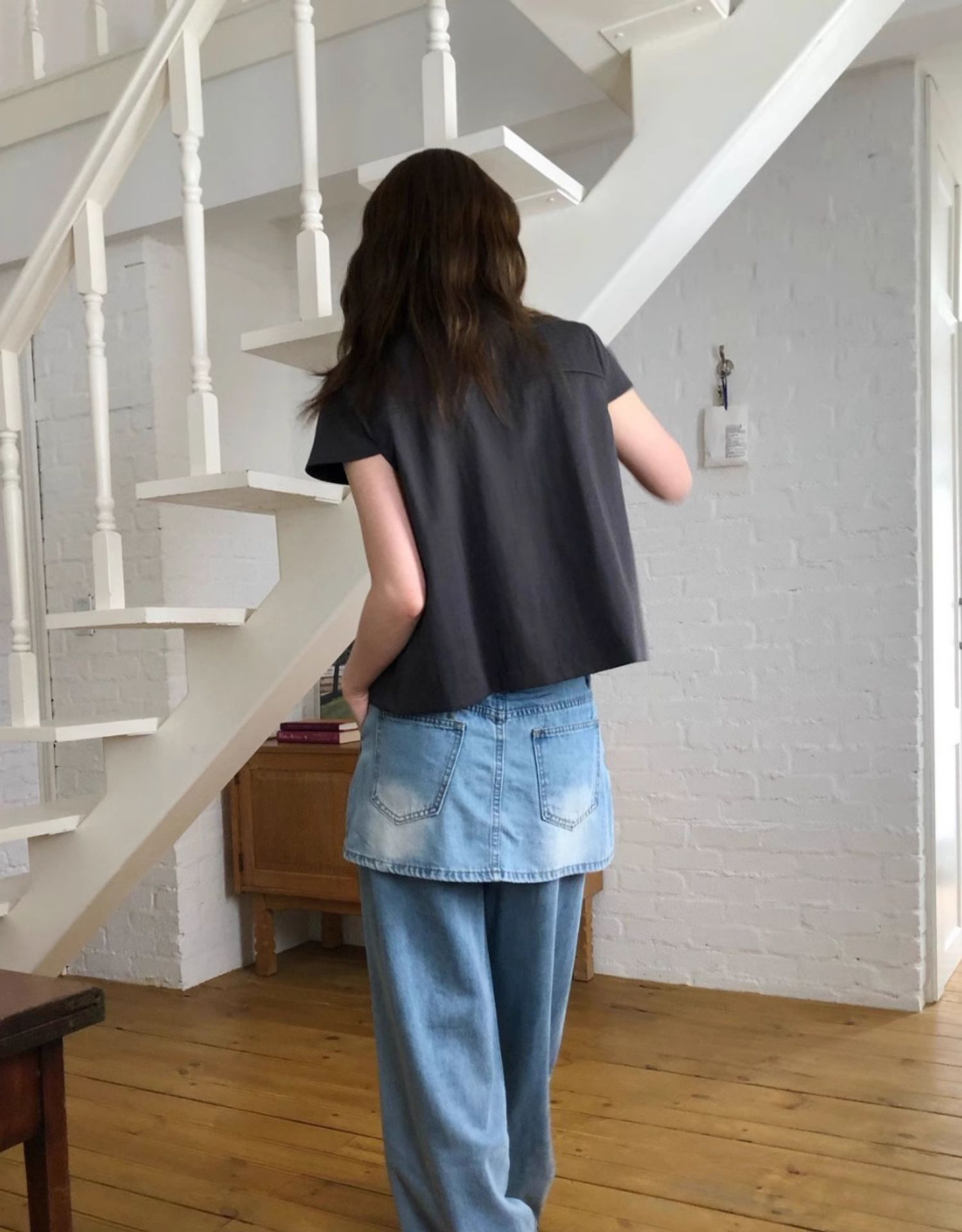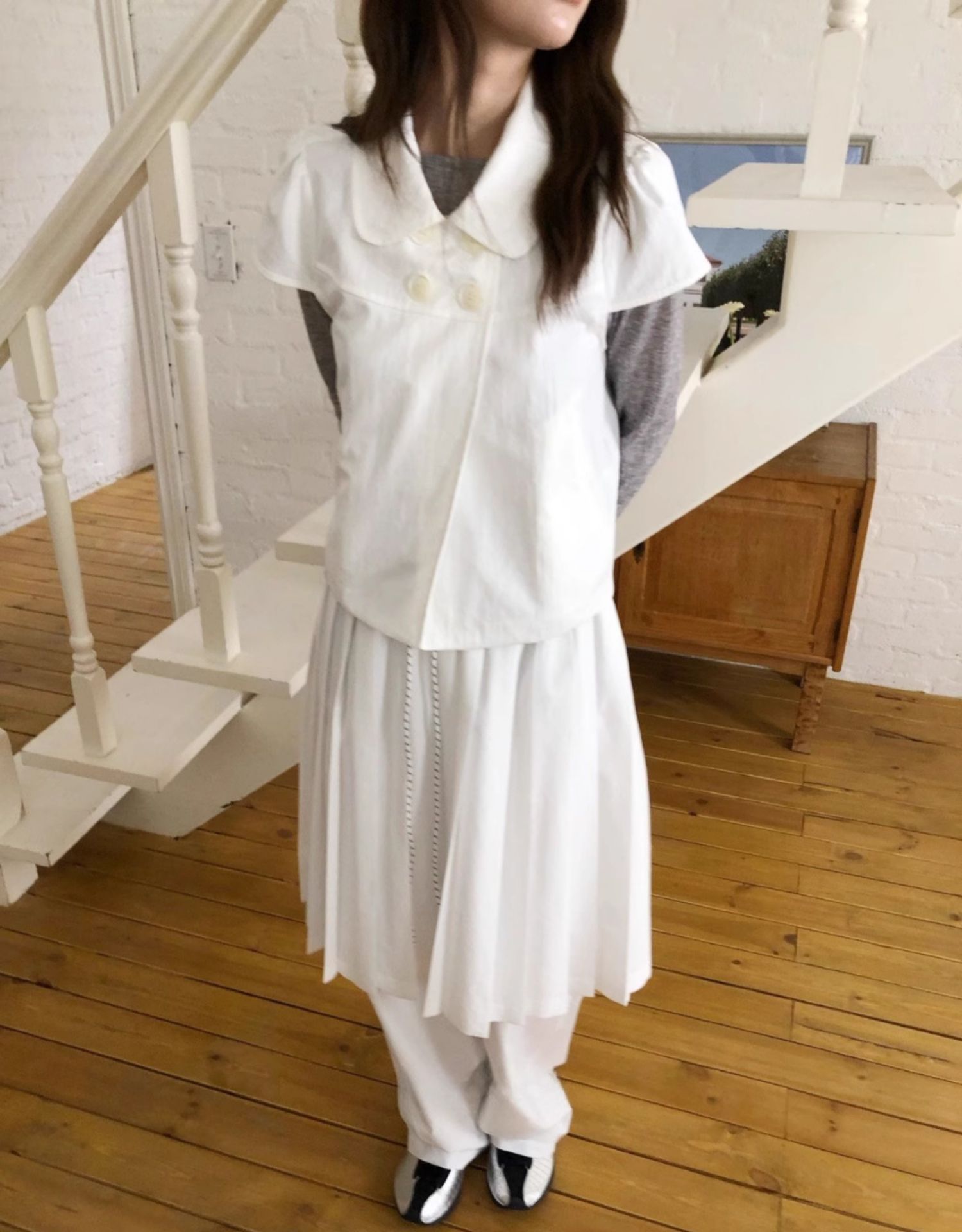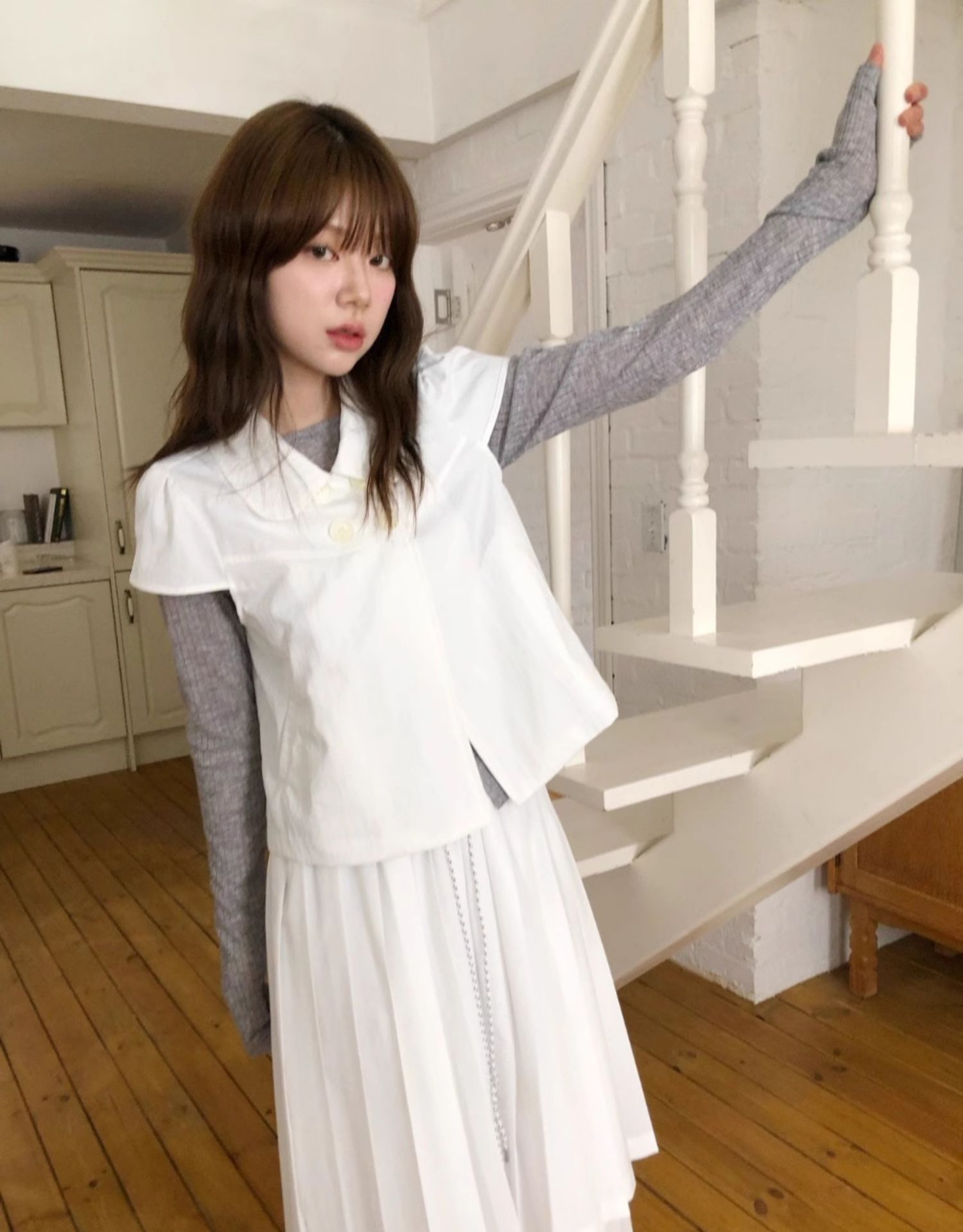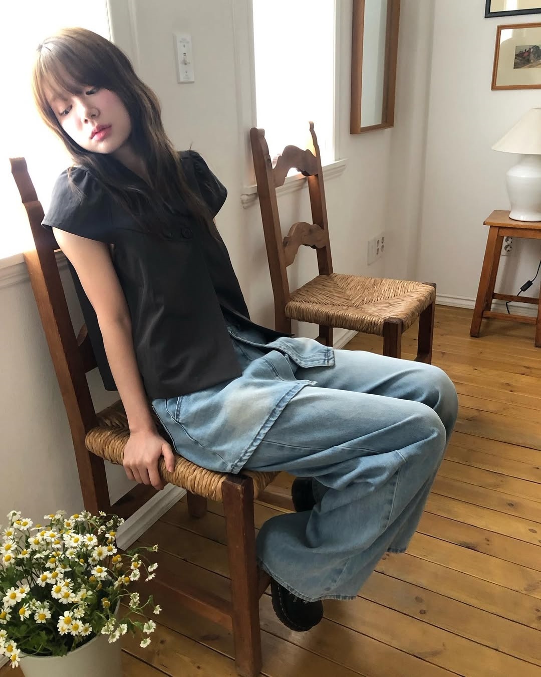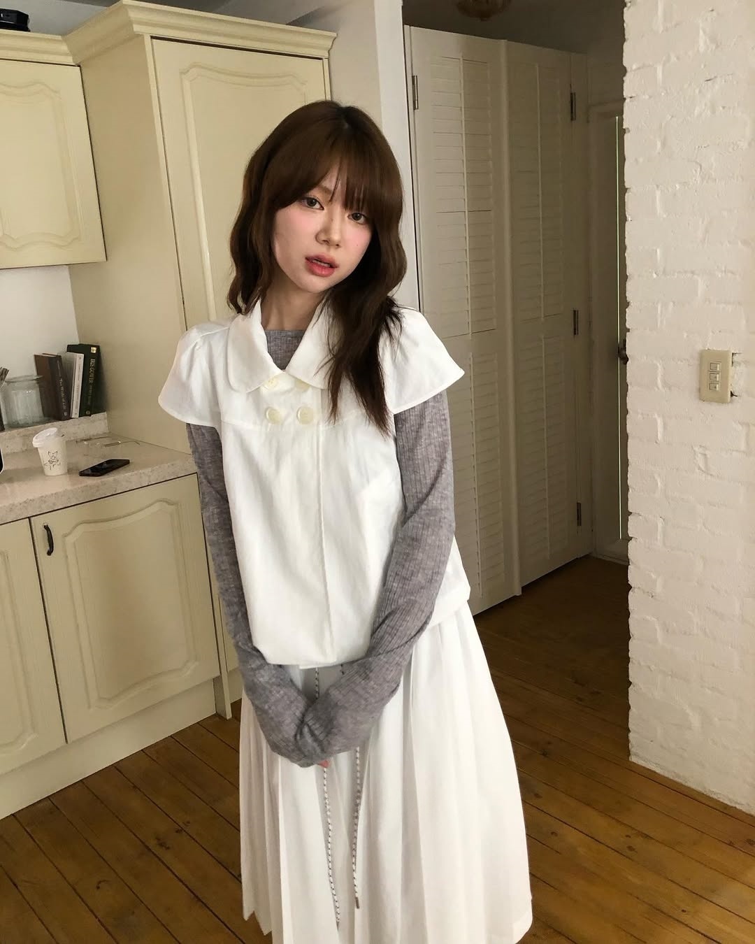 Up and on Korean Style Summer Gentle and Cute Versatile Doll Collar Big Button Puff Short-Sleeve Shirt Top