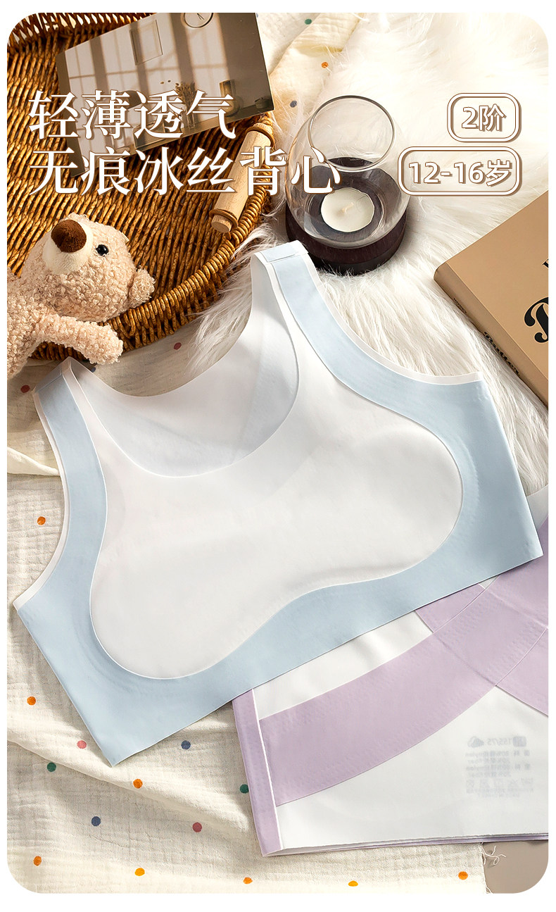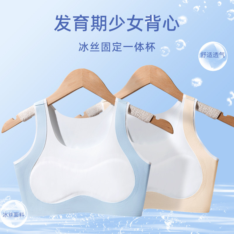 【Little Cool Breeze】Summer Developmental Period Girls' Underwear, Ice Silk Seamless Girls' First Stage Student Sports Vest