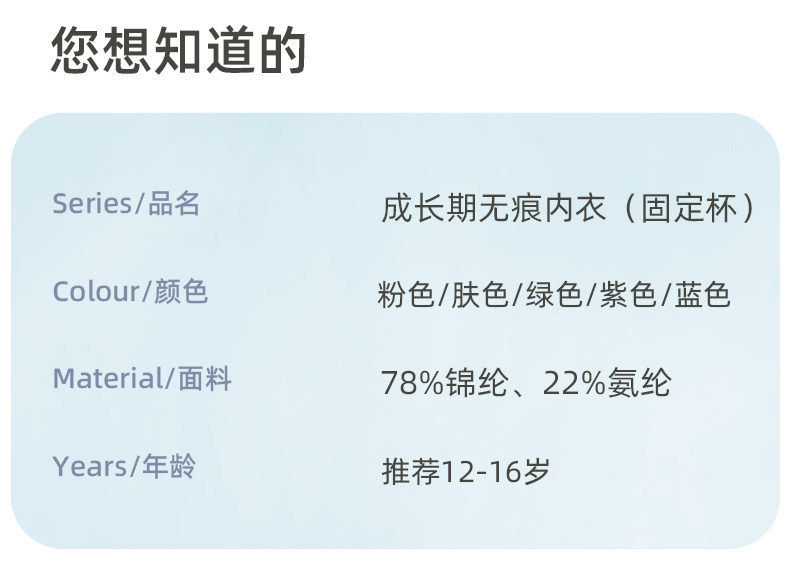 发育期少女文胸,舒适透气
