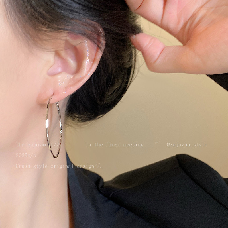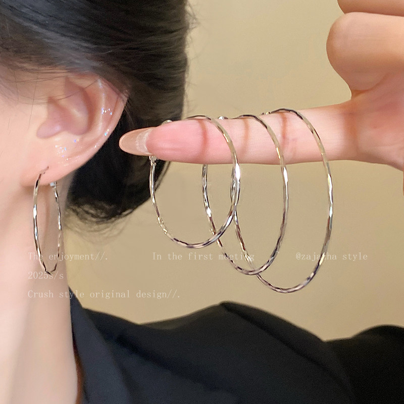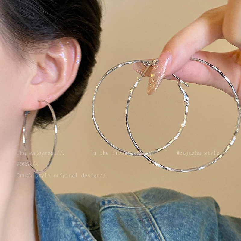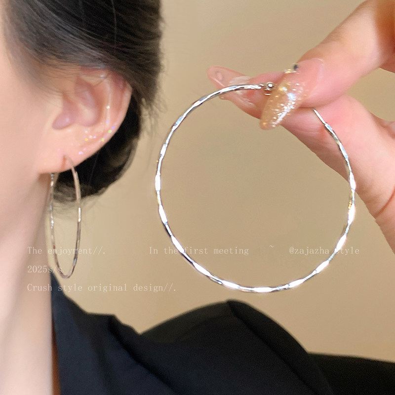 Thin Hoop Earrings for Women with Round Faces, Large Earrings, High-End, Light Luxury, 2026 New Popular Style, Plain Hoop Ear Clips, Ear Accessories