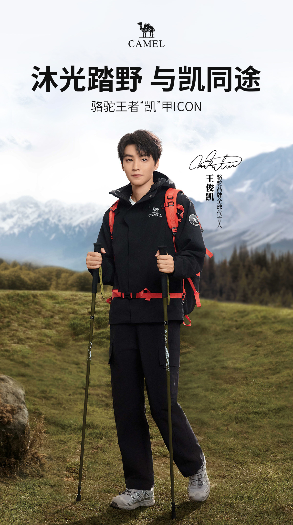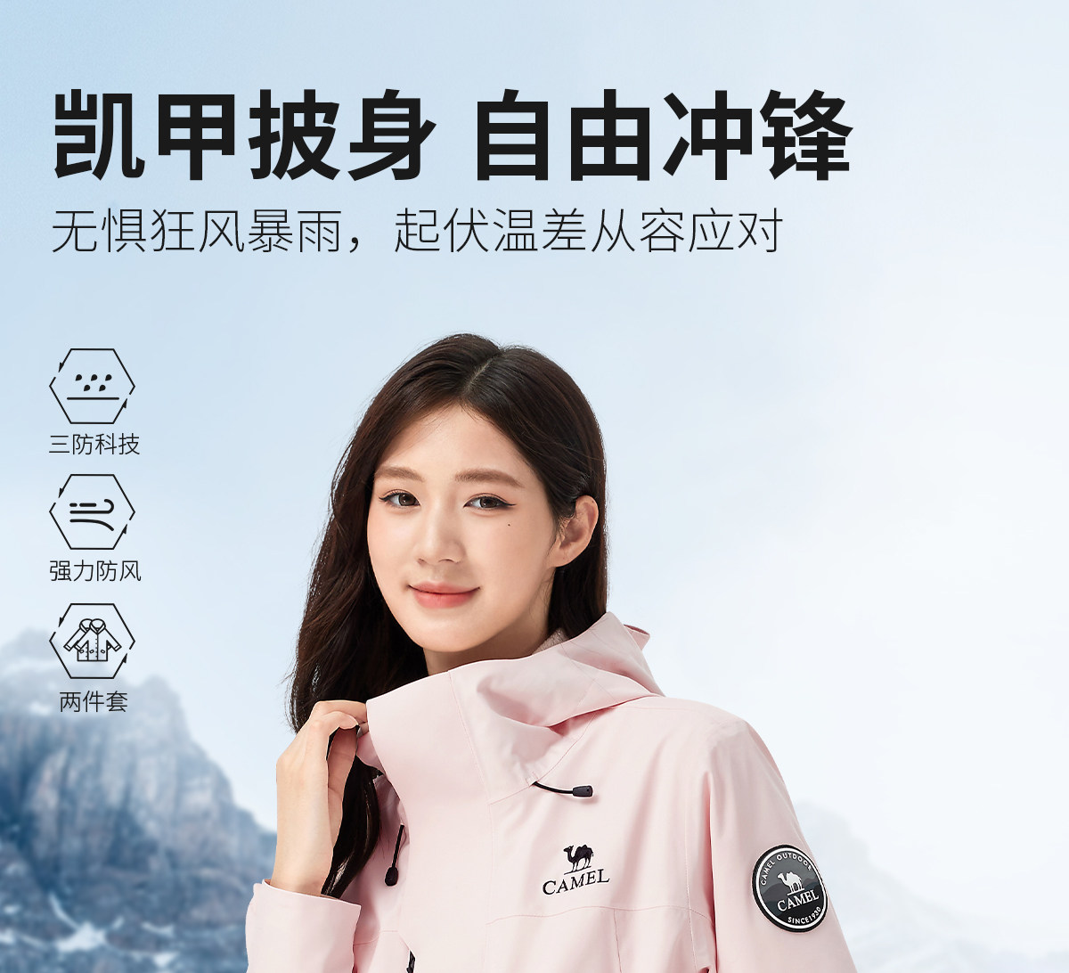 [Same Style as Wang Junkai] Camel King Armor Icon Black Outdoor Waterproof Jacket for Men and Women, Three-In-One