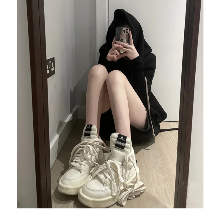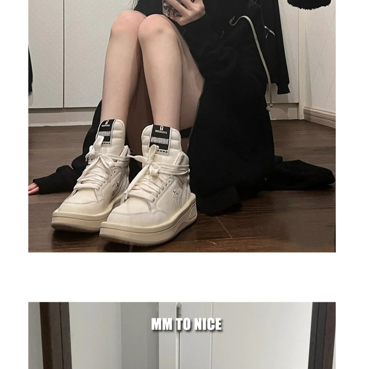 2026 New Ro Collaboration High-Top Shoes for Women, Genuine Leather Thick-Soled Height-Increasing Couple Sneakers, White Casual Sports Shoes for Men