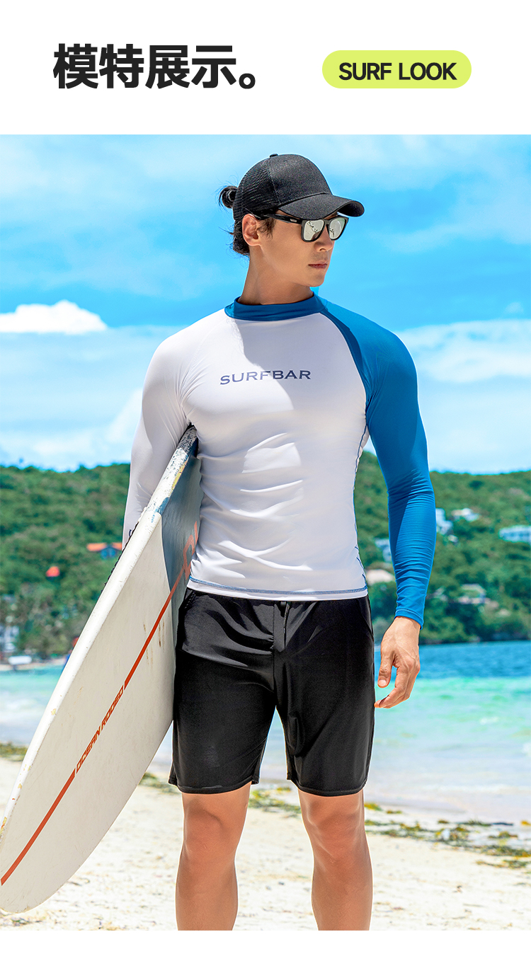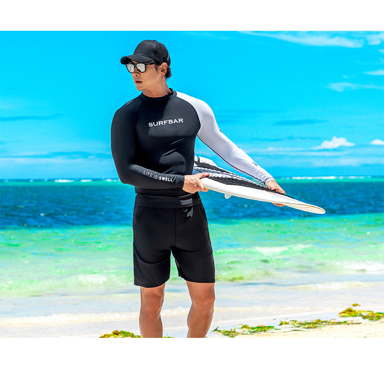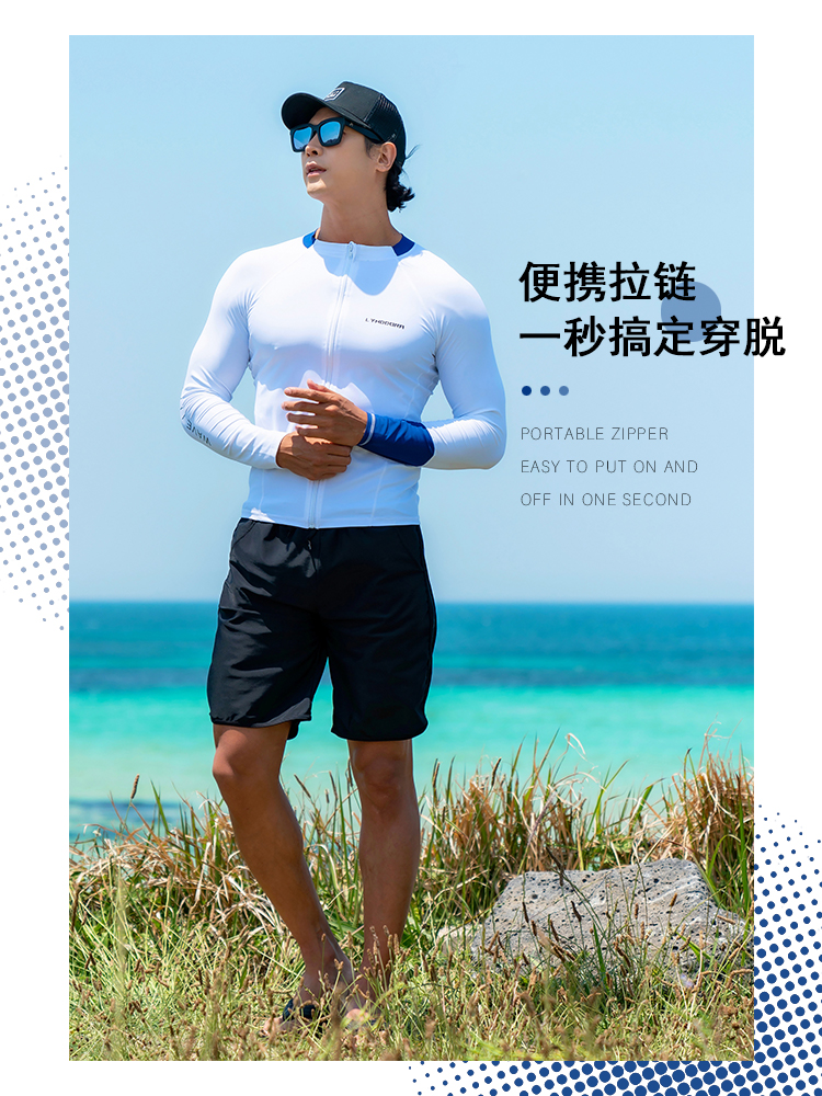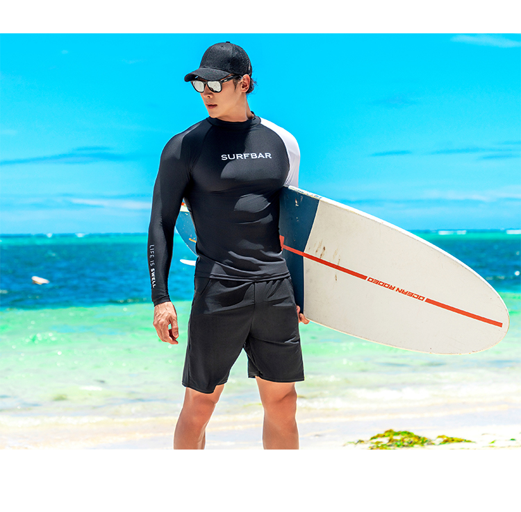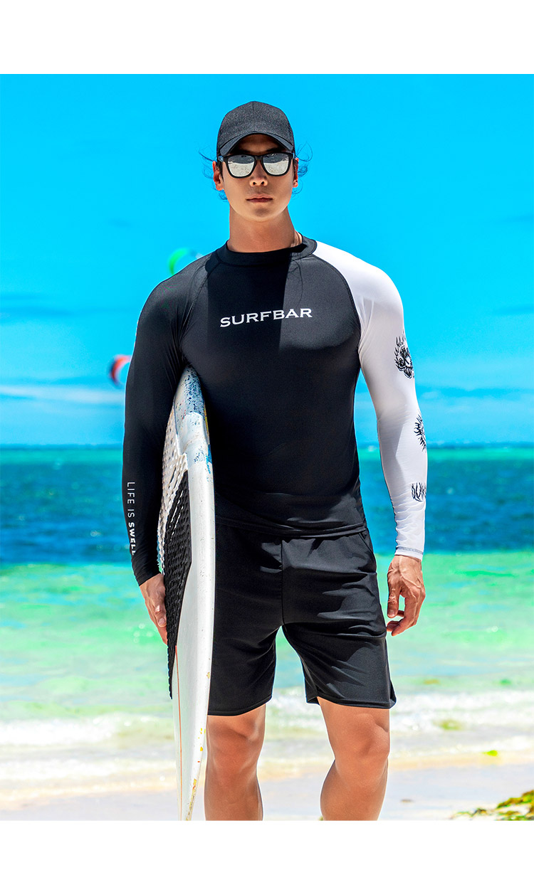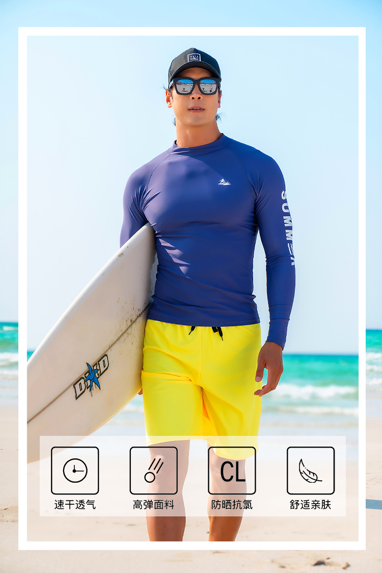 Men's Swimsuit and Swim Trunks Set, Sun Protection, Quick-Drying, Long-Sleeved Top, Large Size, Hot Spring Surfing Suit, Snorkeling Suit, Jellyfish Suit