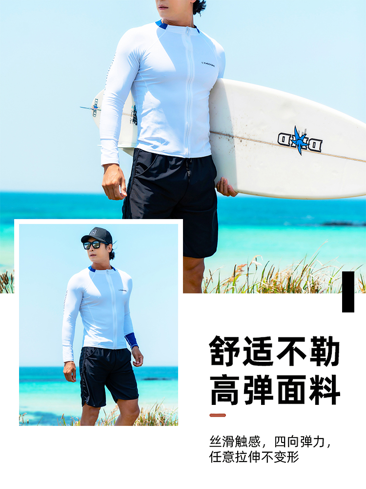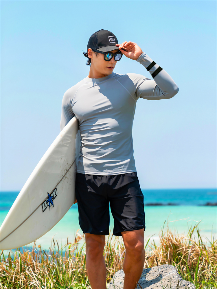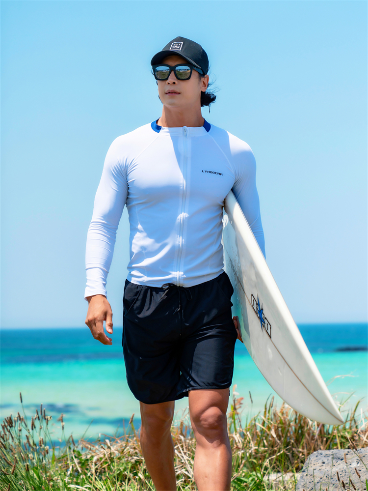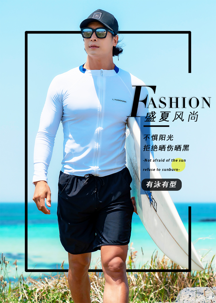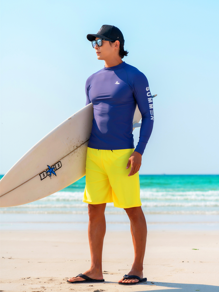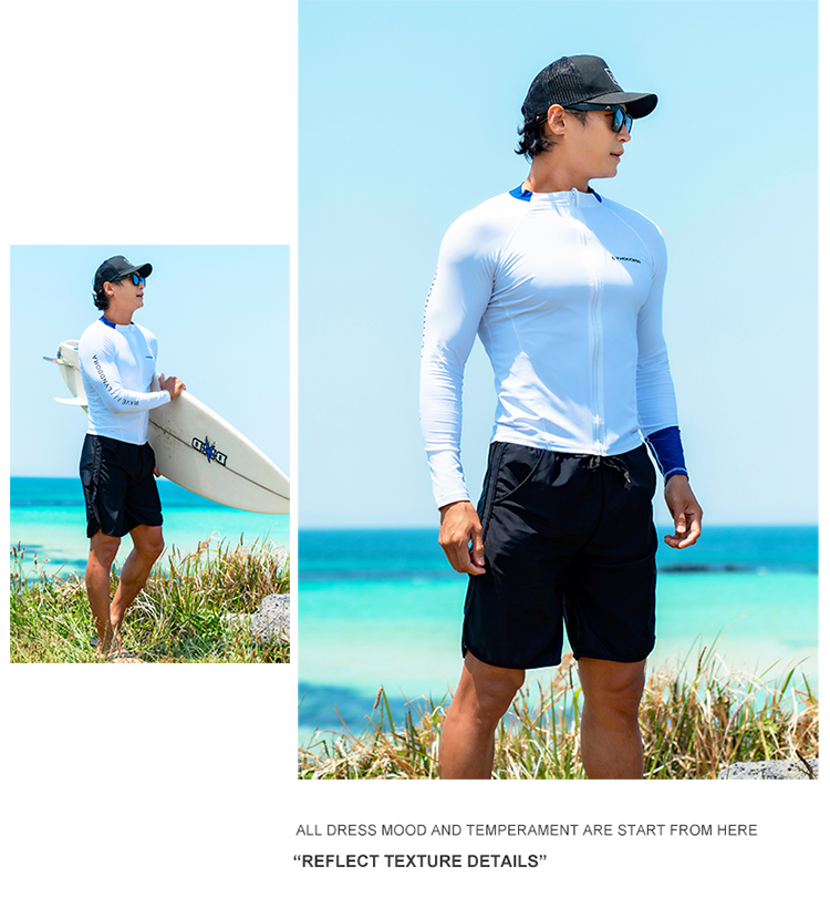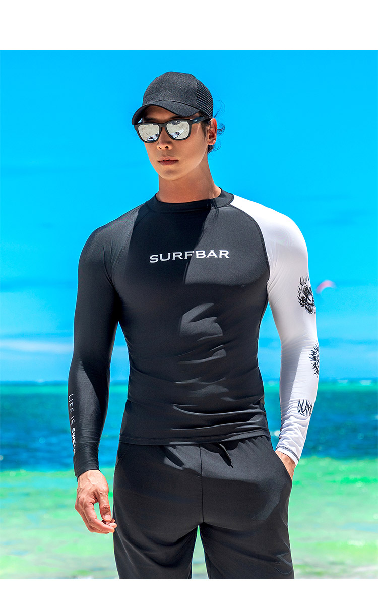 Men's Swimsuit and Swim Trunks Set, Sun Protection, Quick-Drying, Long-Sleeved Top, Large Size, Hot Spring Surfing Suit, Snorkeling Suit, Jellyfish Suit