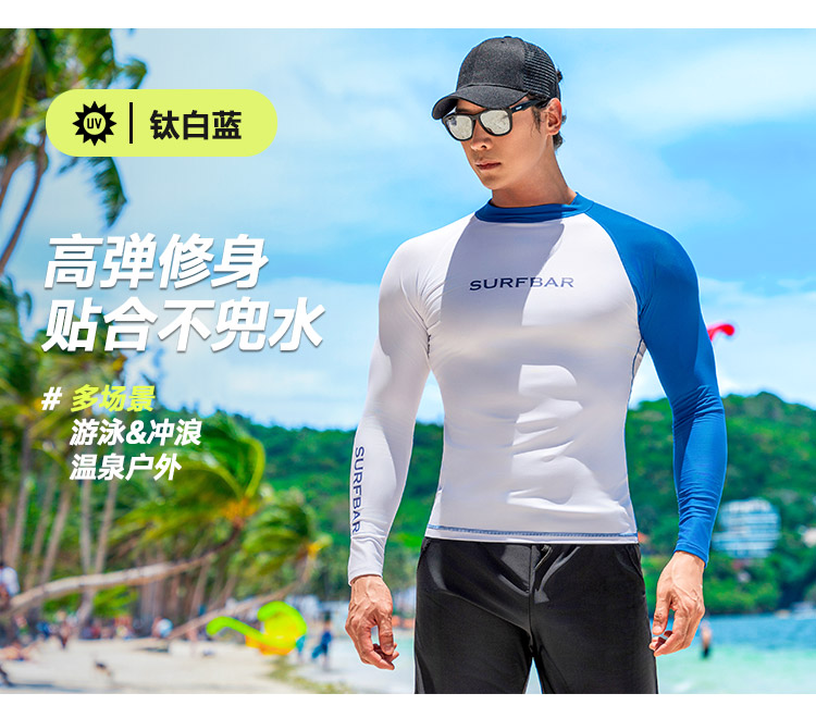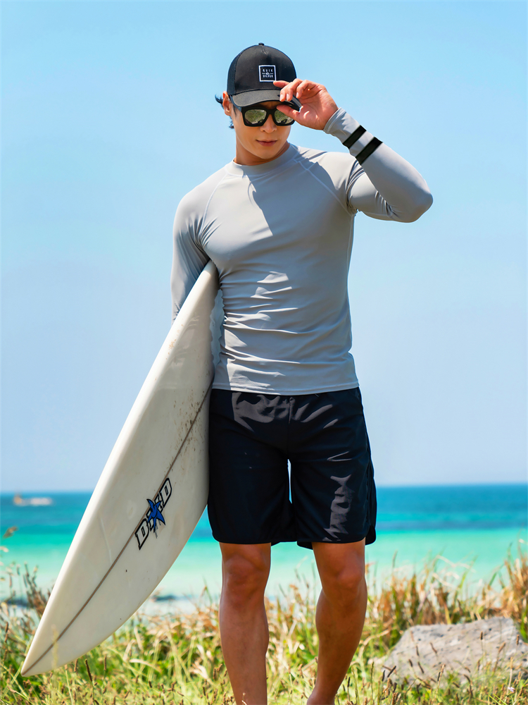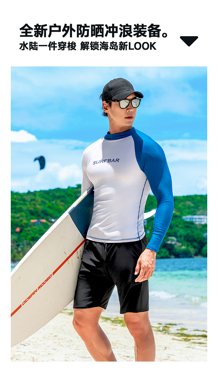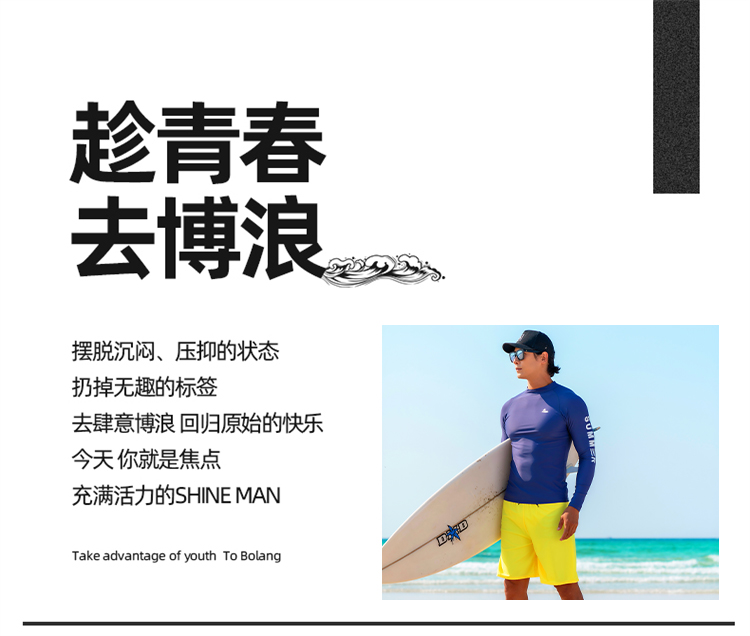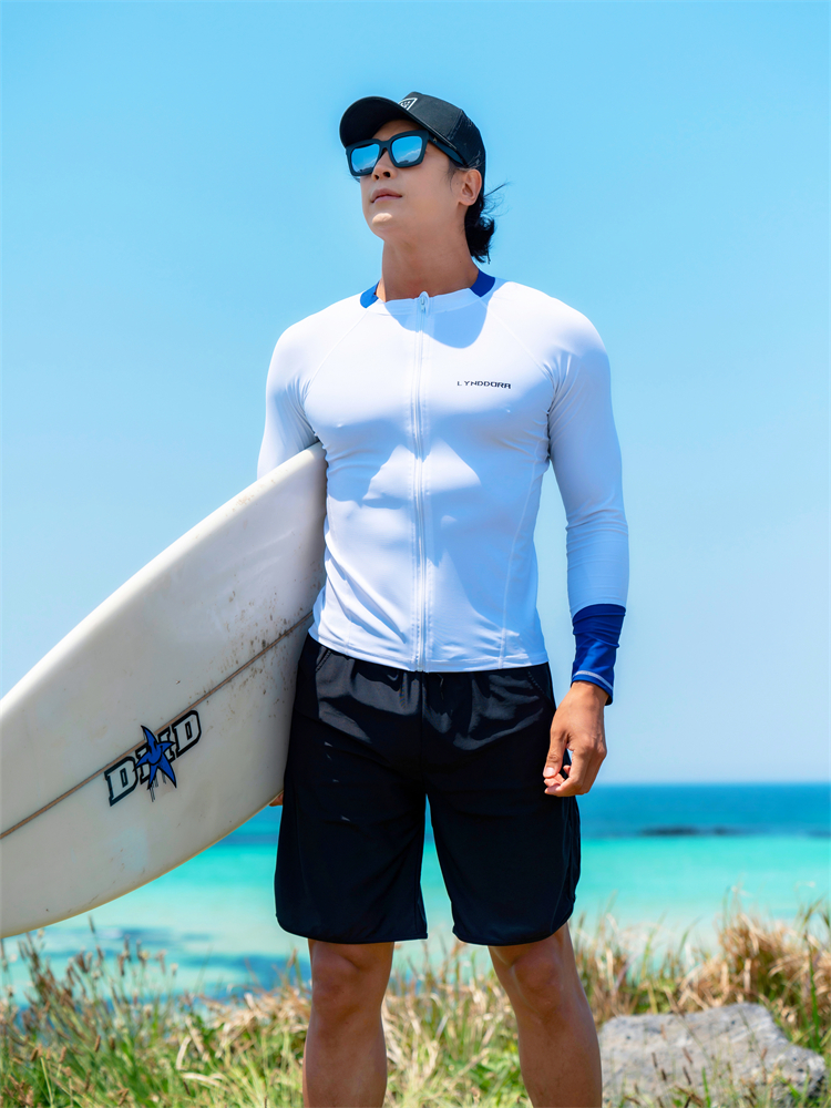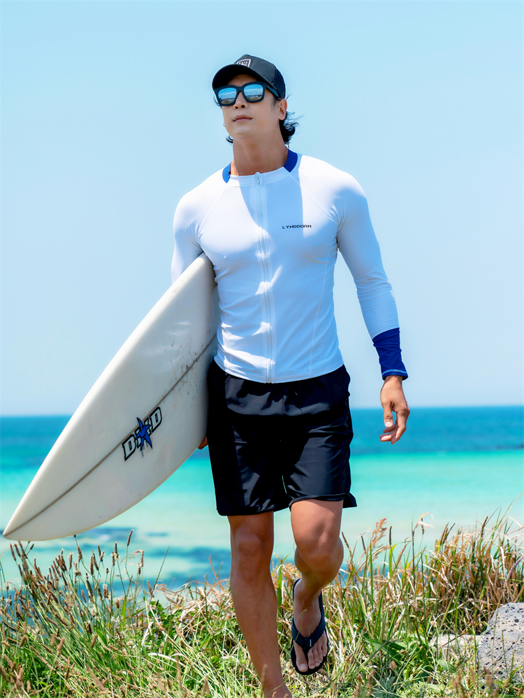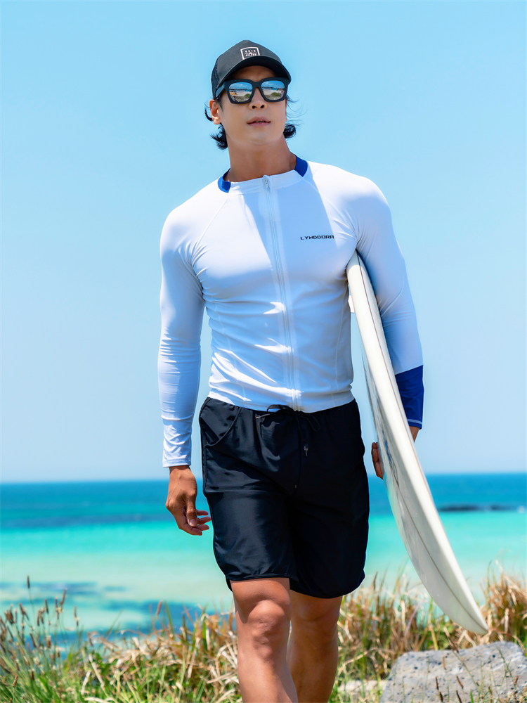 Men's Swimsuit and Swim Trunks Set, Sun Protection, Quick-Drying, Long-Sleeved Top, Large Size, Hot Spring Surfing Suit, Snorkeling Suit, Jellyfish Suit