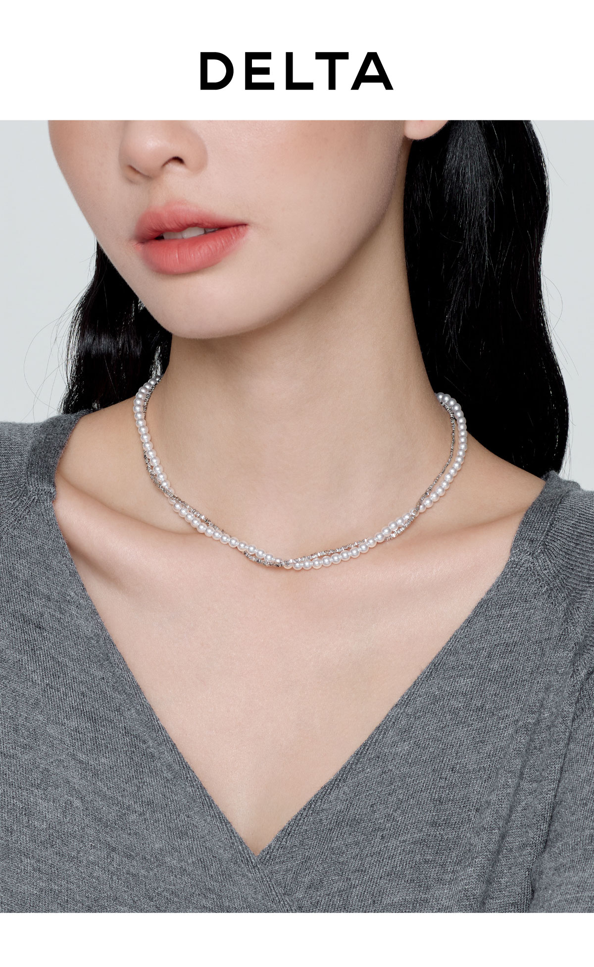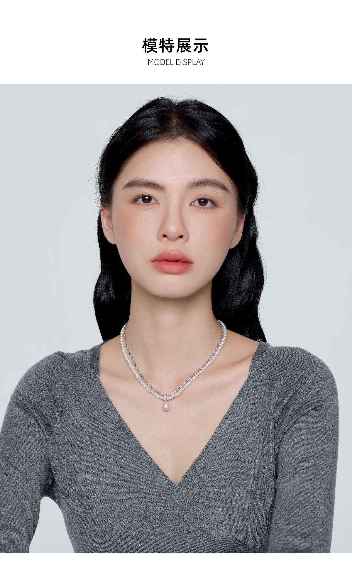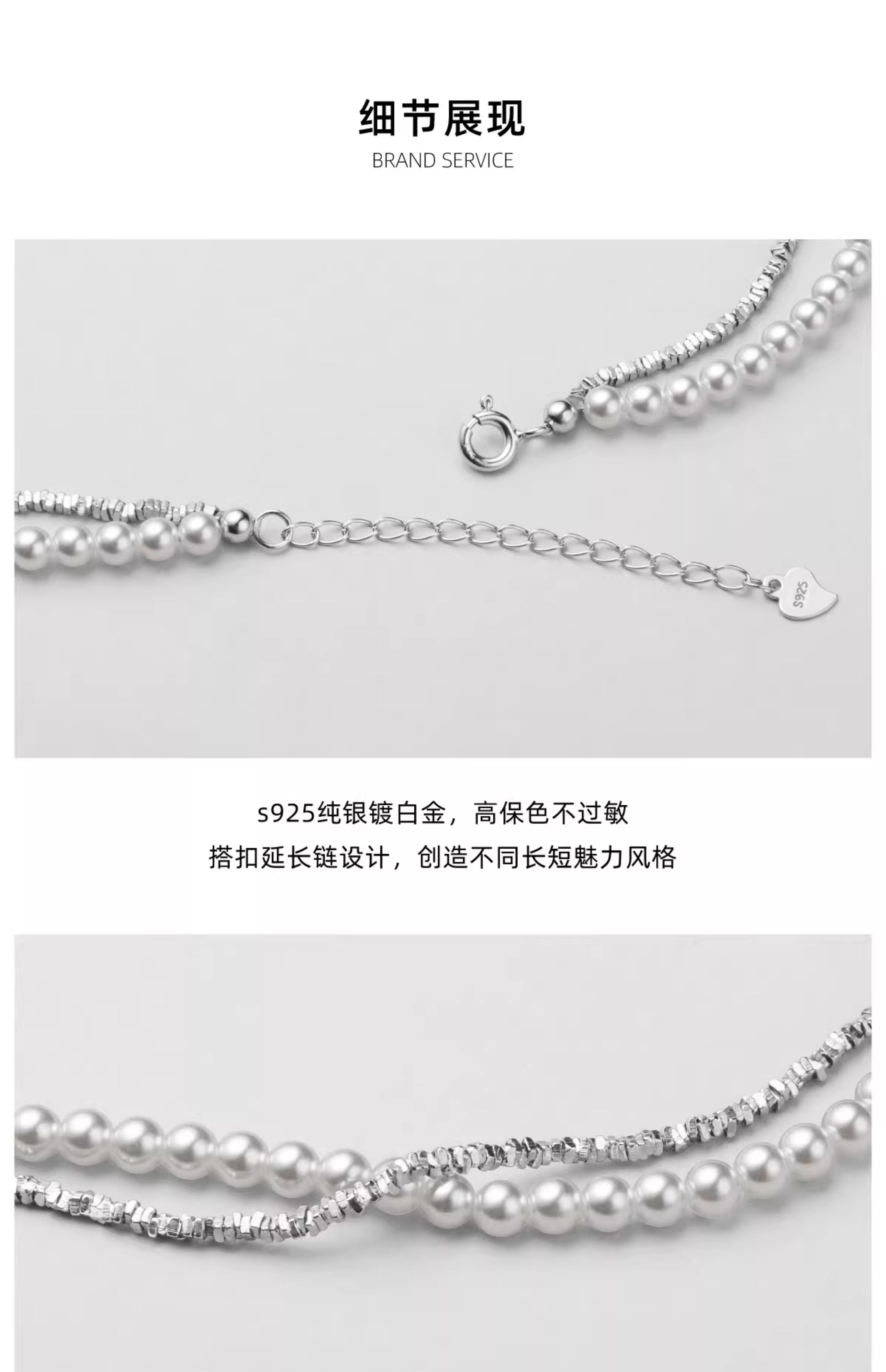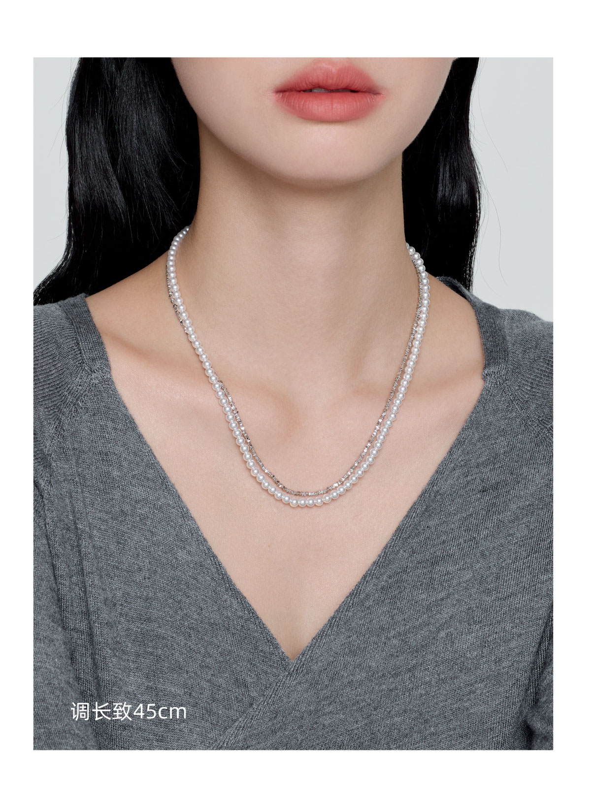 Broken Silver Pearl Double-Layer Necklace S925 Silver Layered High-End Light Luxury Niche Pendant Clavicle Chain Summer Neck Chain