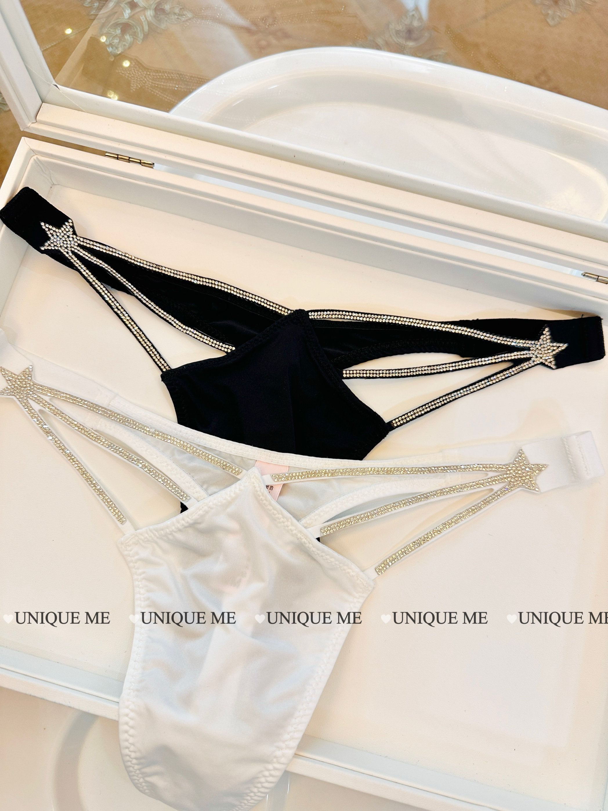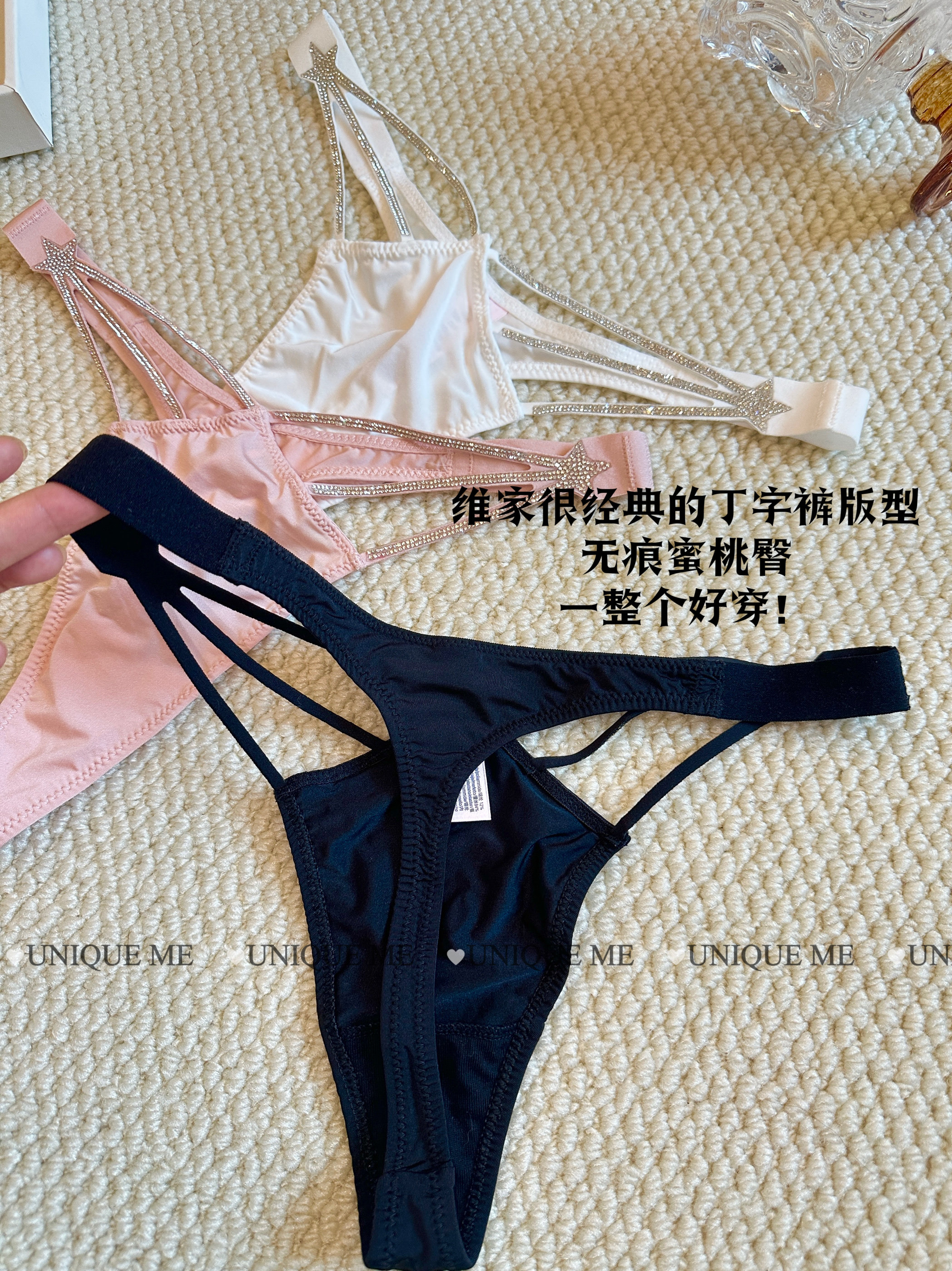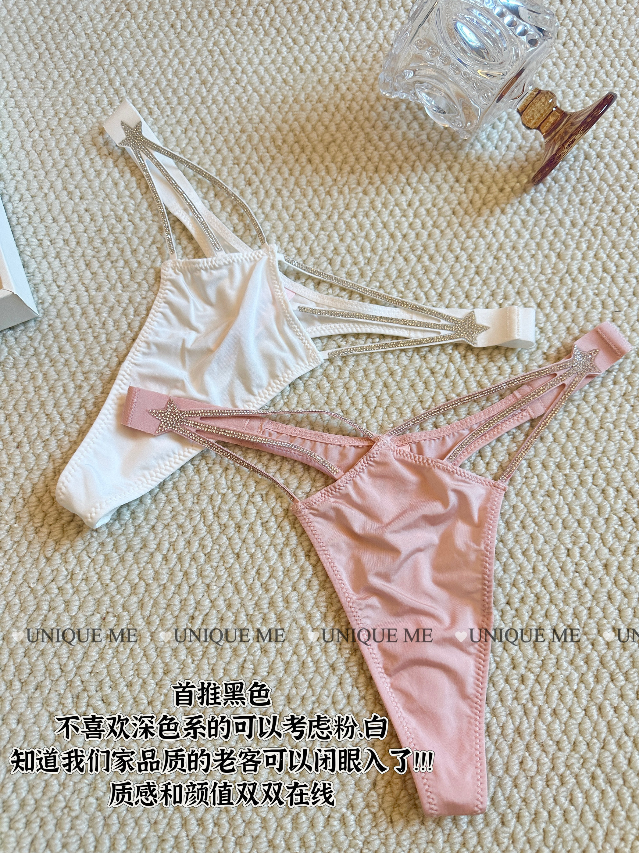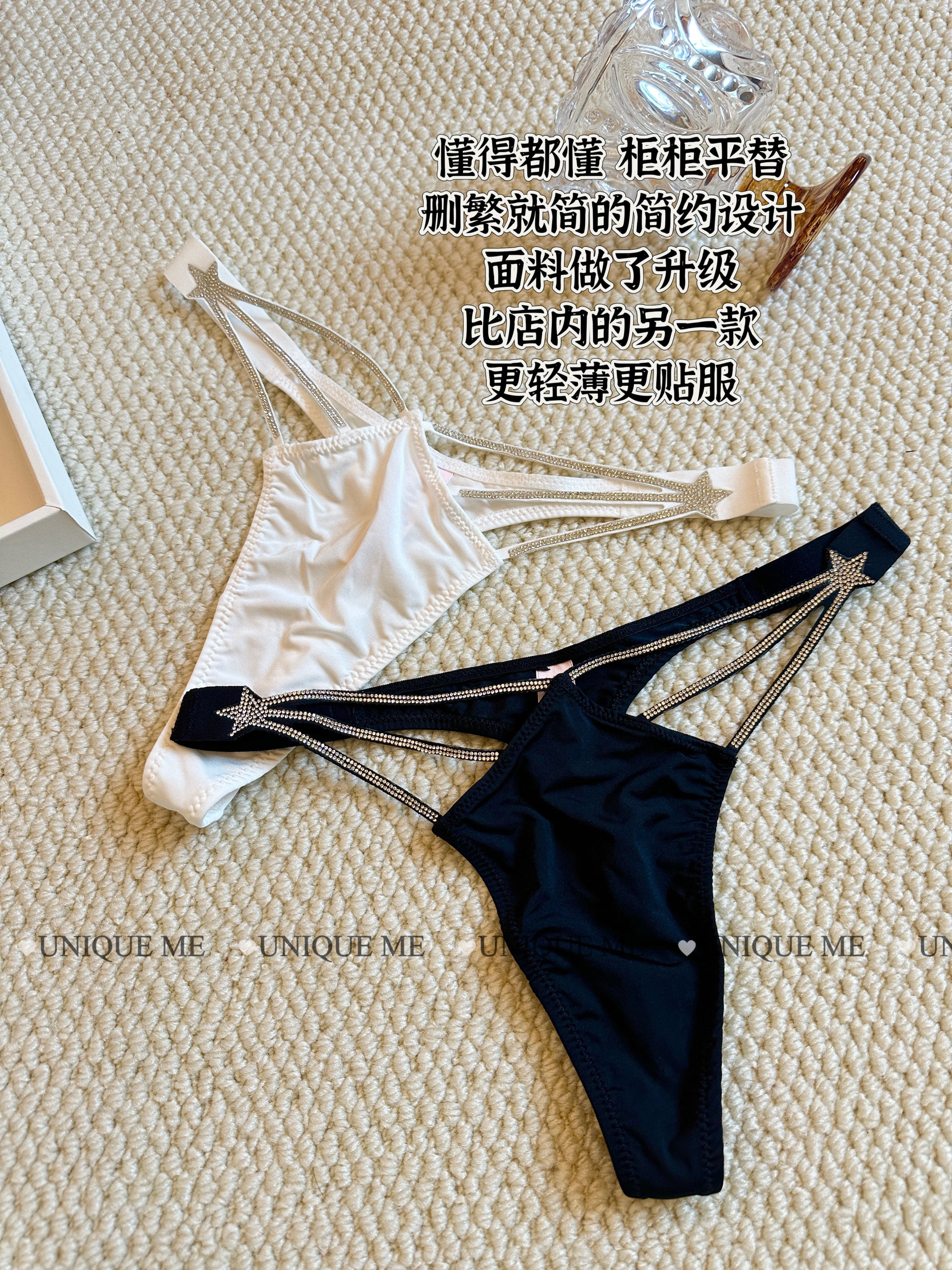 Vijia Affordable Alternative ~ Sparkling Diamond Sexy High-End Light Luxury Hollow Solid Color Women's Thong Summer New Thin Strap Underwear