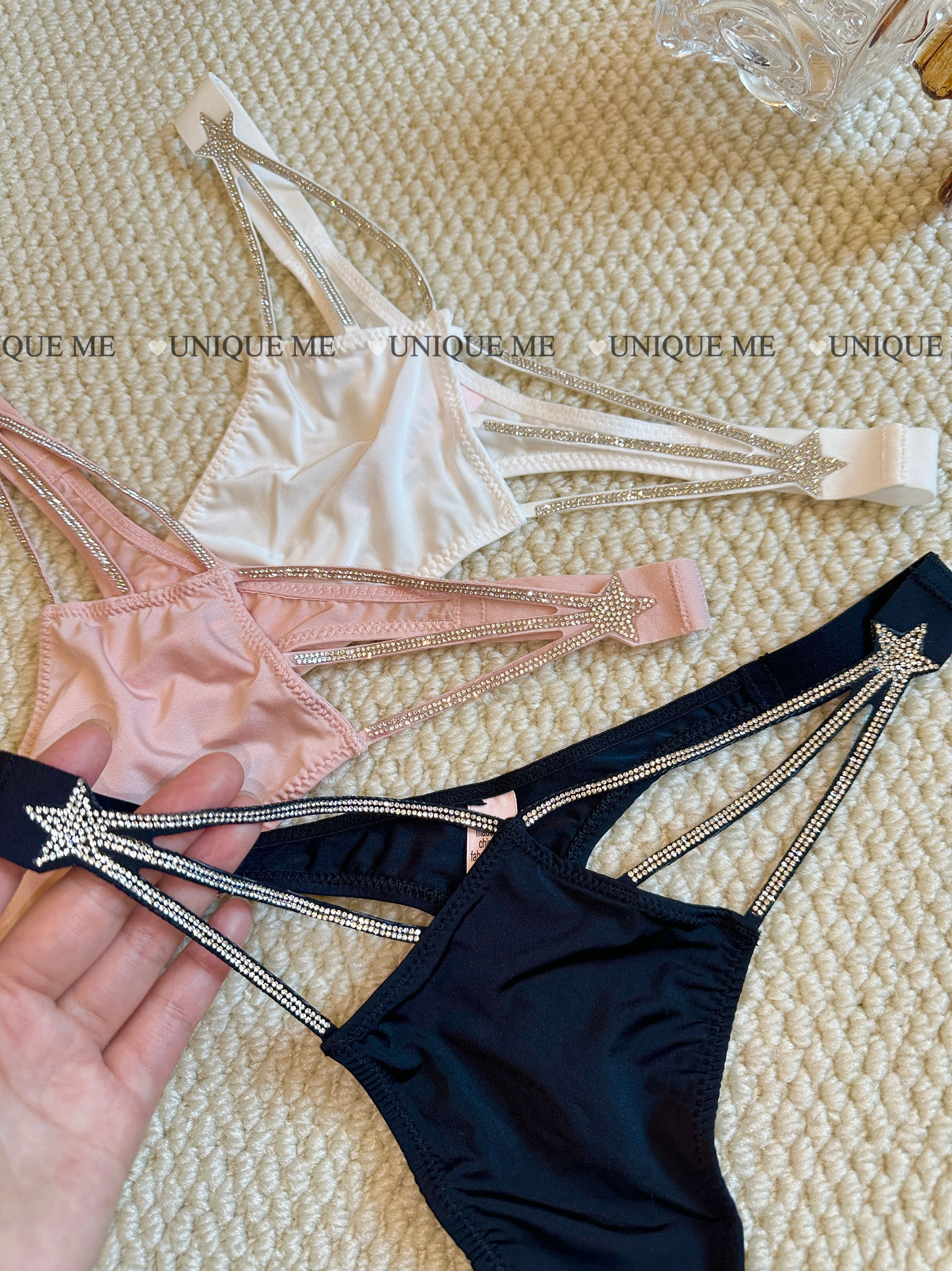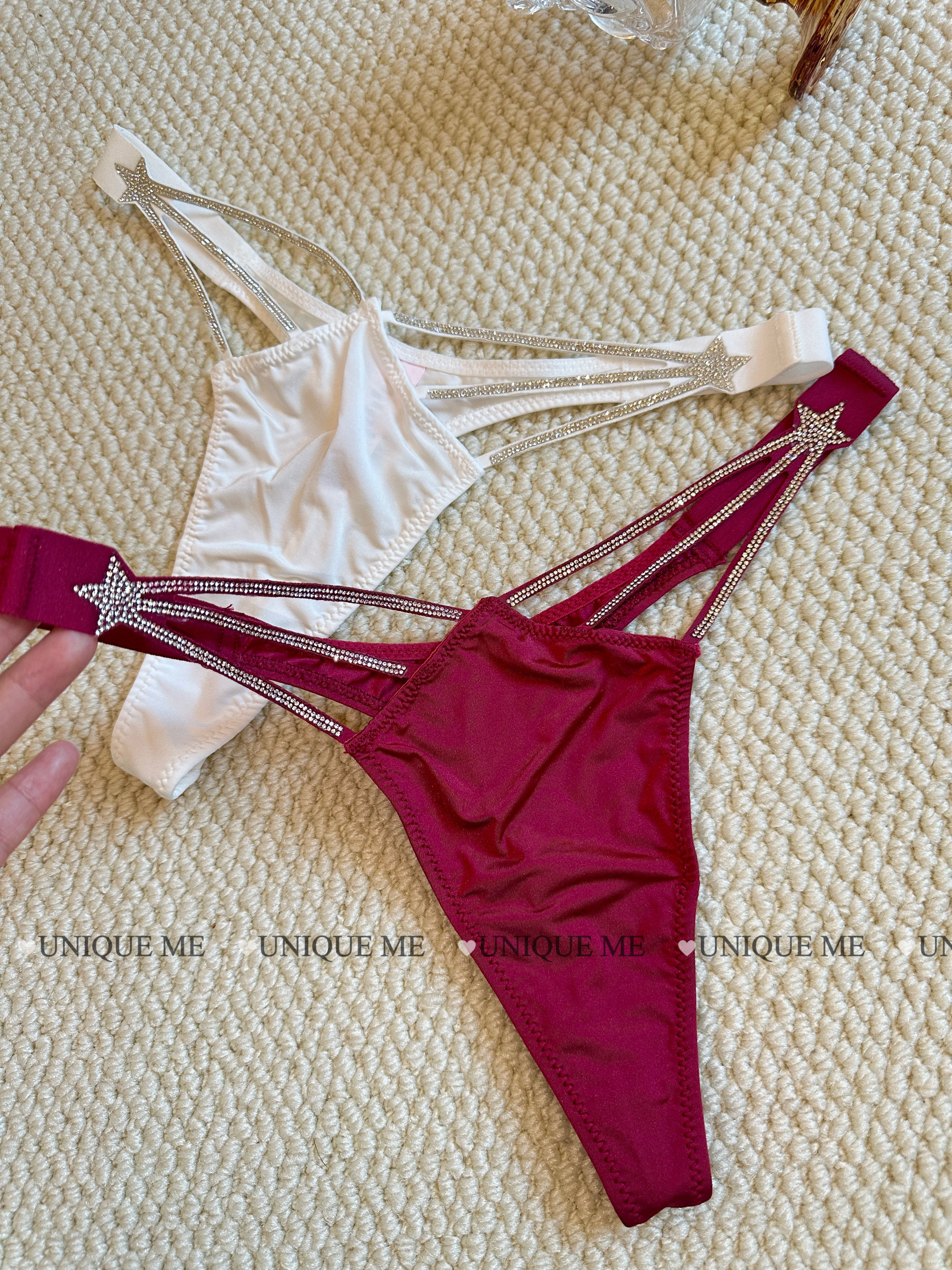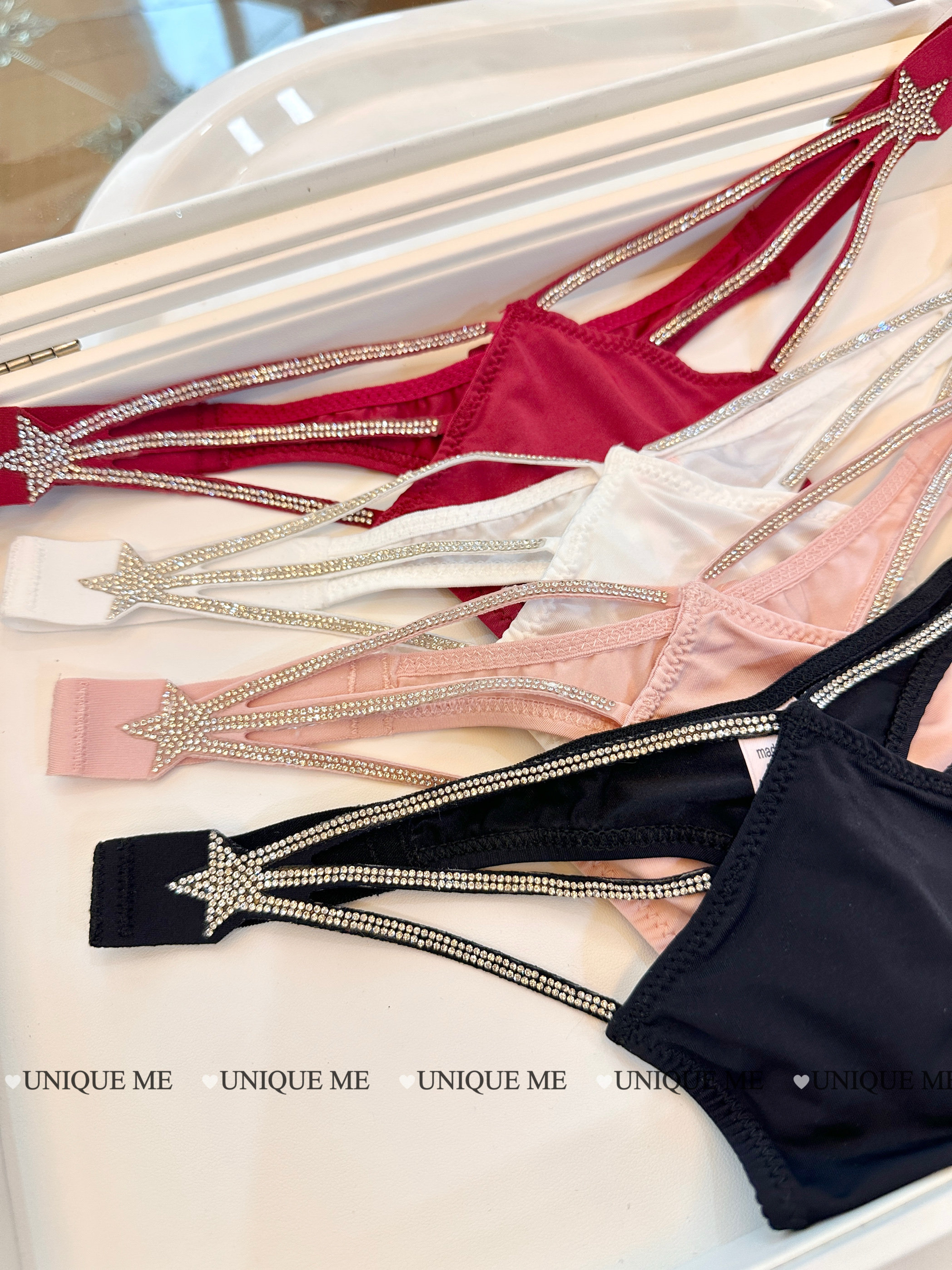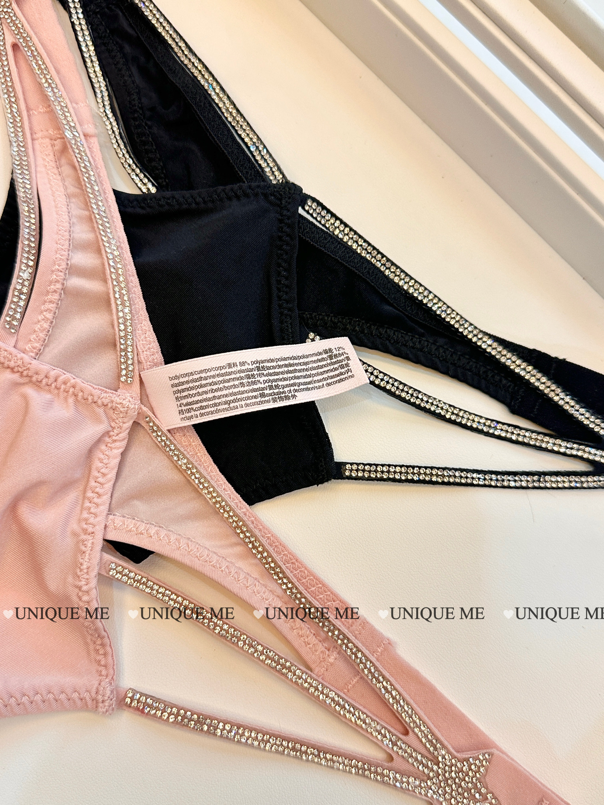 Vijia Affordable Alternative ~ Sparkling Diamond Sexy High-End Light Luxury Hollow Solid Color Women's Thong Summer New Thin Strap Underwear