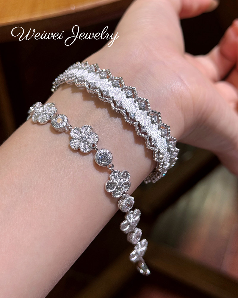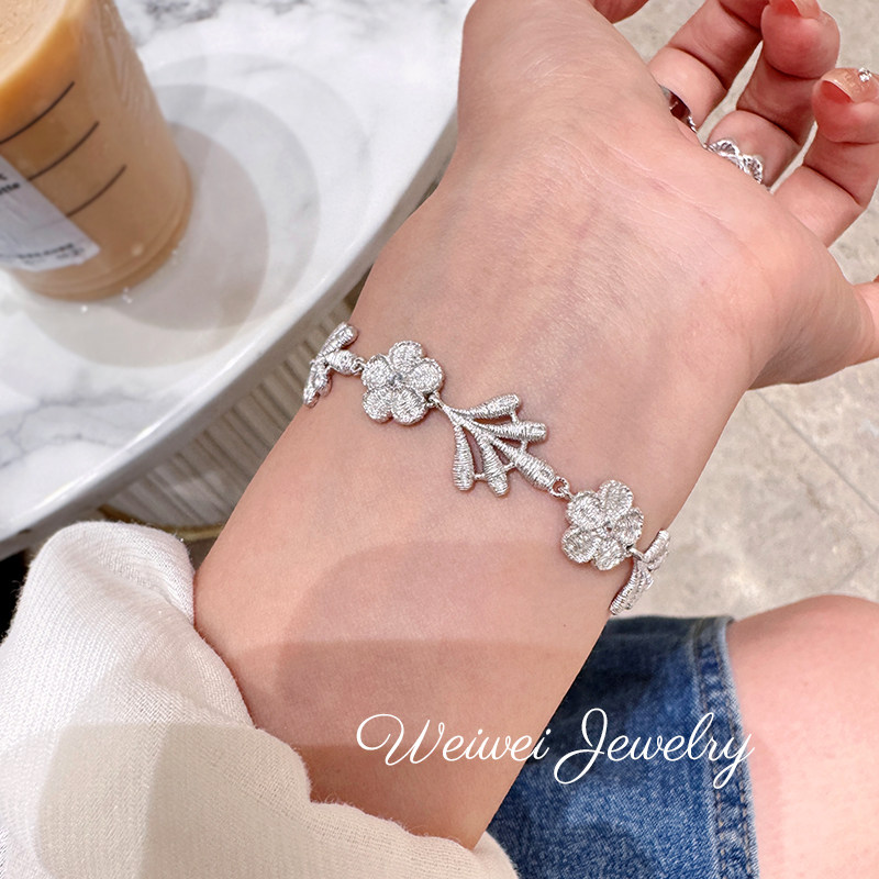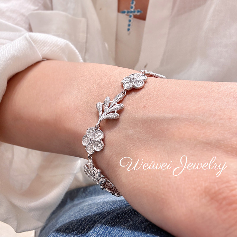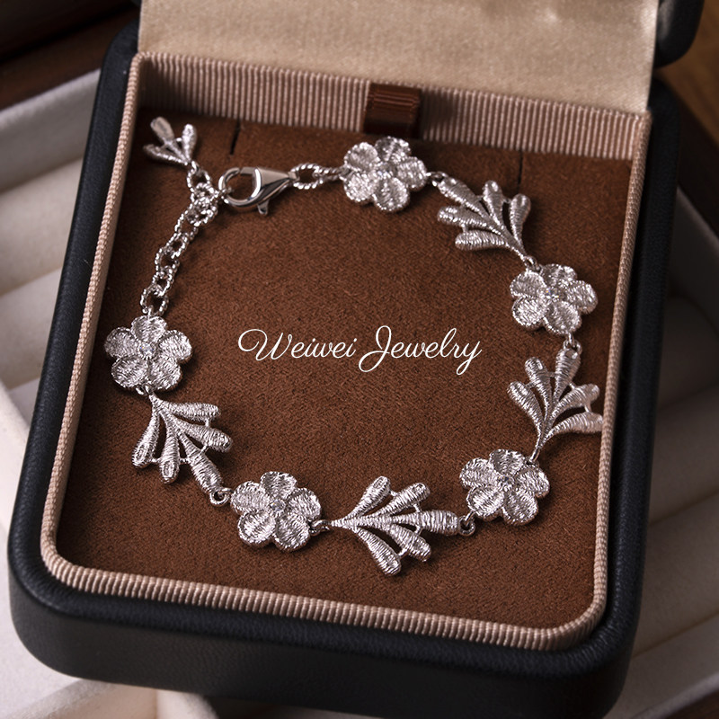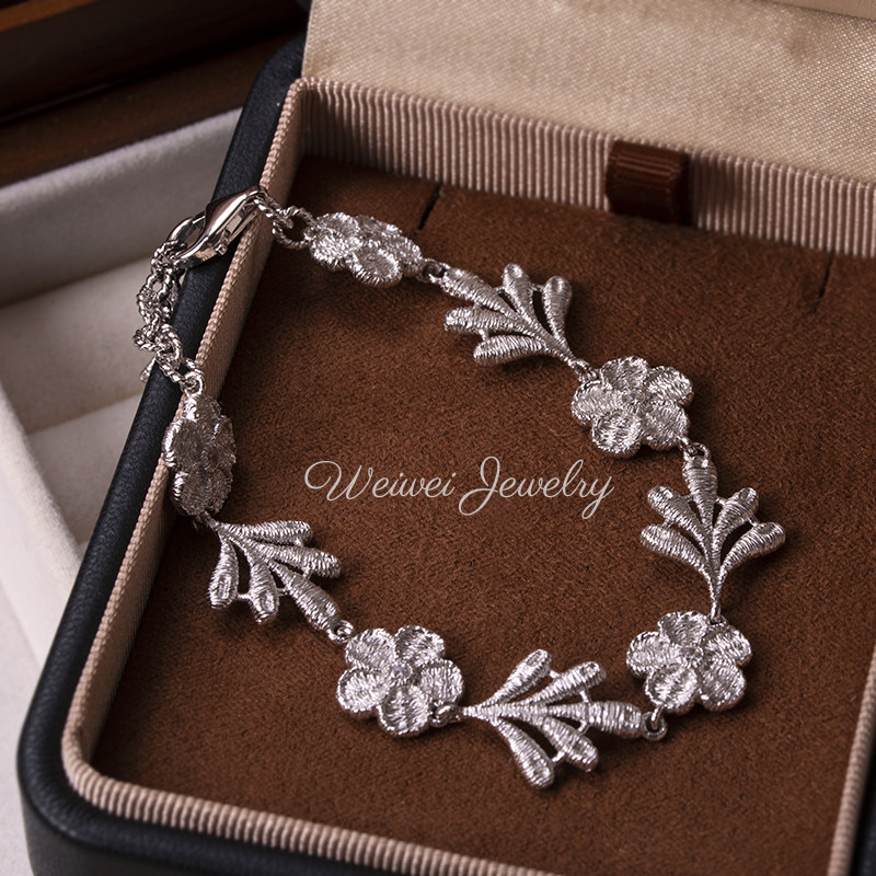 Italian 925 Silver Gold-Plated Hand-Embroidered Texture Flower Plant Flower Cloth Lace Craft Bracelet Earrings