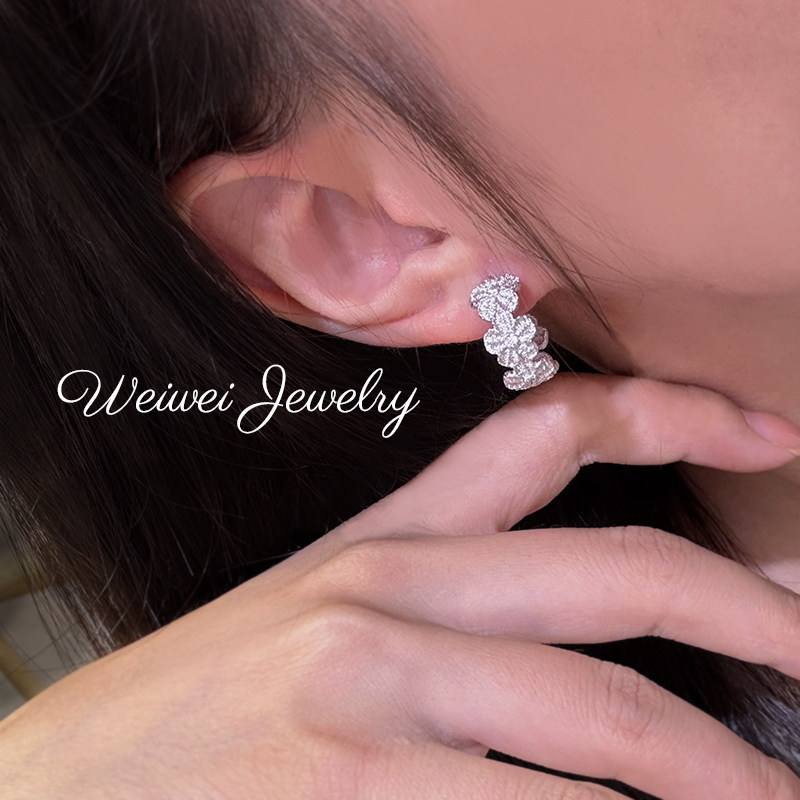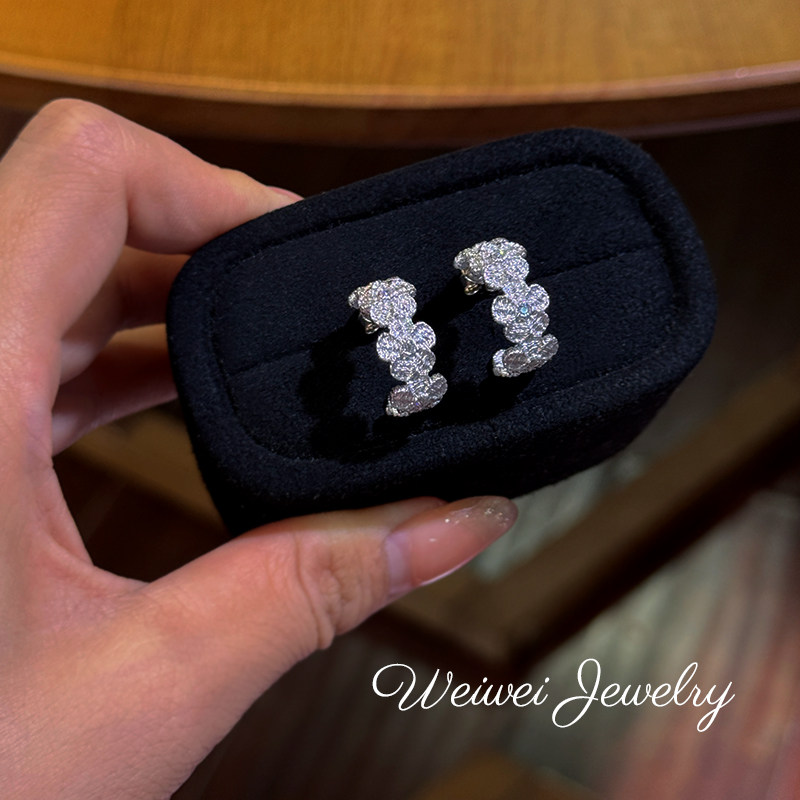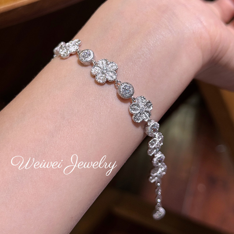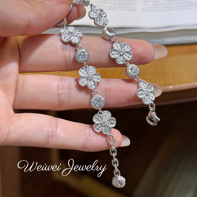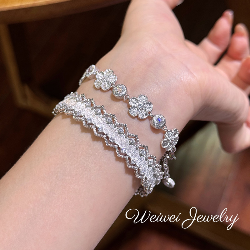 Italian 925 Silver Gold-Plated Hand-Embroidered Texture Flower Plant Flower Cloth Lace Craft Bracelet Earrings