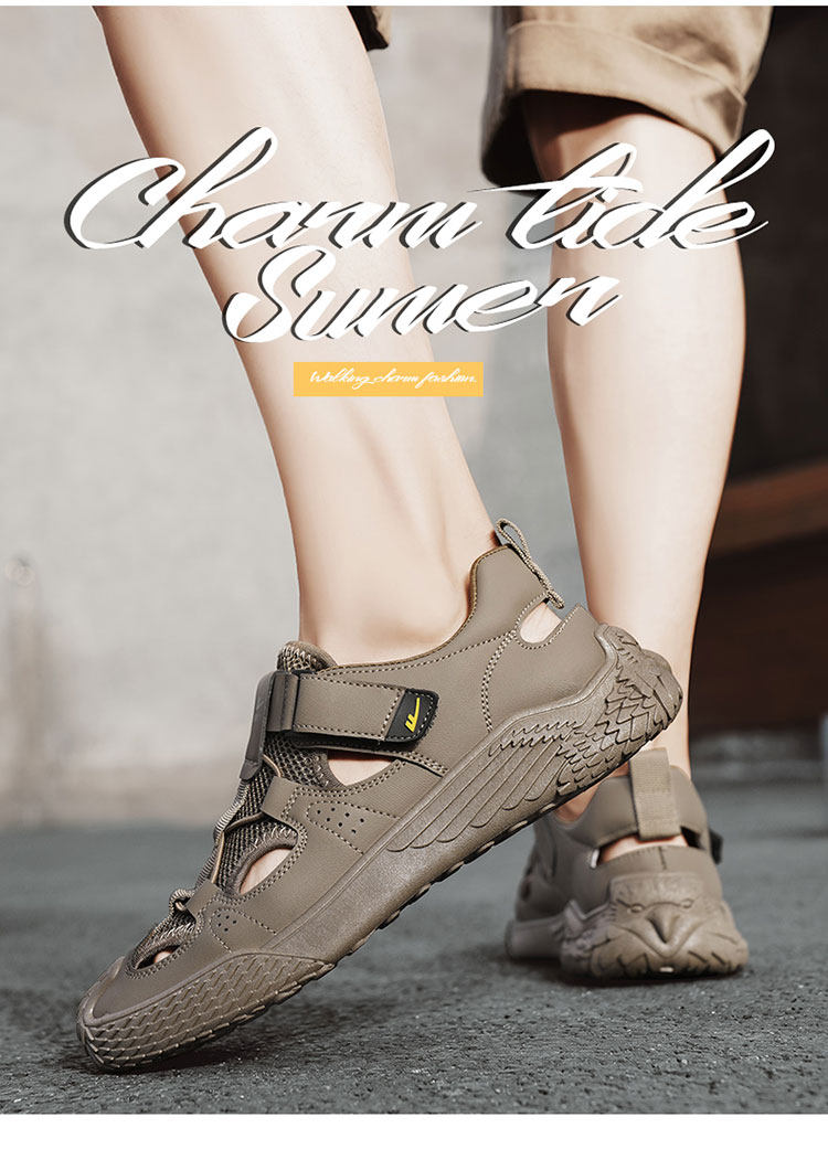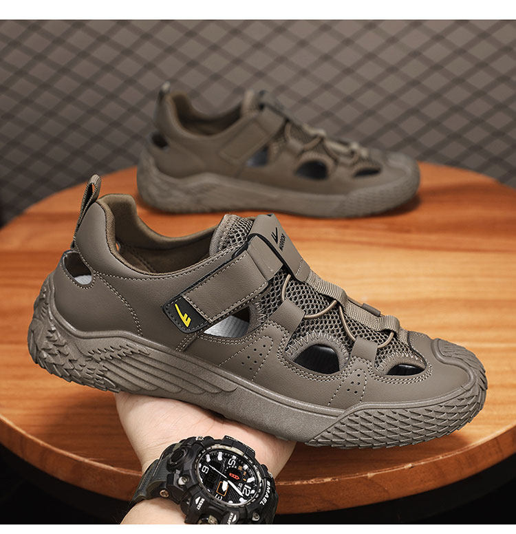 Summer Breathable Mesh Men's Shoes, Non-Open-Toe Sandals, Men's Clogs, Non-Slip, Odor-Resistant Driving Shoes, River-Tracing Shoes