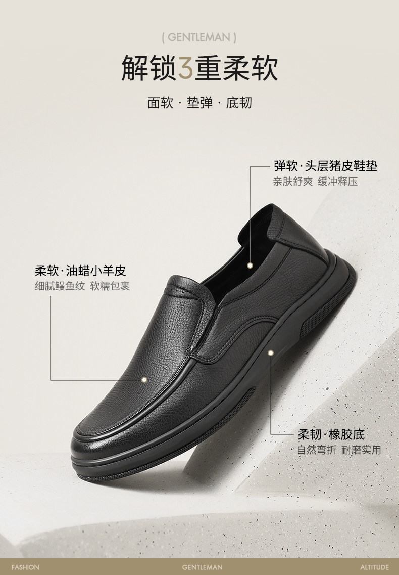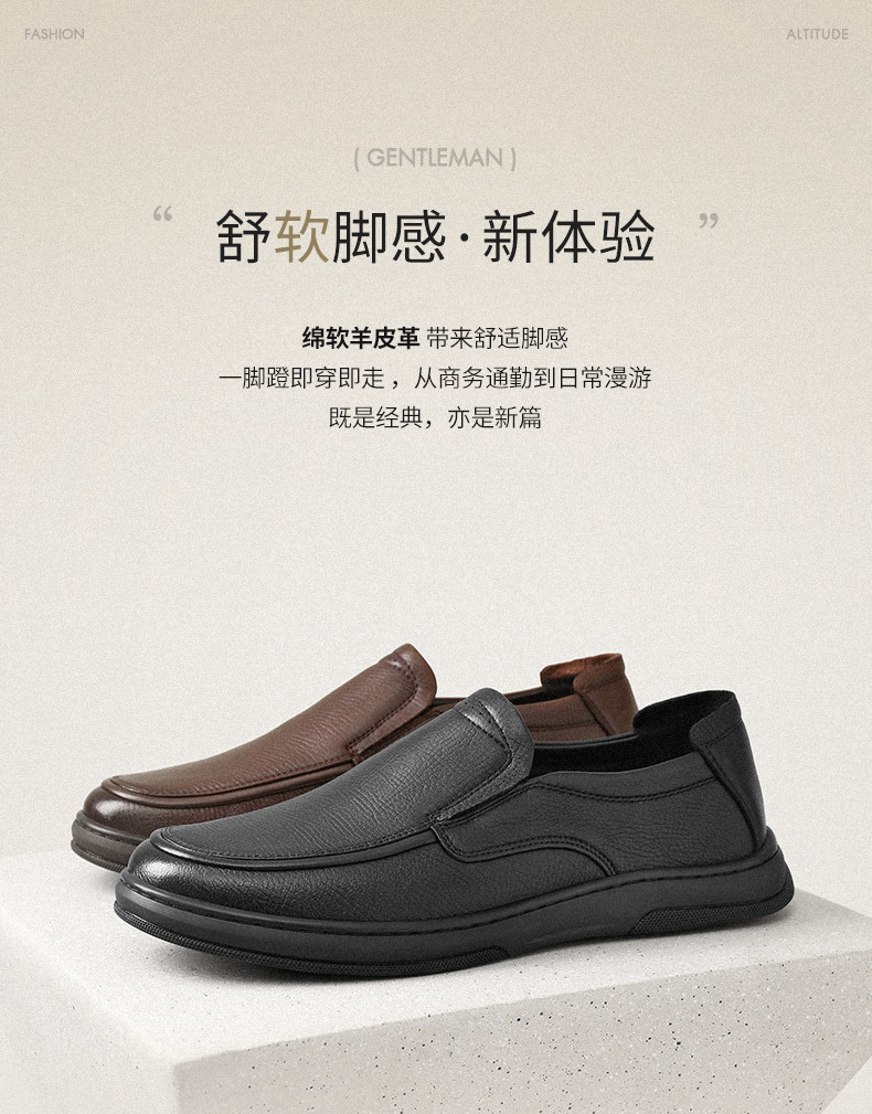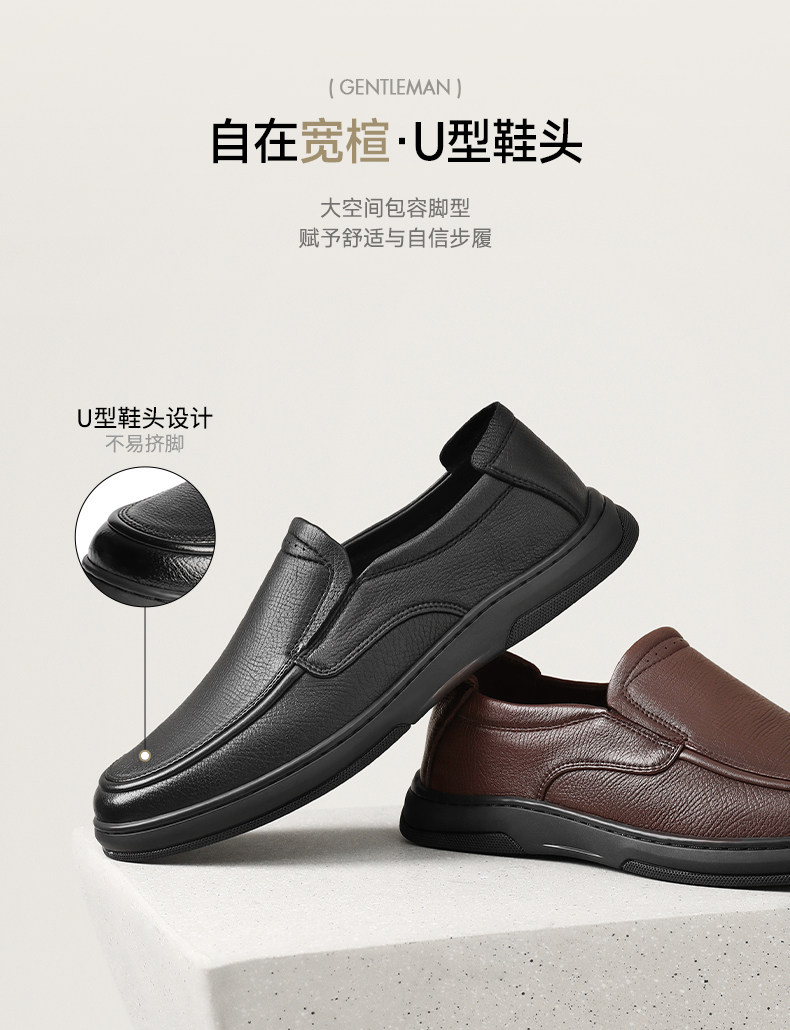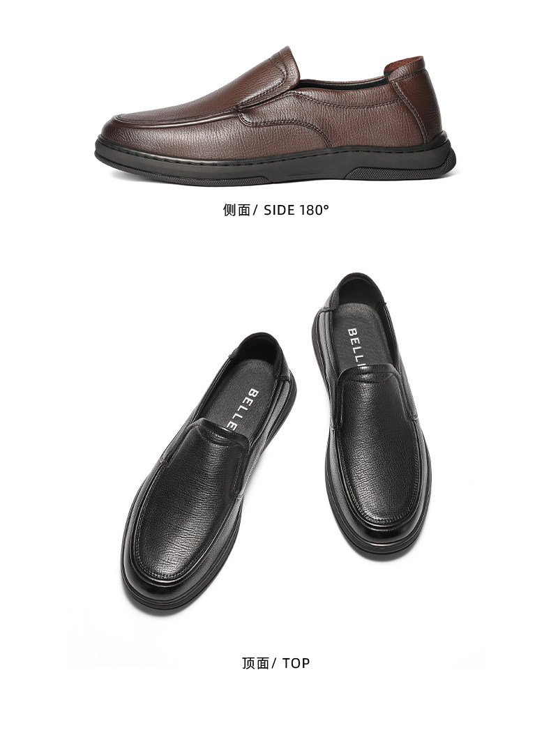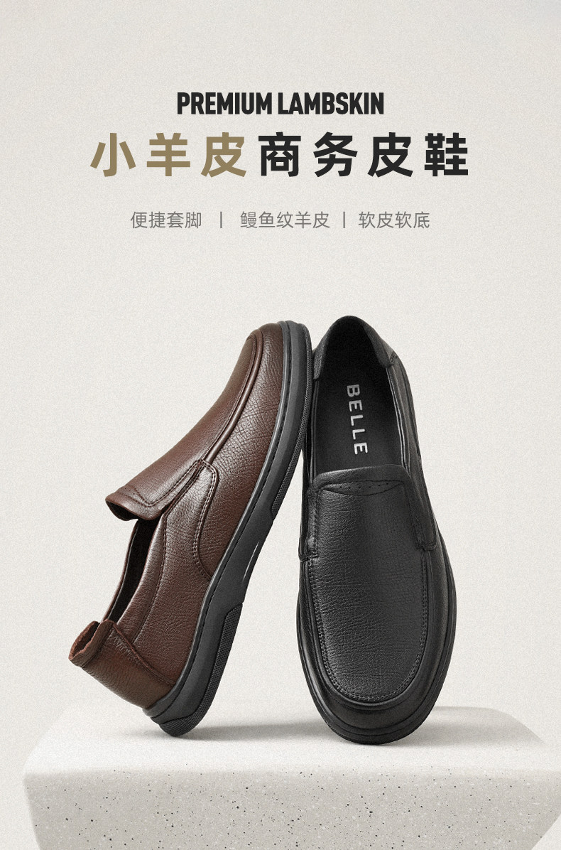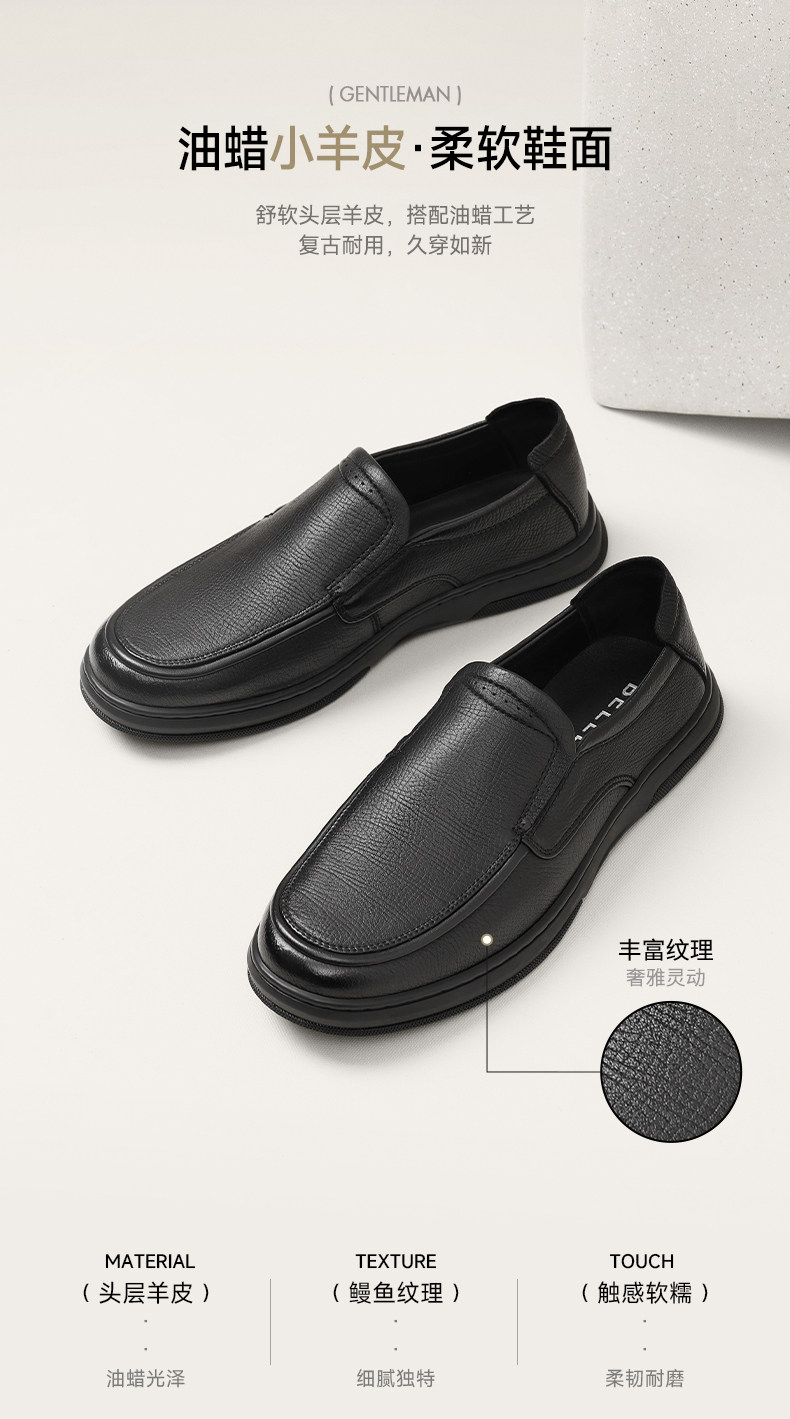 Belle Men's Shoes Perforated Breathable Slip-On Business Casual Sheepskin Shoes Men's Commuting Driving Dad Shoes 8Tu01C