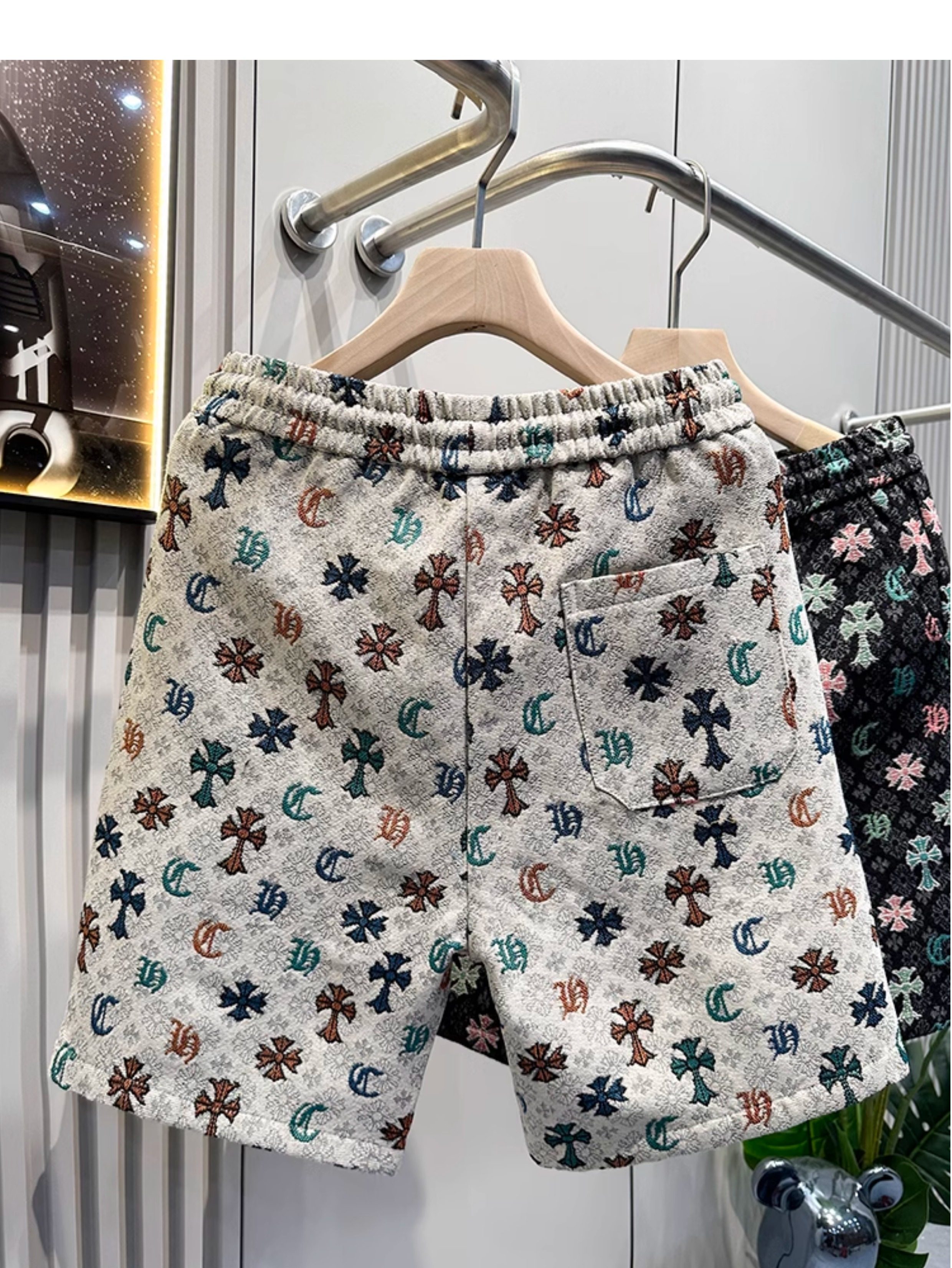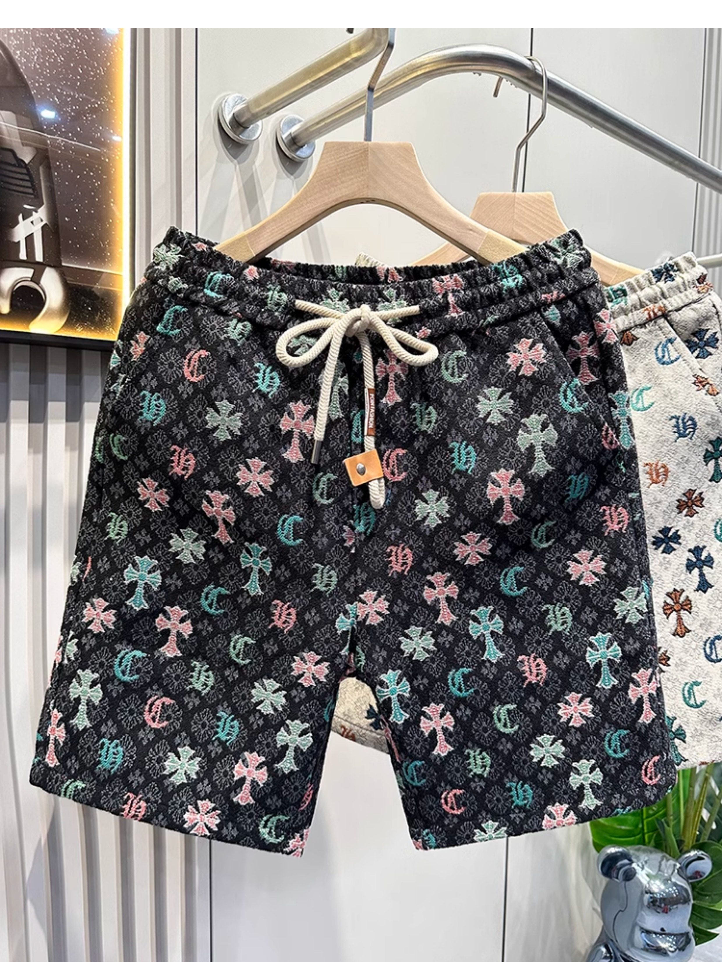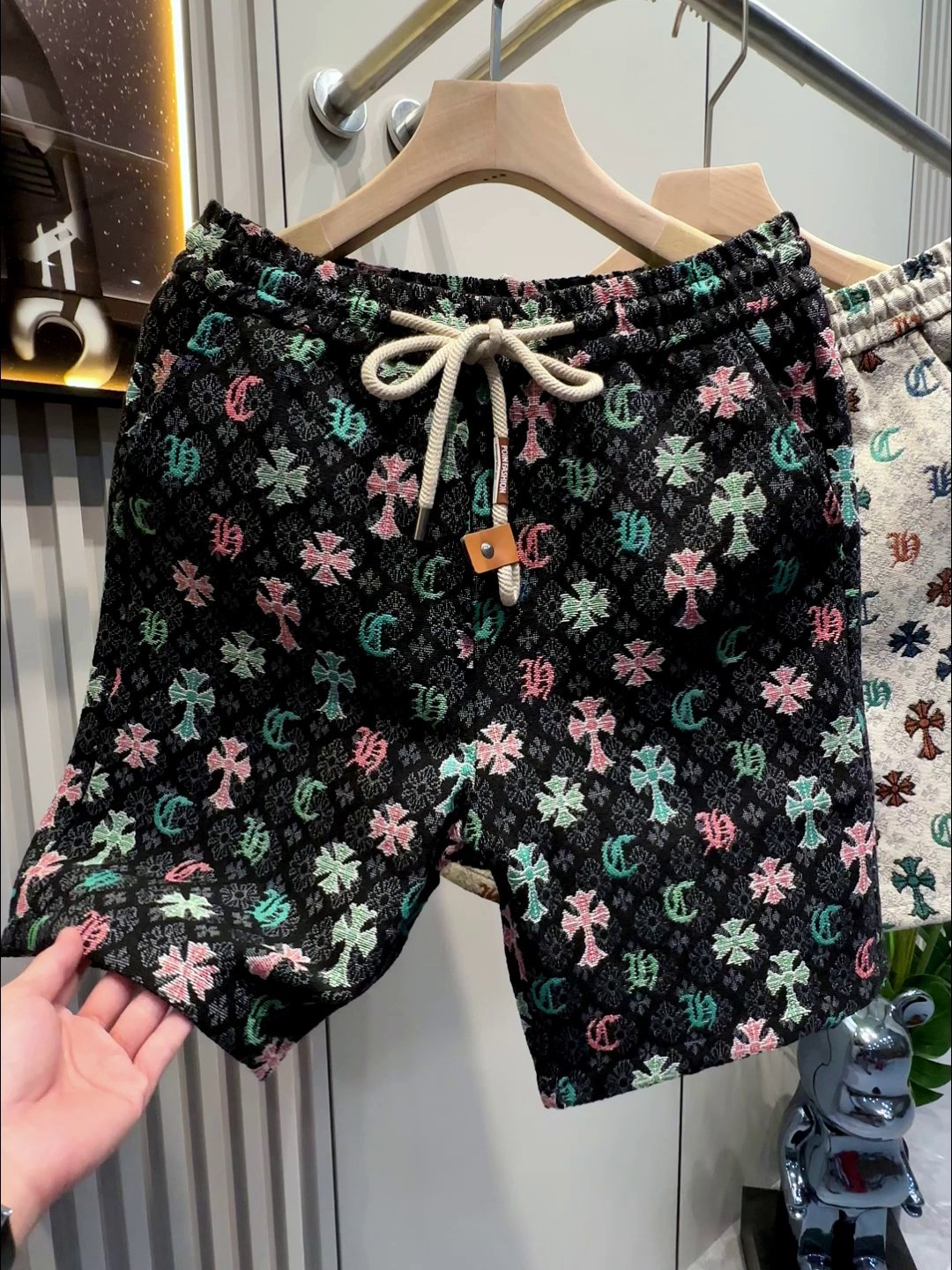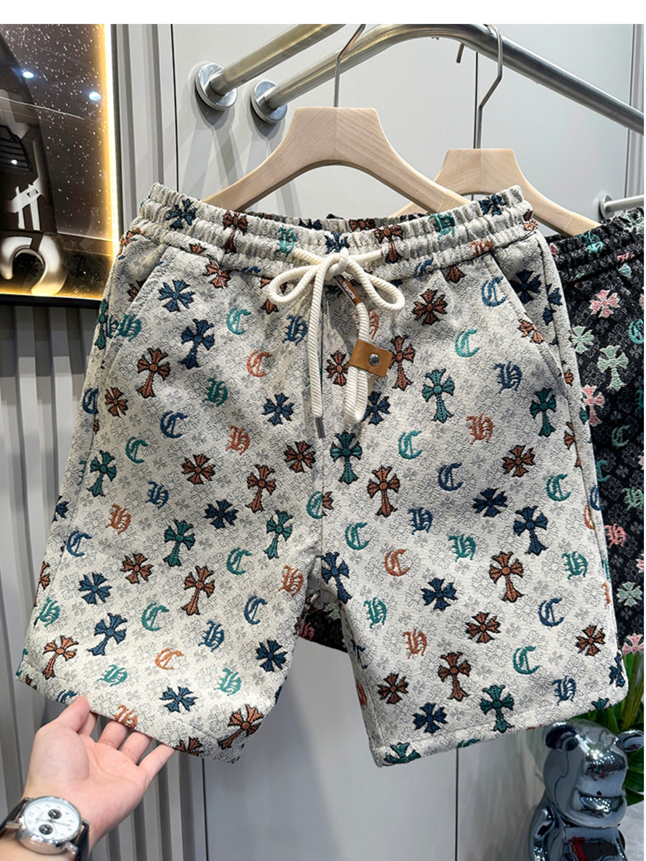 2025 Trendy Straight-Leg Men's Shorts with Elastic Waist, Five-Point Printed Casual Pants, Beach Shorts, European Style Mid-Length Pants for Young Men