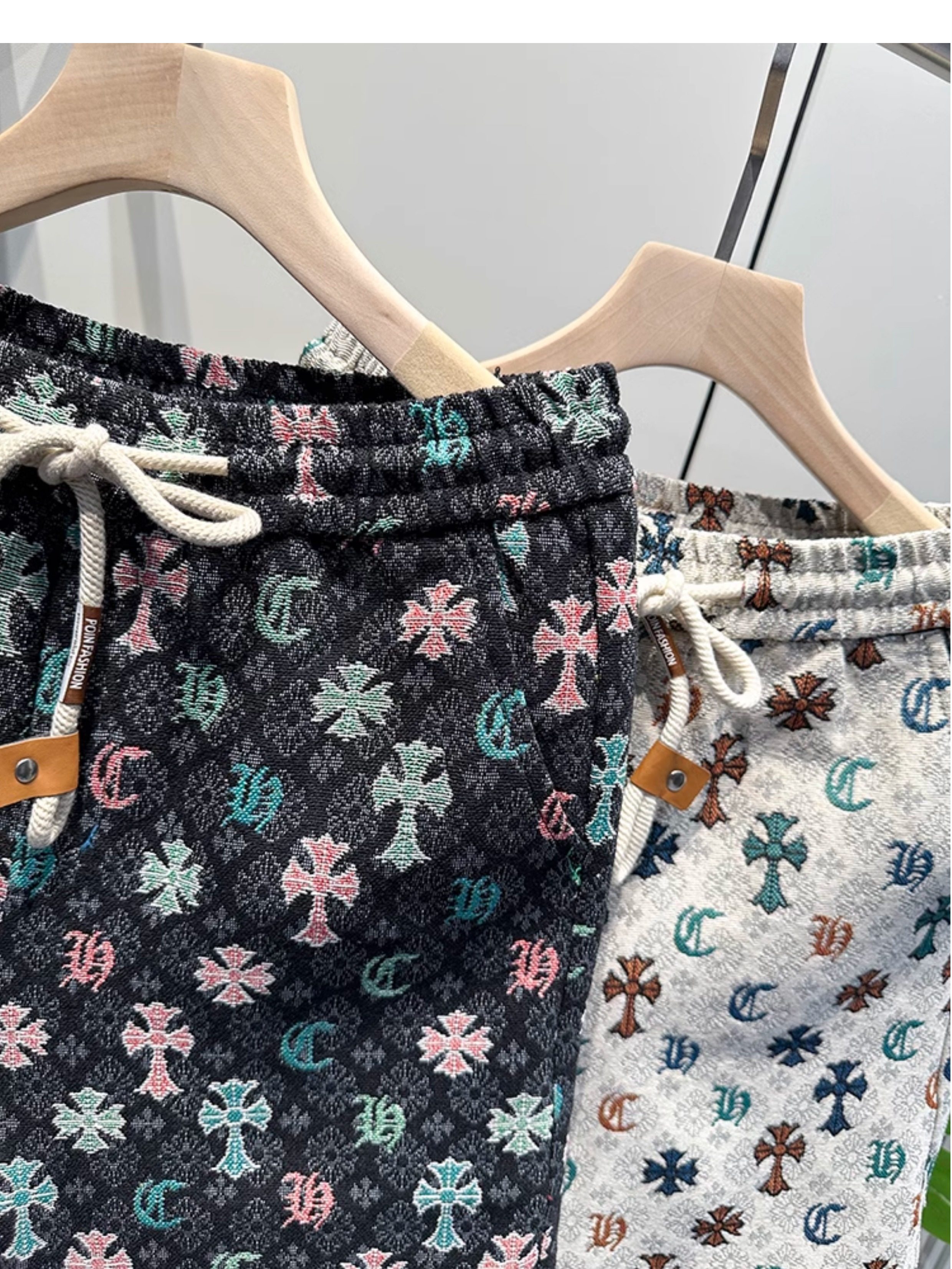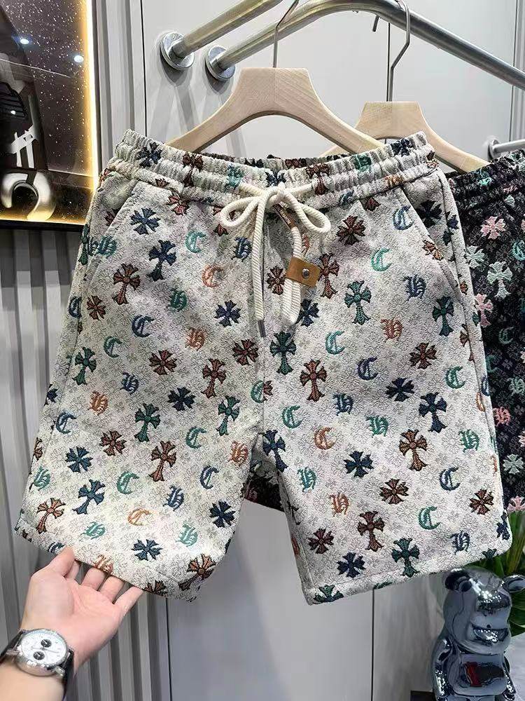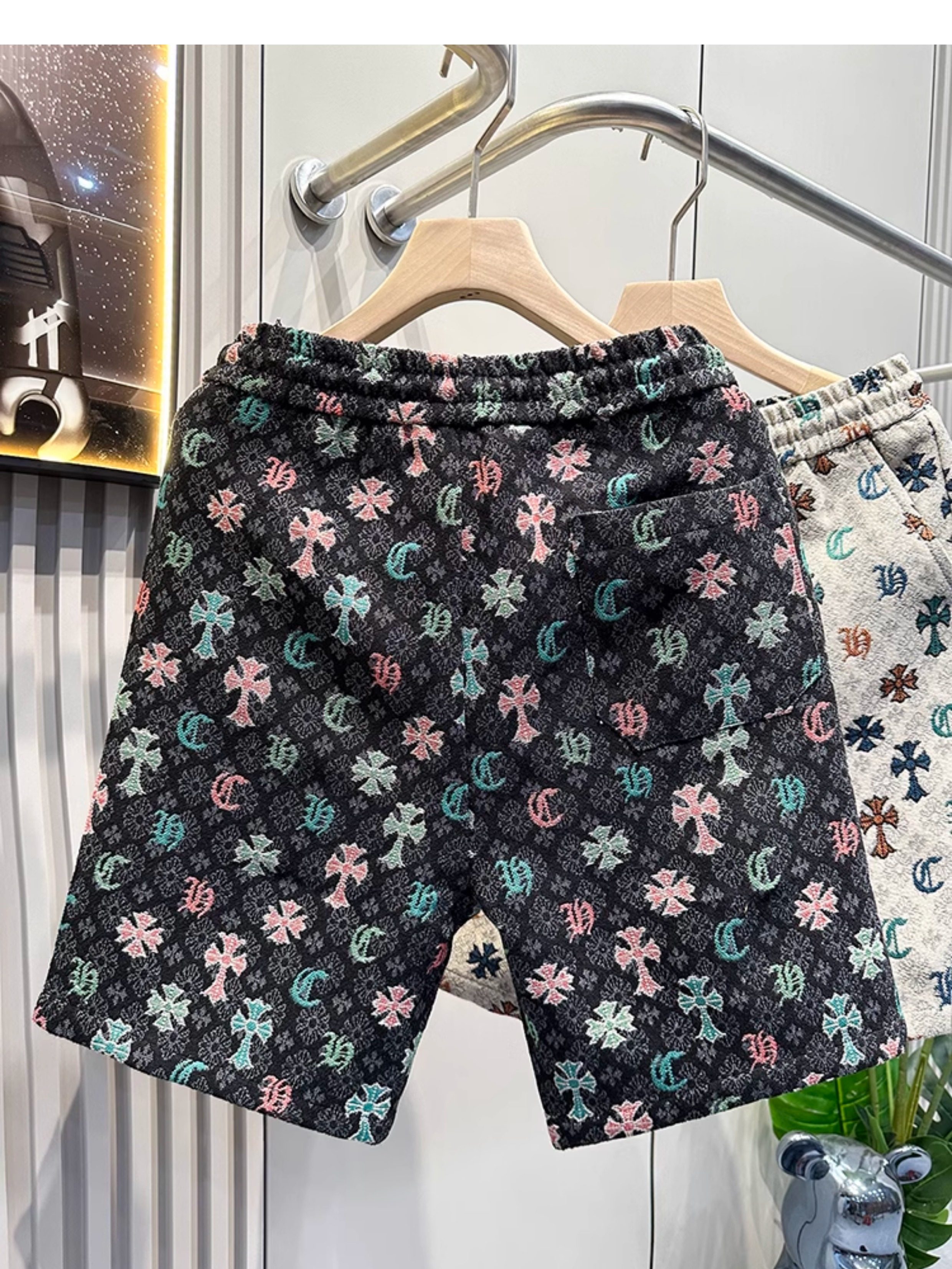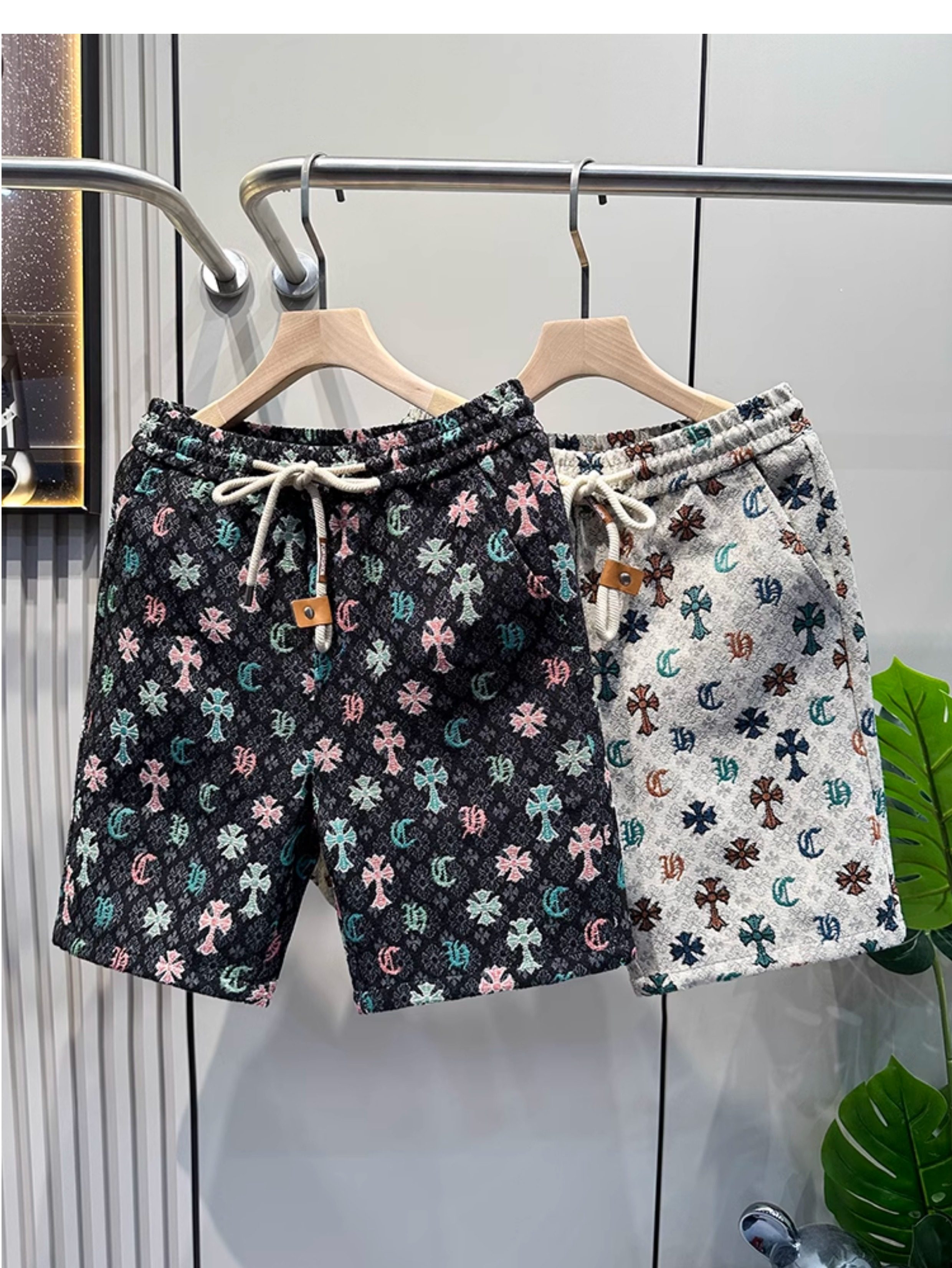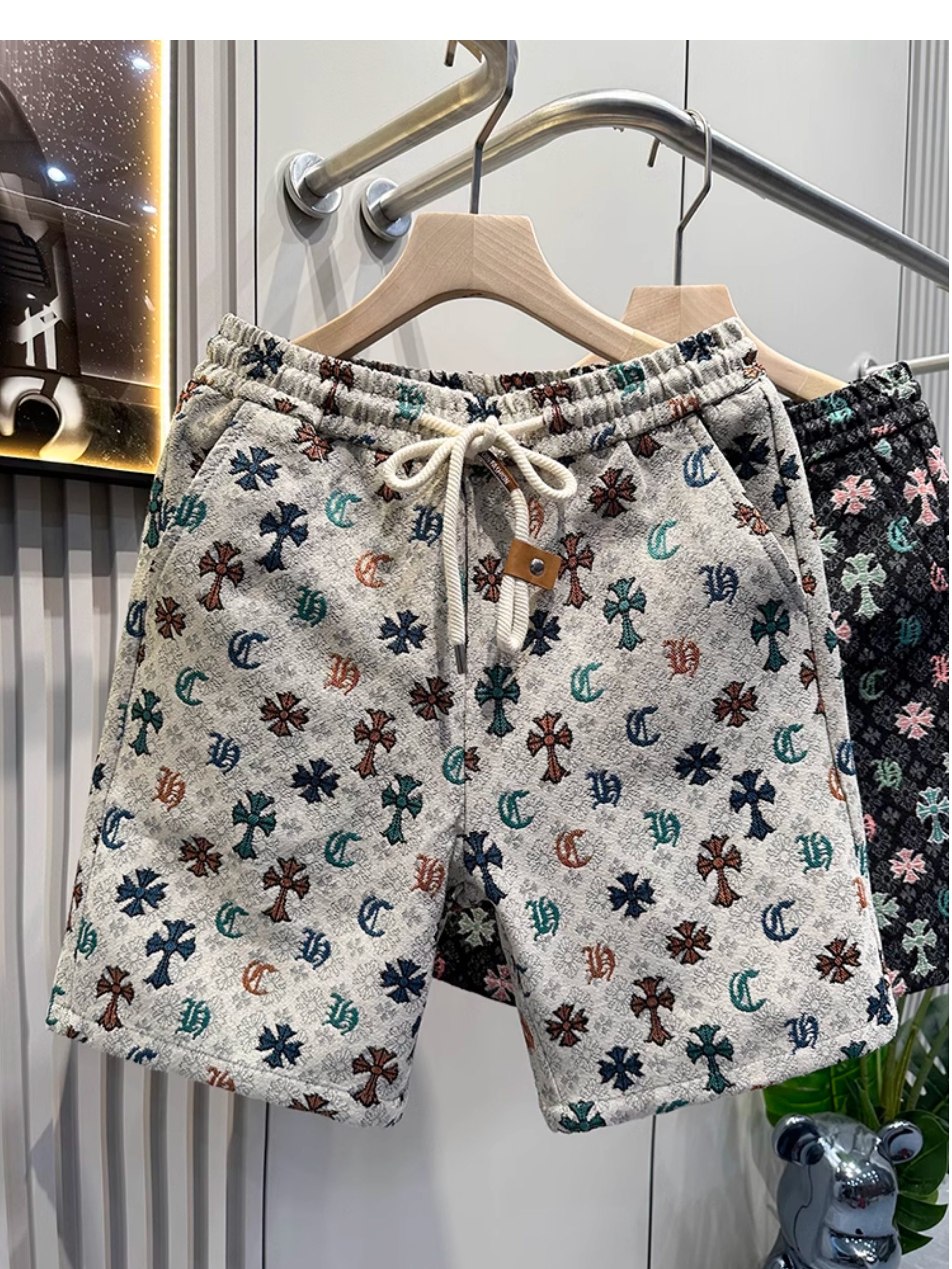 2025 Trendy Straight-Leg Men's Shorts with Elastic Waist, Five-Point Printed Casual Pants, Beach Shorts, European Style Mid-Length Pants for Young Men