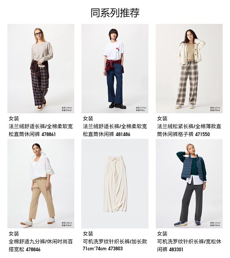 UNIQLO Women's Clothing Flannel Plaid pants/Cotton Soft Loose Straight-leg Casual Pants New arrival 478849