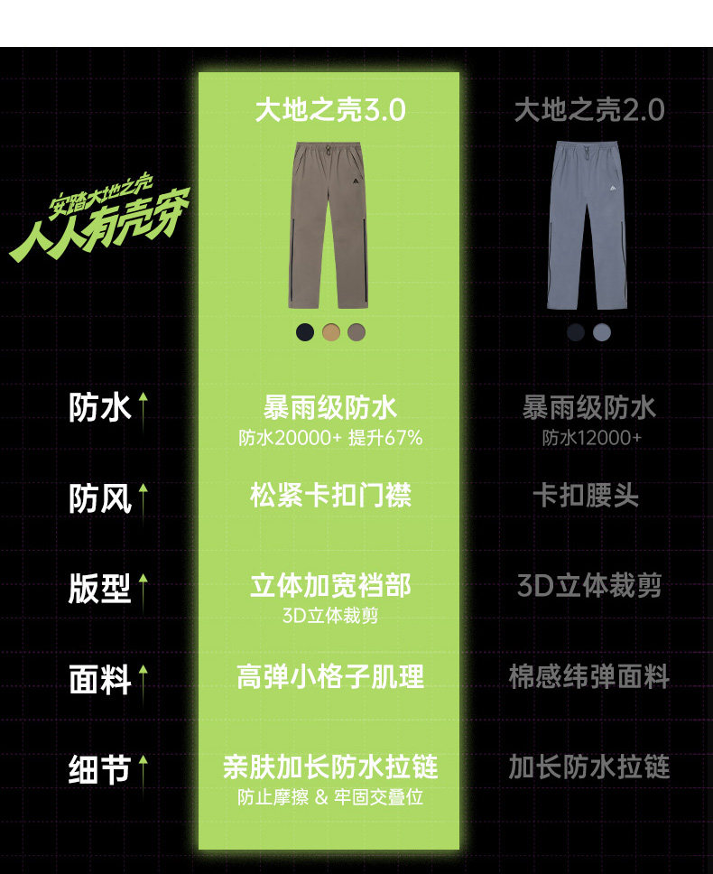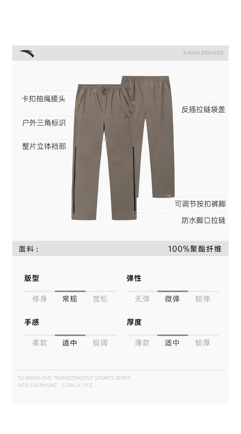 Anta Hiking Pants | Earth Shell 3.0 Men's Hiking Pants Rainproof Side Zipper Trekking and Mountaineering Long Pants