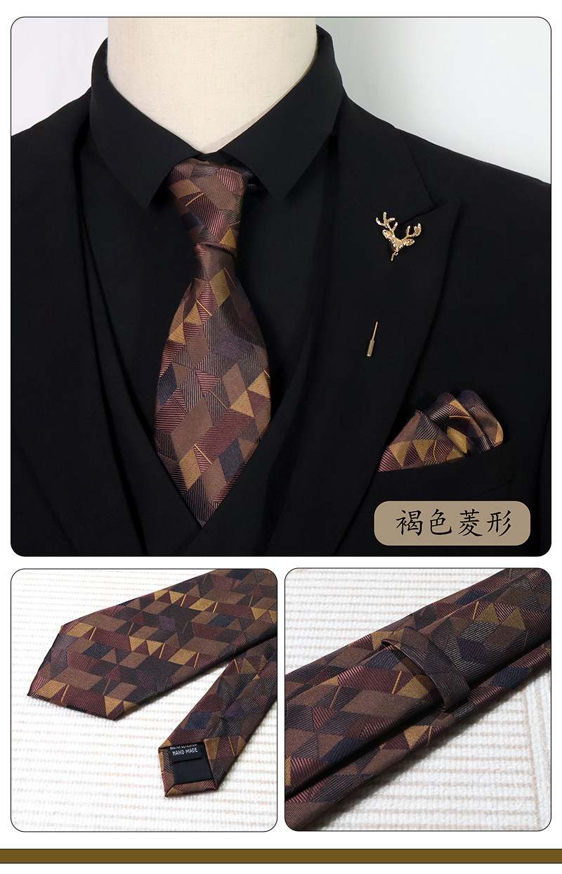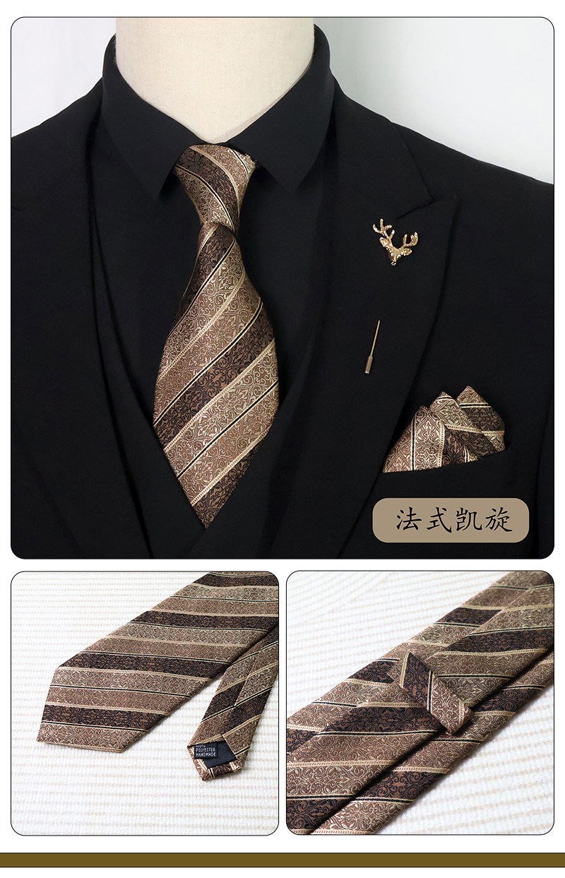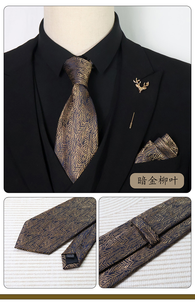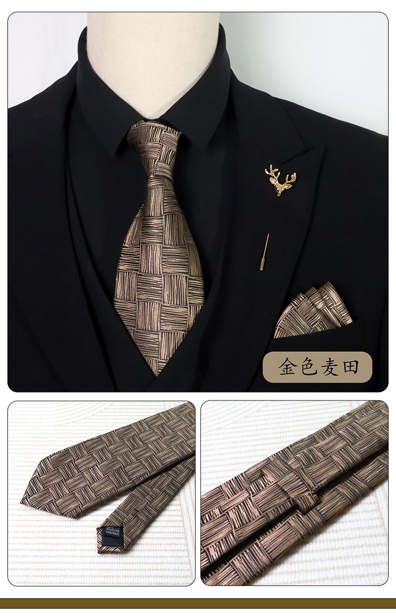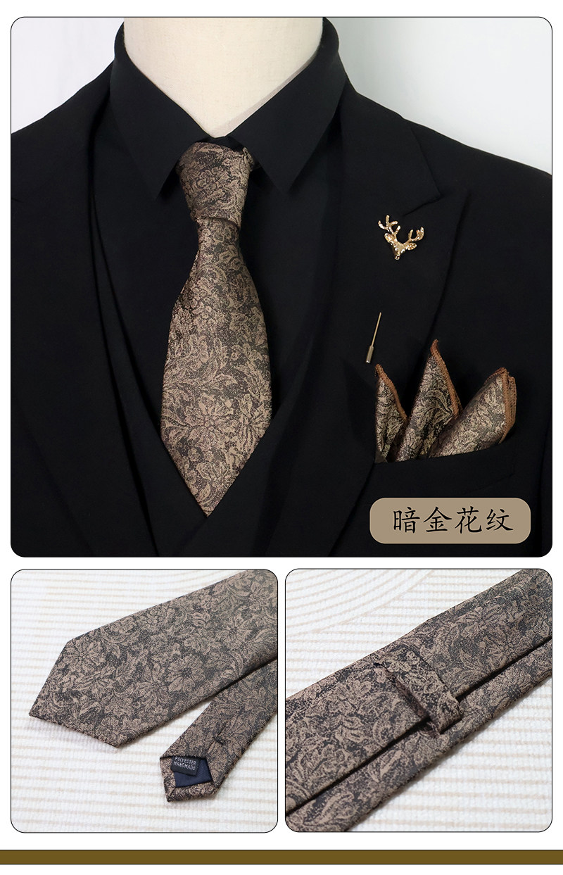 Dark Gold Pattern Men's Tie, Hand-Tied, Business Retro, Zipper 8cm, Knot-Free, High-End Feel, Groom's Wedding Suit