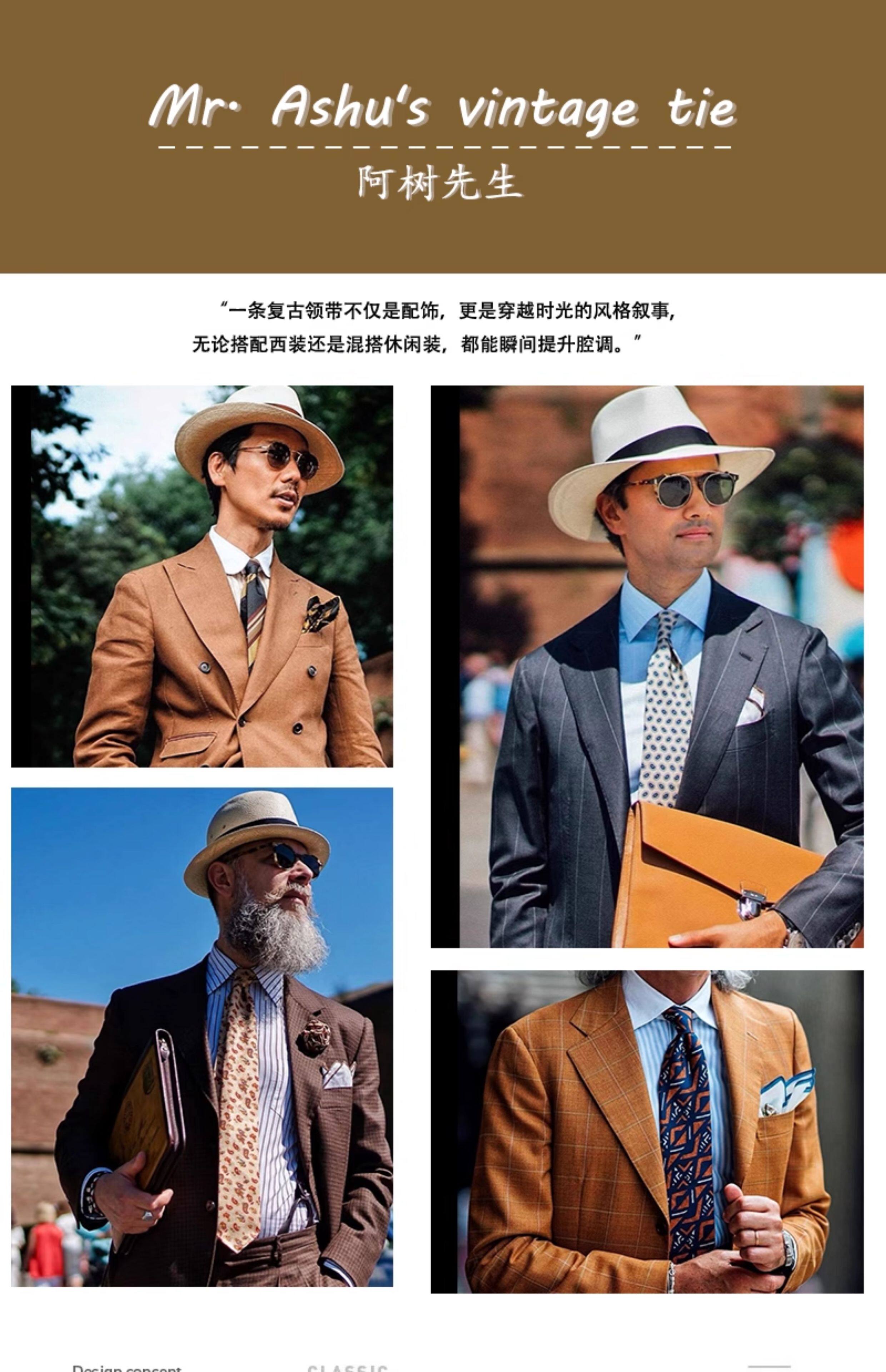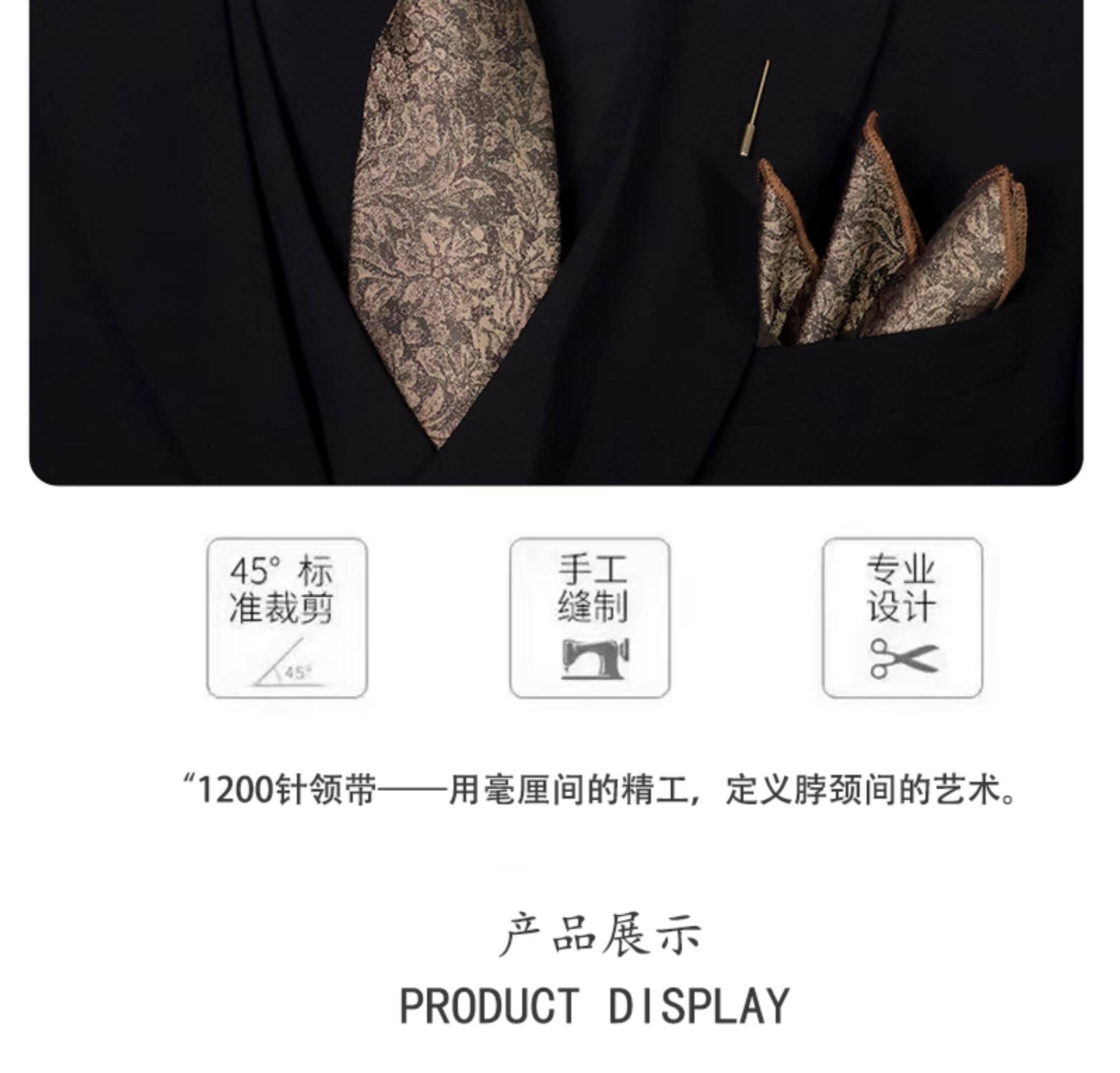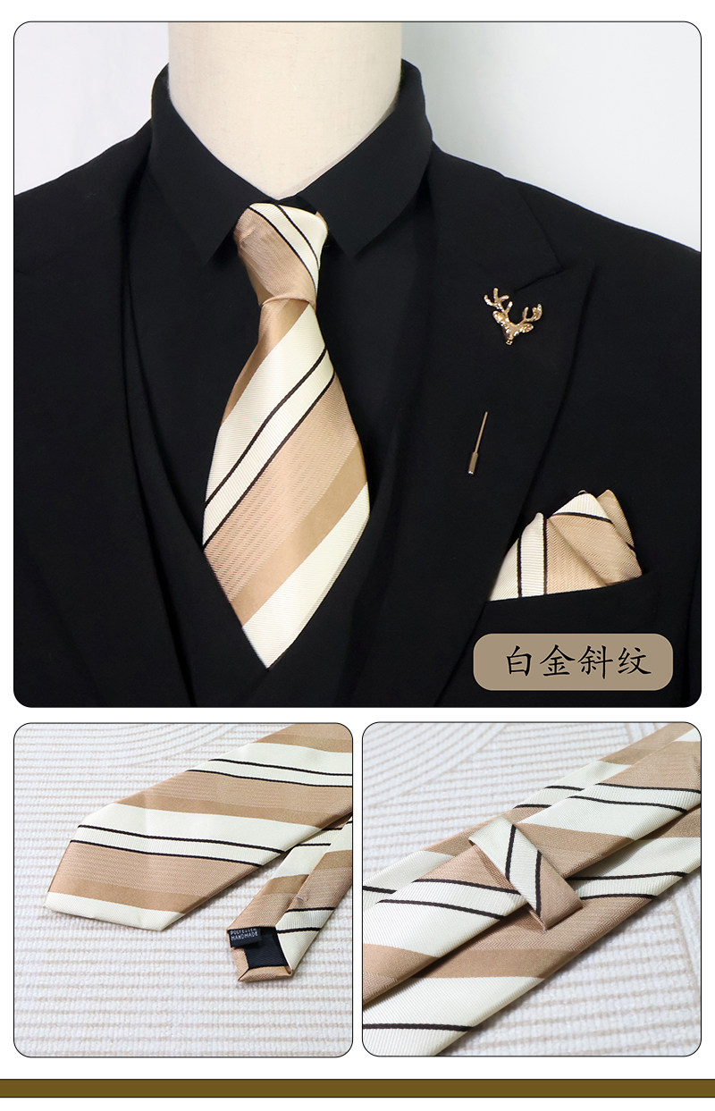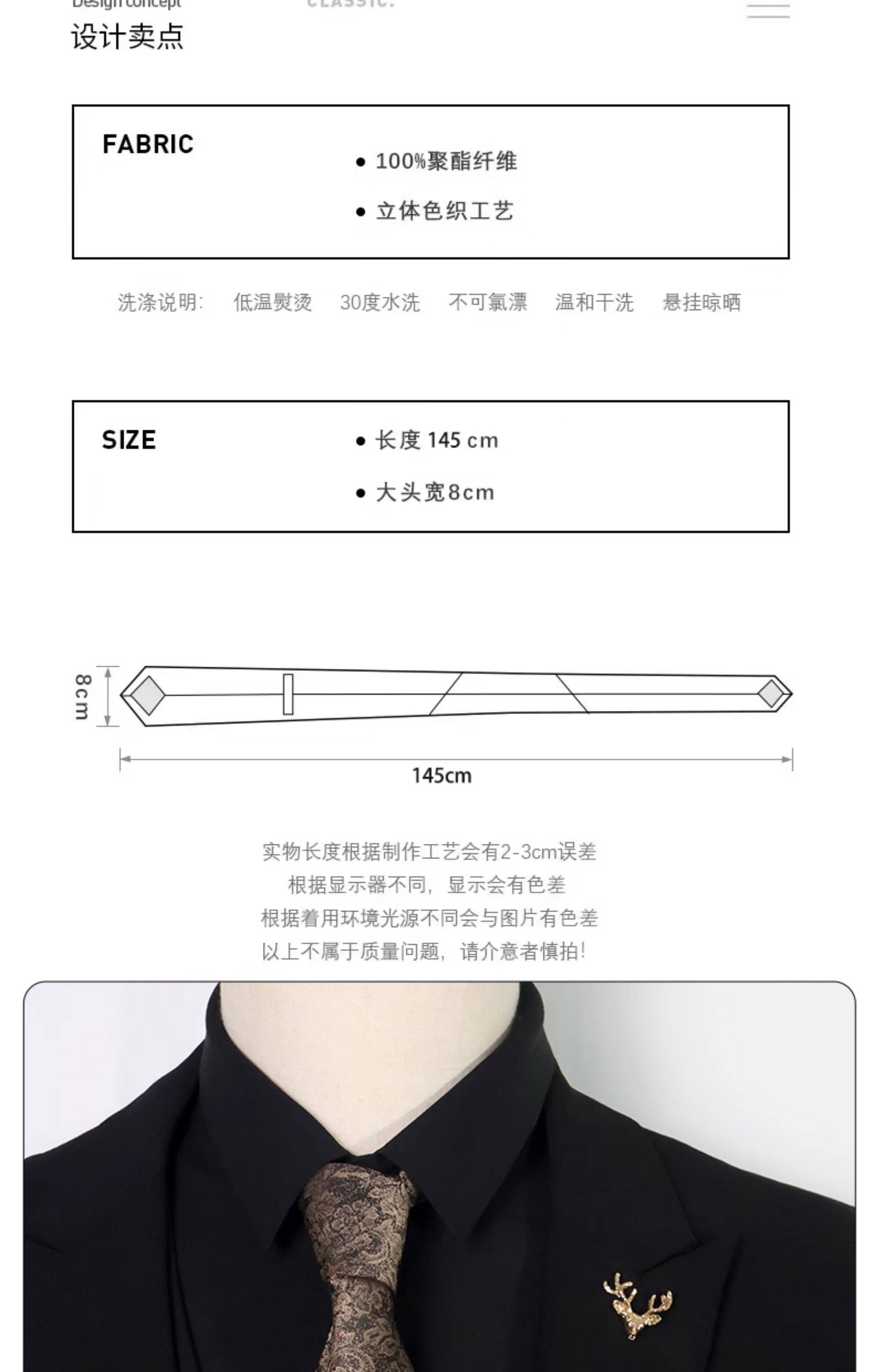 Dark Gold Pattern Men's Tie, Hand-Tied, Business Retro, Zipper 8cm, Knot-Free, High-End Feel, Groom's Wedding Suit