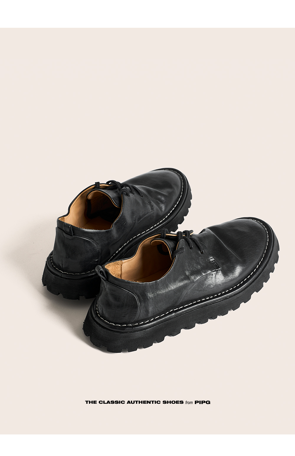 Pipg Retro Washed Horse Leather Casual Leather Shoes for Men, Breathable Summer Thick-Soled Height-Increasing Black Round-Toe Men's Shoes