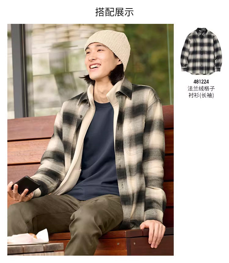 Uniqlo Men's and Women's Flannel Plaid Shirt Long-Sleeved Shirt Thin Jacket 481224 480767