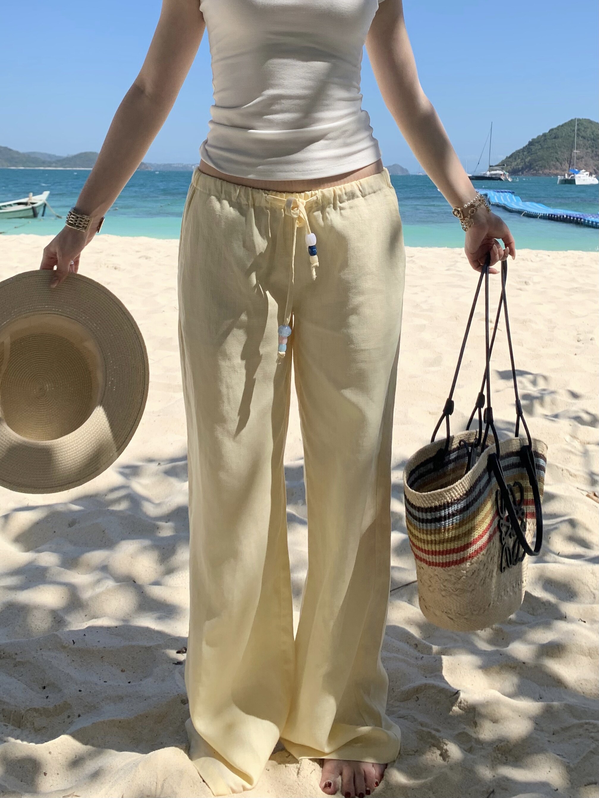 Popchee|Gemstone Linen Pants|Three Colors! a Must-Have Recommendation! Accompany You through a Bright and Comfortable Summer
