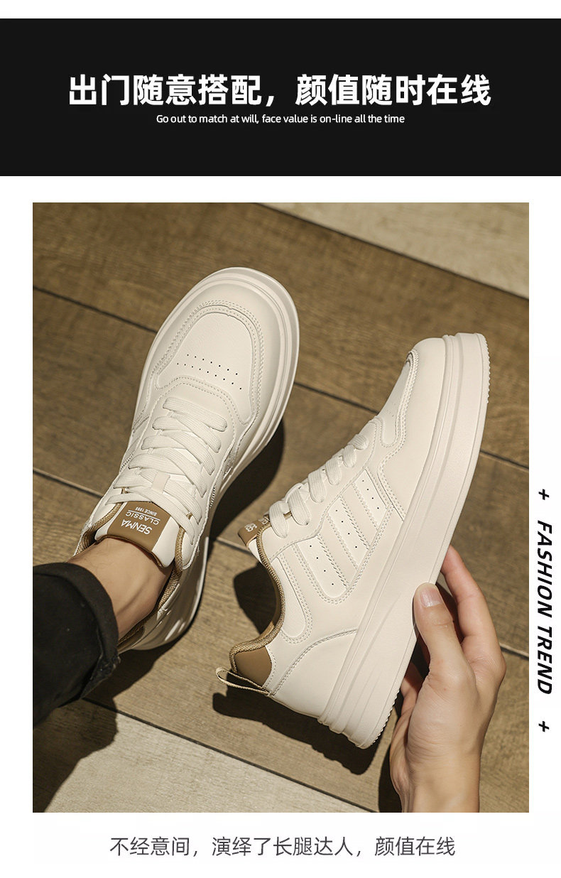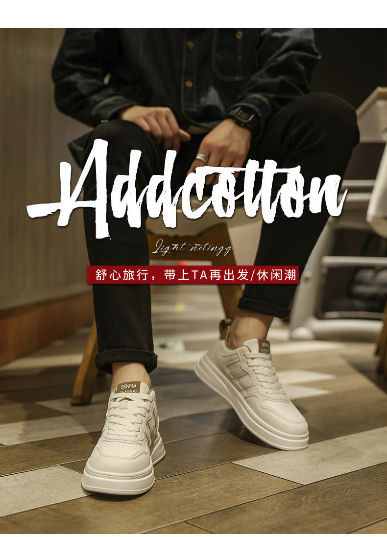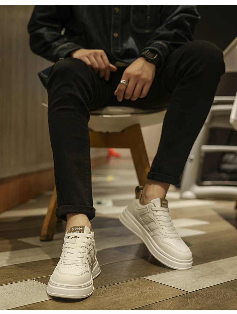 Semir Men's Shoes Winter New Style Fleece-Lined Cotton Shoes Sports Casual Sneakers Men's Genuine Leather Soft Sole Height-Increasing White Trendy Shoes