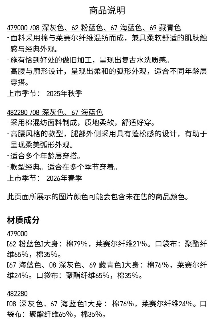 Uniqlo Women's and Men's Loose Fit Jeans/Sickle Pants 479000 482280