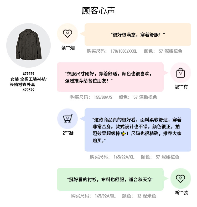 Uniqlo Women's Cotton Work Shirt/Long-Sleeved Shirt Jacket 25 Autumn and Winter New Style 479579