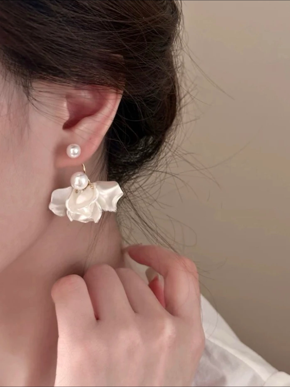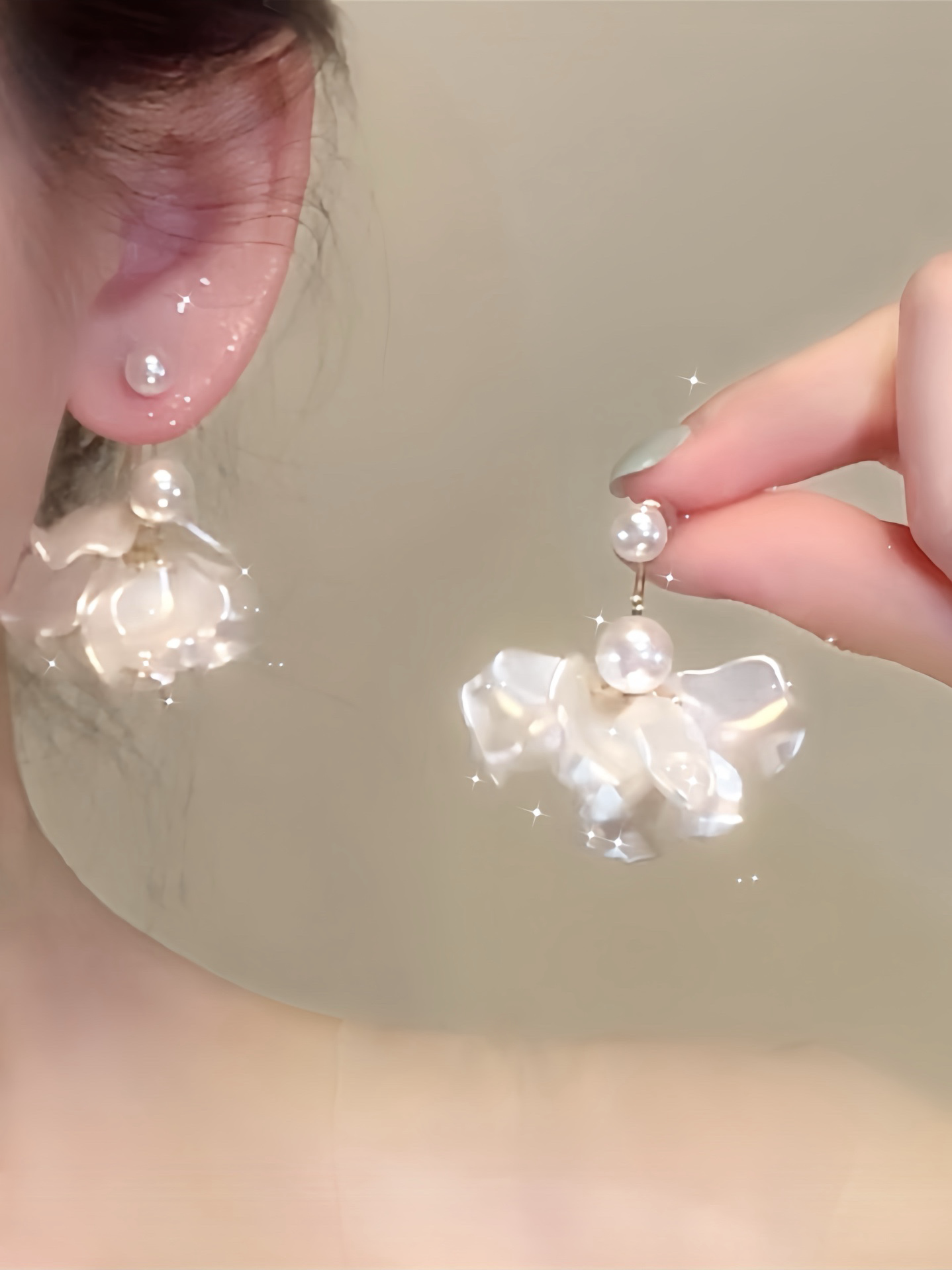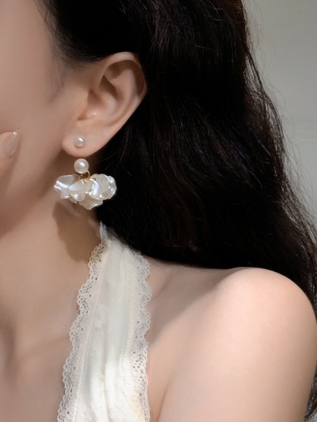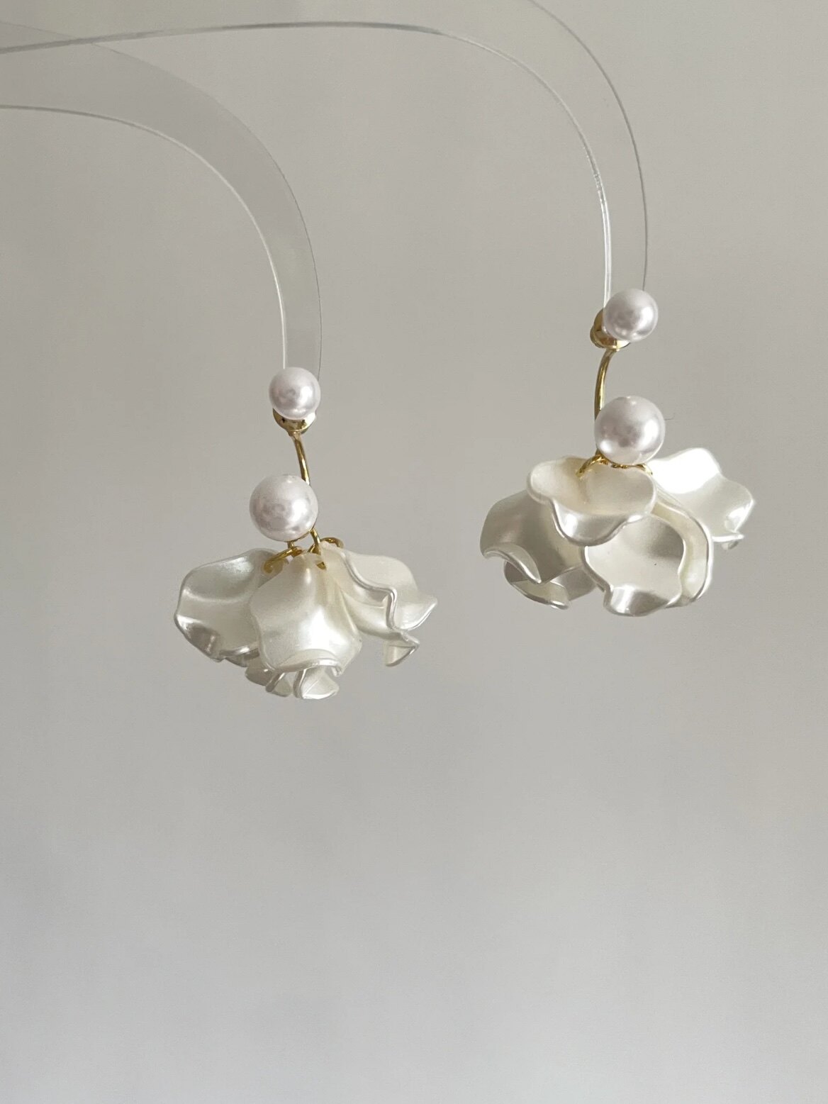 Beautiful Pearl Flower Tassel 925 Silver Earrings for Women, Elegant Non-Pierced Mosquito Coil Ear Clips