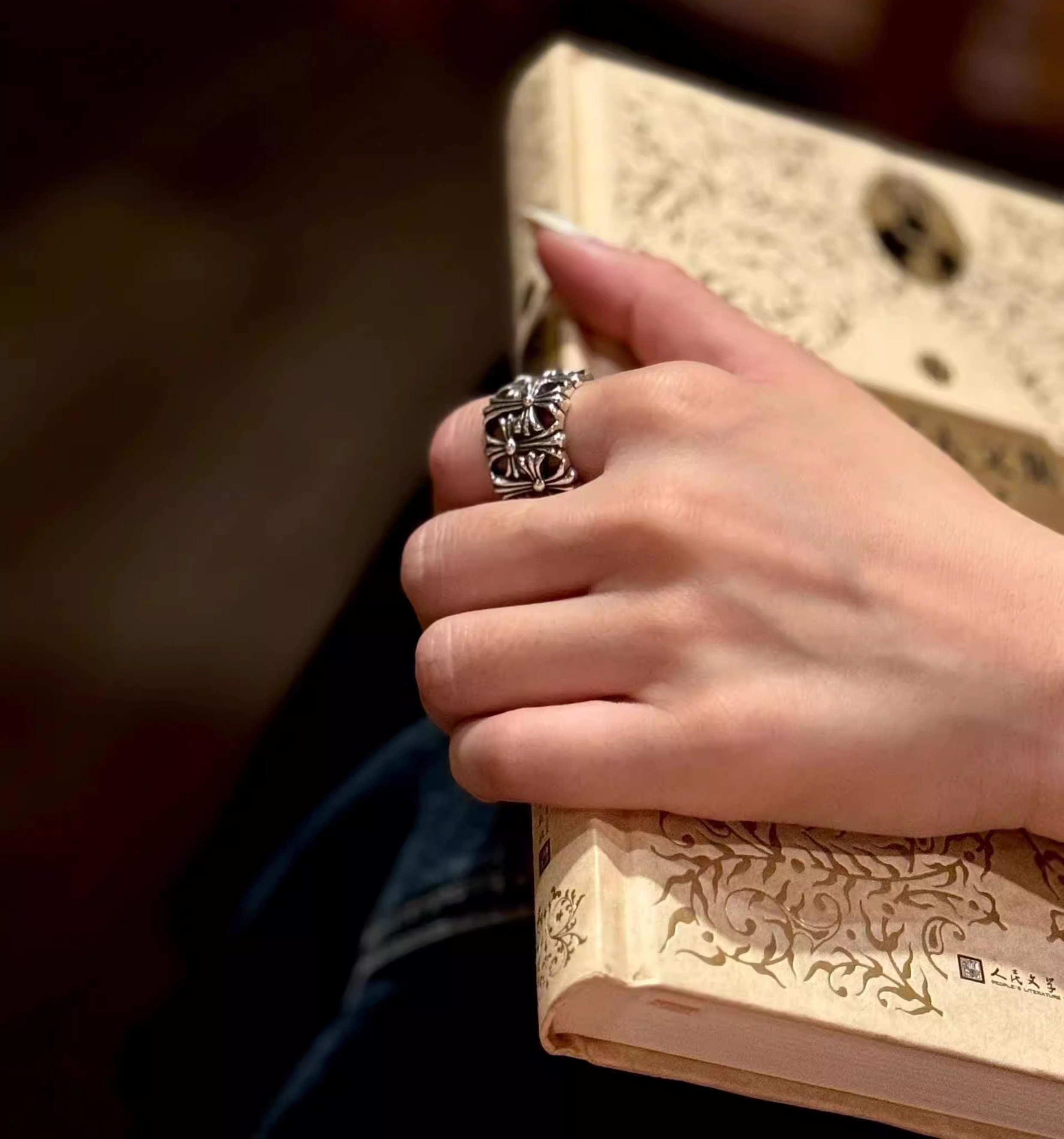Vintage Cross Ring for Men and Women, Electroplated Sterling Silver, Niche Design, Unique American Style, High-End Feel, Plain Ring for Stacking