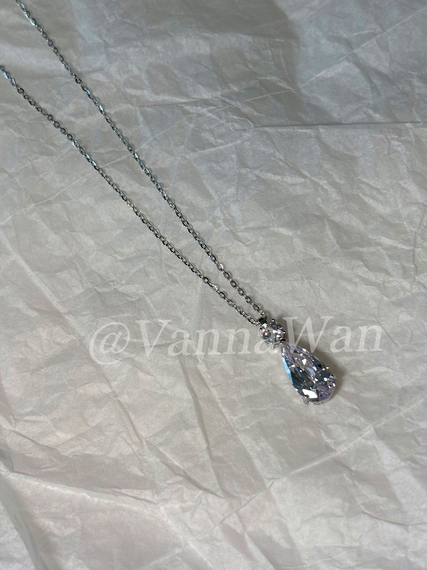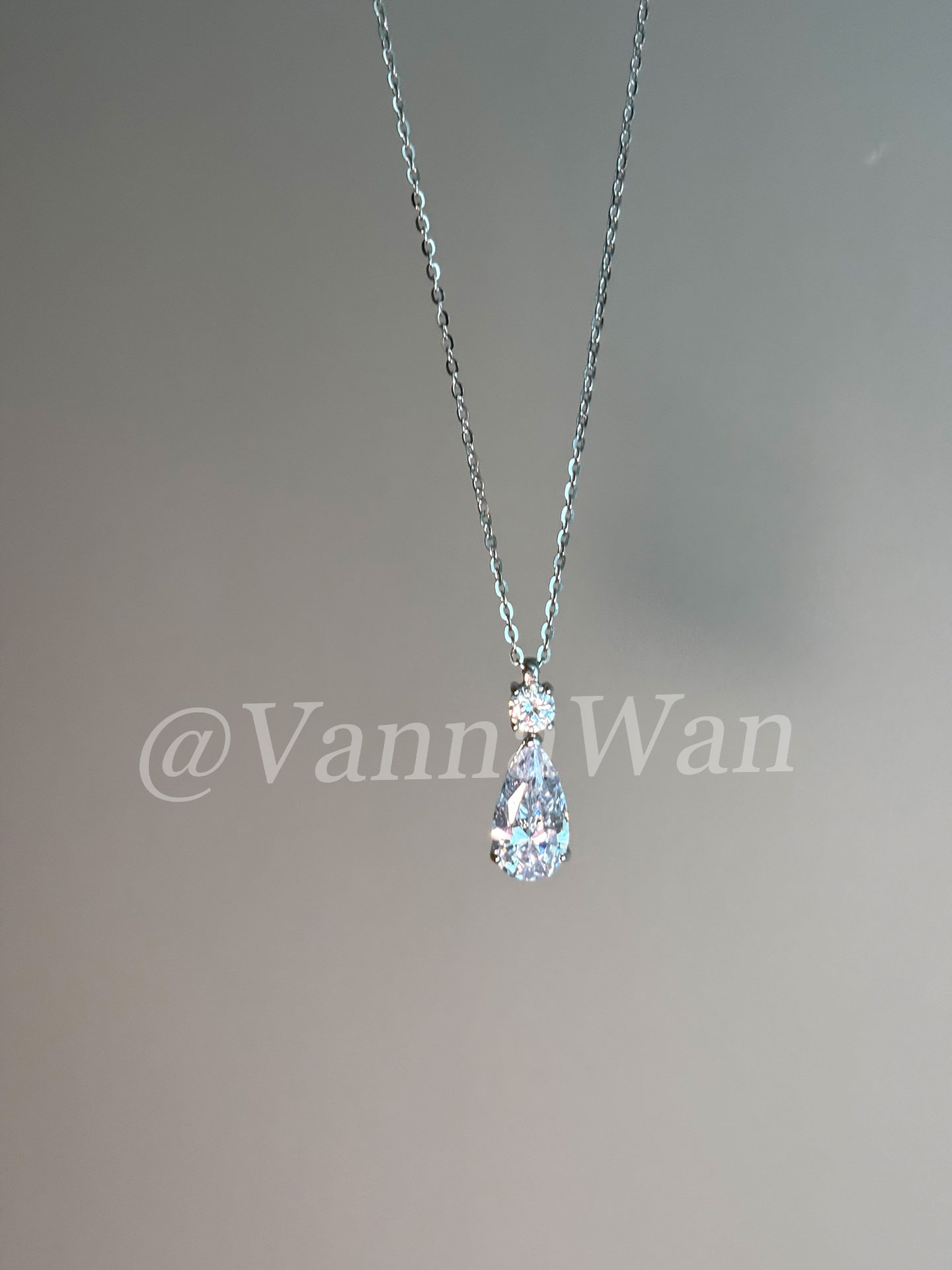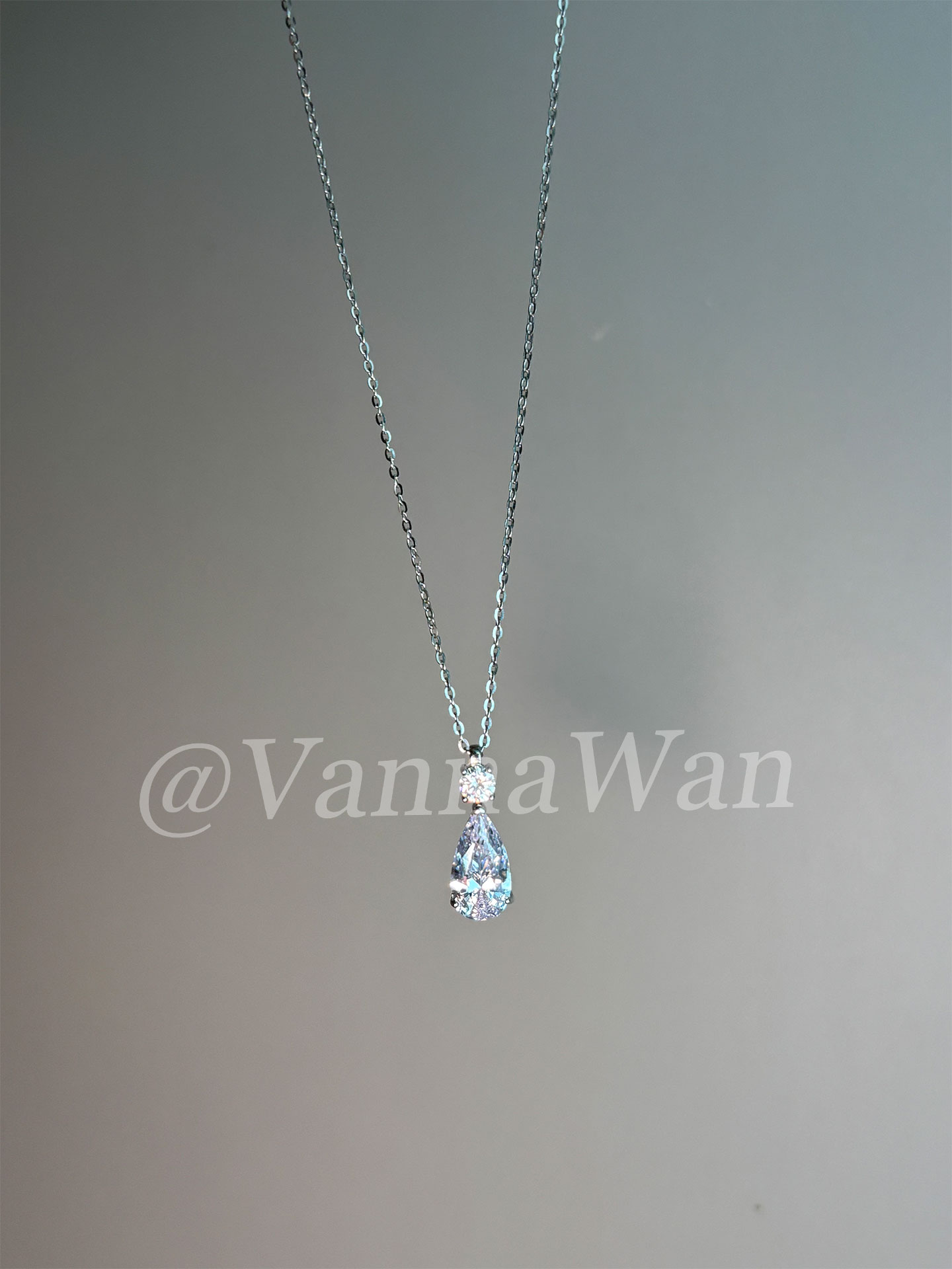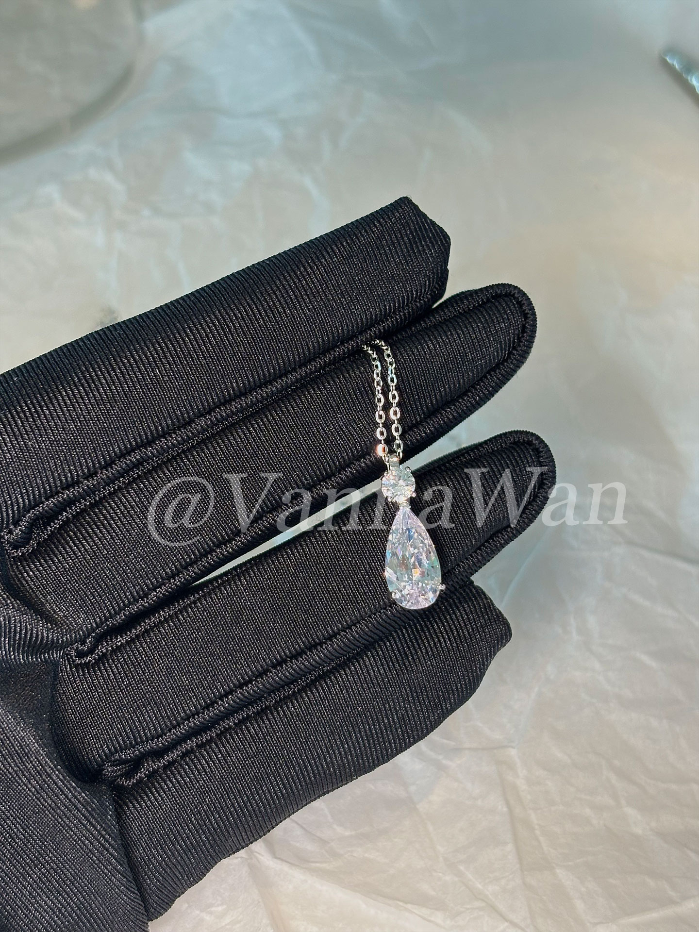 Vanwan Sterling Silver Version! Stunning Tear Drop Water Drop High-Carbon Diamond Silver Necklace, Sterling Silver Sparkling Diamond Choker, Luxurious