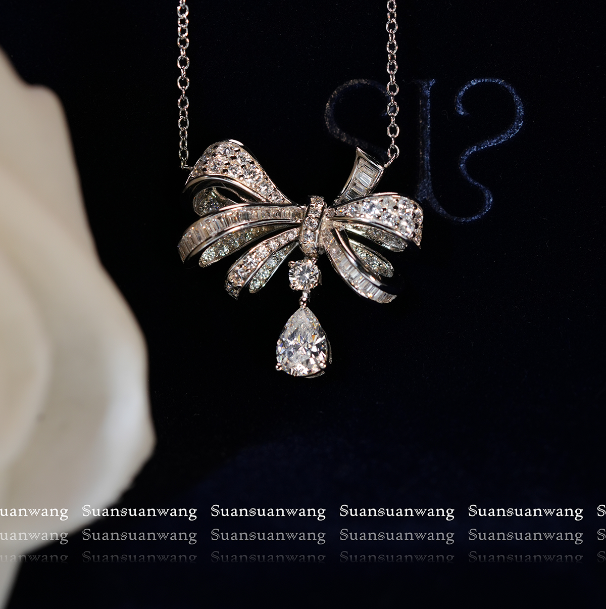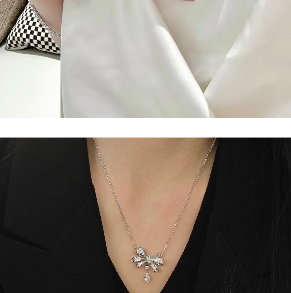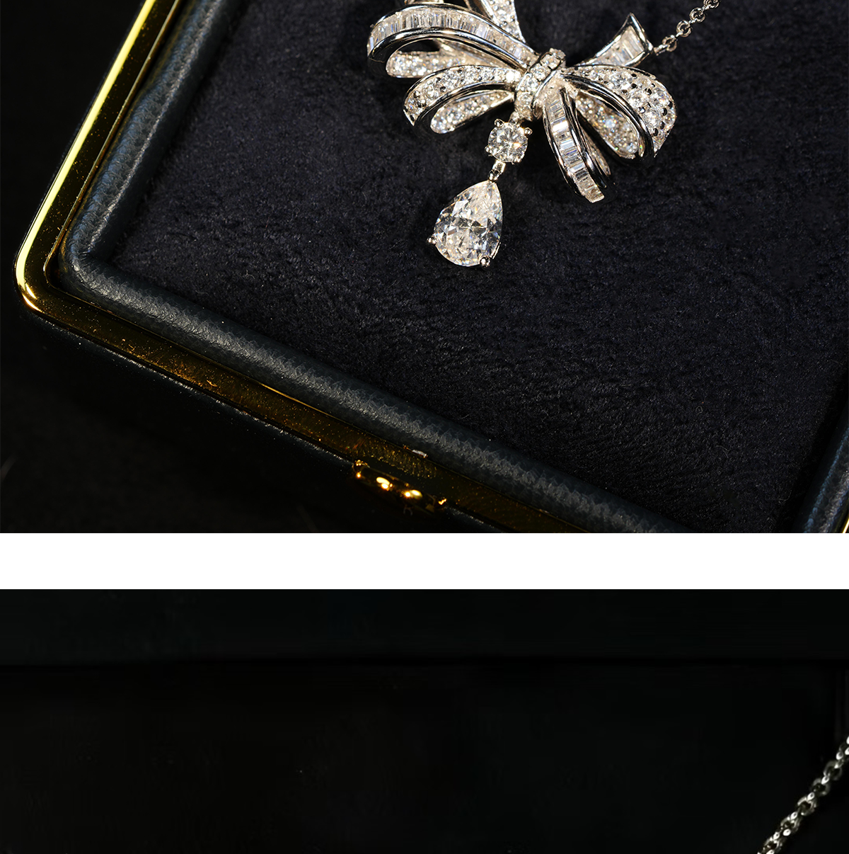 Heavy Craft Jewelry · Bowknot Water Drop Necklace Sweet and Light Luxury Bow Clavicle Chain for Women Light Luxury Full of Diamonds